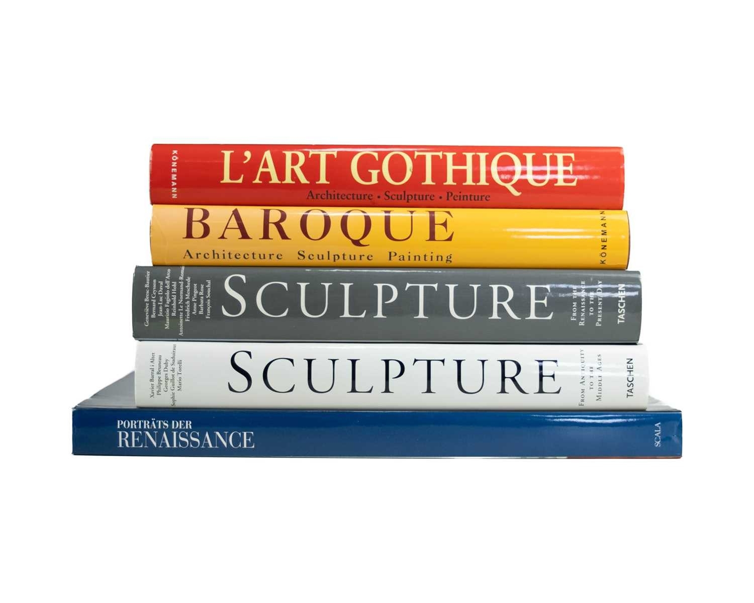 (Art and Architecture) Five works Includes two volumes of 'Sculpture', Benedikt Taschen, Germany 1999; 'L'art Gothique', Konemann, Germany 1999, French translation, and Rolf Toman, 'Baroque', Konemann, Germany 1998; 'Portrats der Renaissance', SCALA, Florence 2012; all thoroughly illustrated and vg. (5)