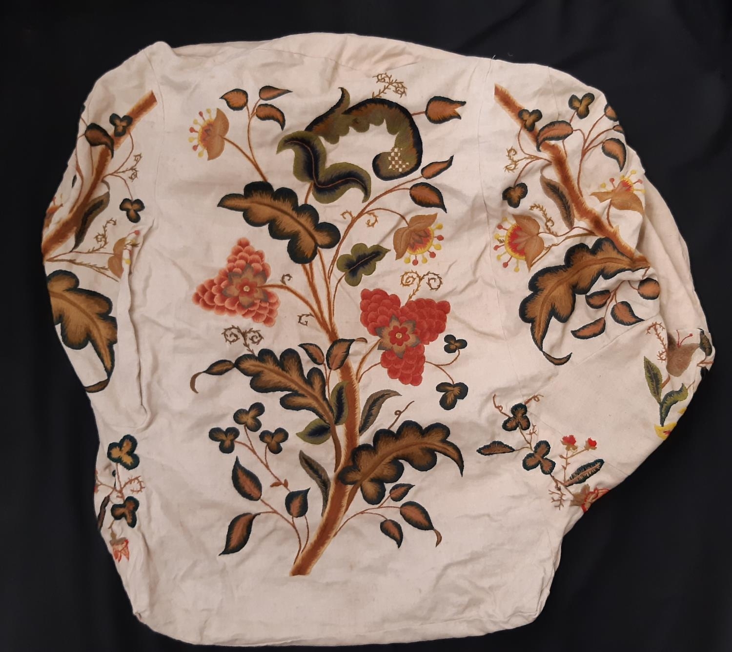 Loose cover for armchair or fabric salvage (bespoke made for tall wing backed chair) with hand embroidered floral design on ecru linen ground