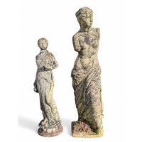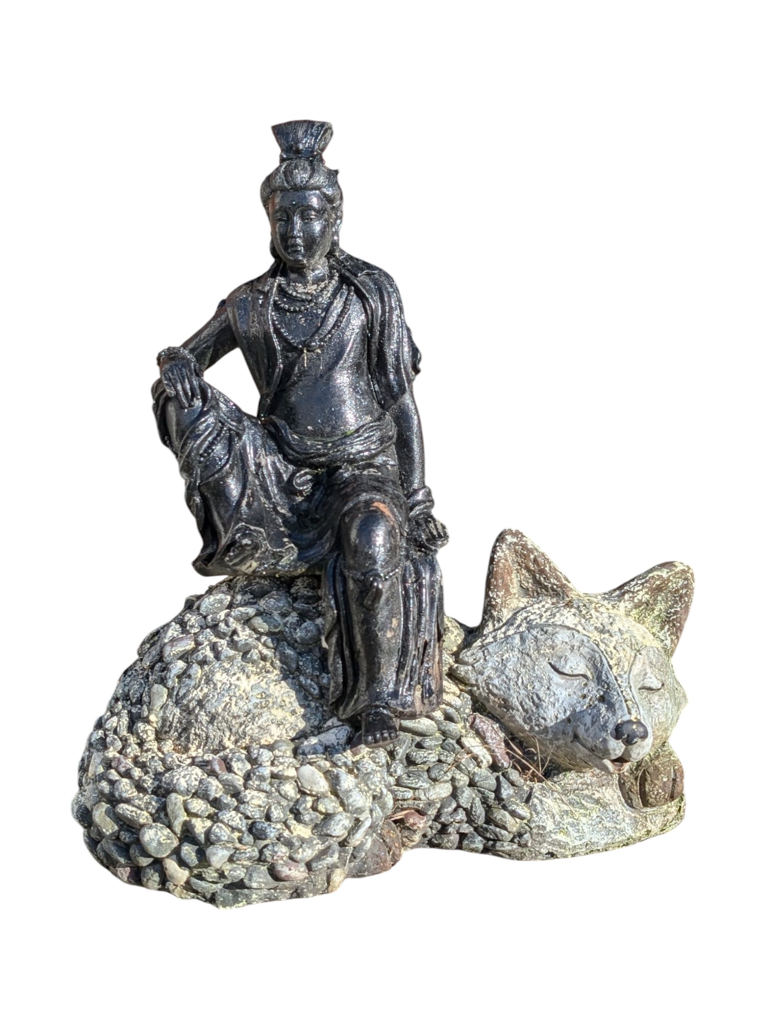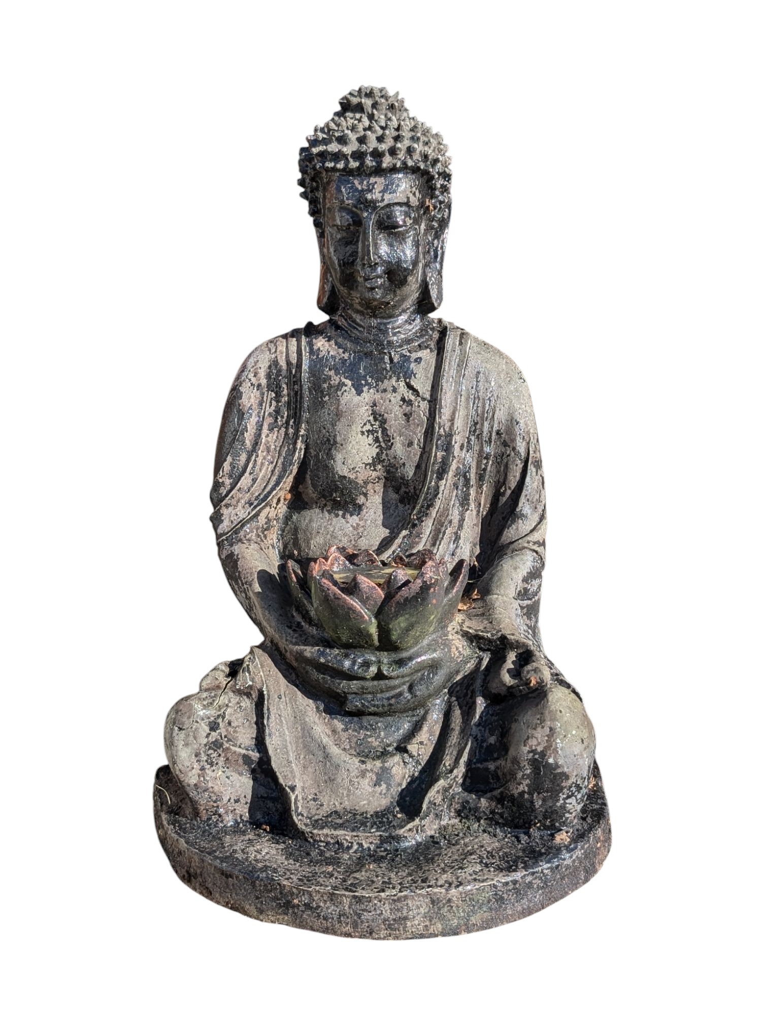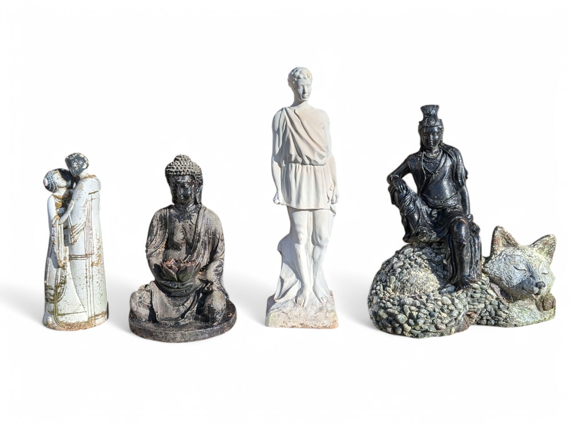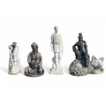 Group (5) Resin Garden Ornaments, Buddha, Cat Etc Tallest 23"