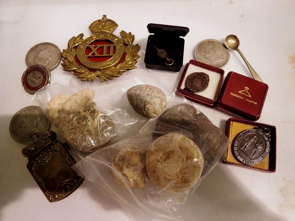 Mixed collectables including a Suffolk Regiment cap badge, novelty vesta case etc. UK P&P Group 1 (£16+VAT for the first lot and £2+VAT for subsequent lots