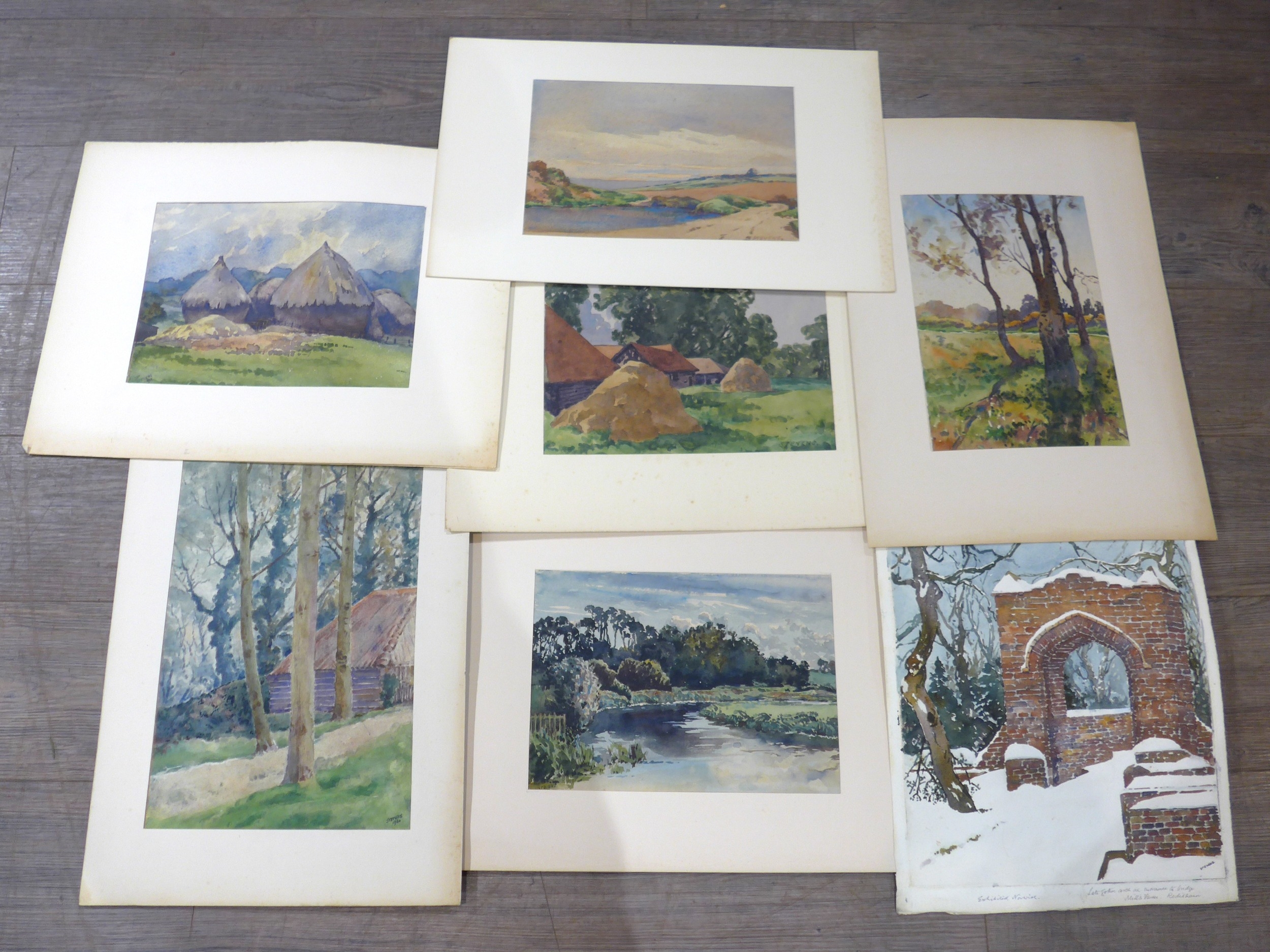 HENRY POTTER STEVENS (1875-1965) A collection of approx 28 unframed watercolours, assorted landscape scenes including The Waveney near Homersfield, tree studies etc. Signed, some with notes by the artist. Various sizes.