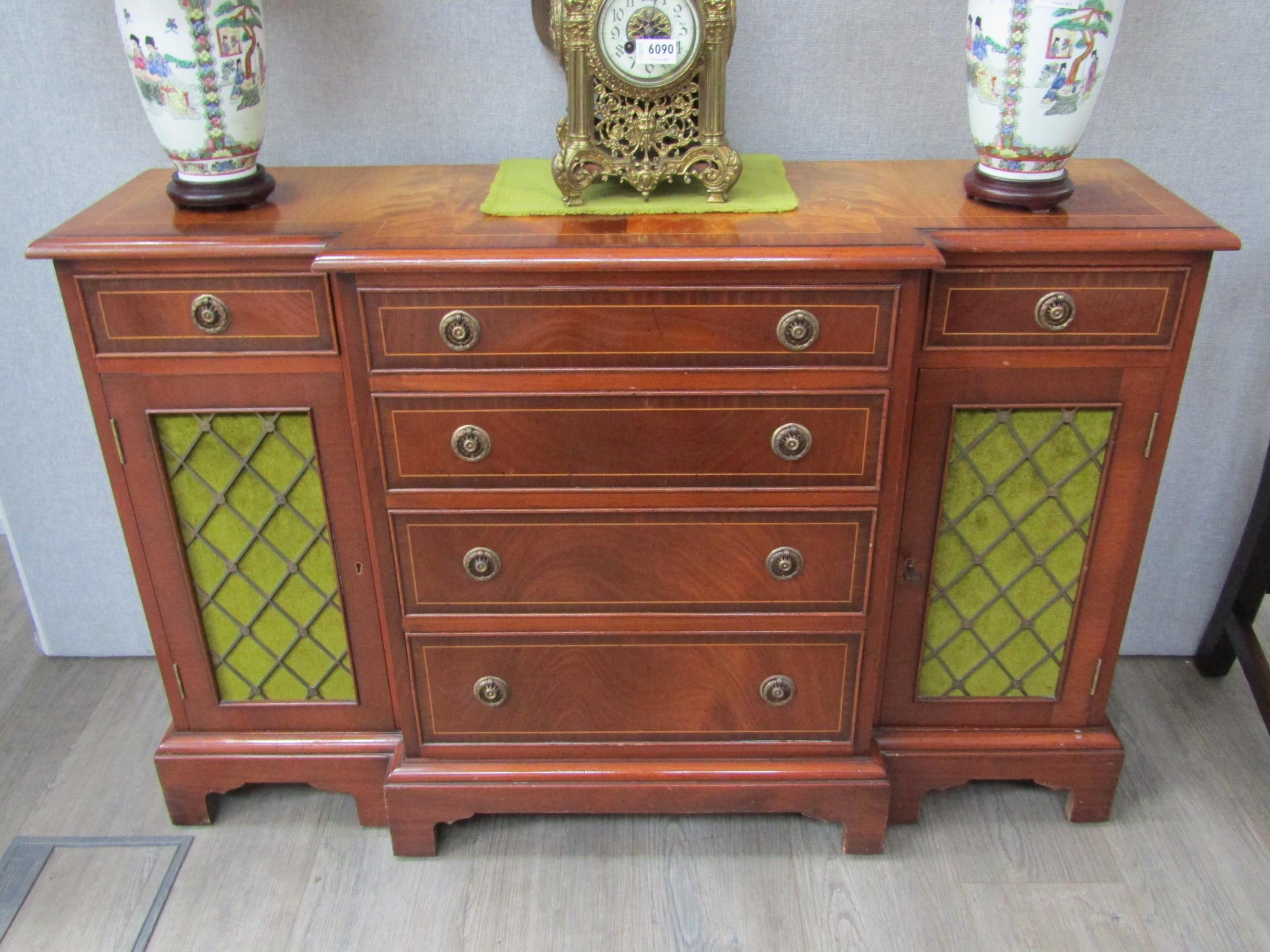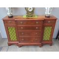 A modern Regency style diminutive breakfront sideboard with lattice panel doors, 75.5cm x 117cm x 34cm