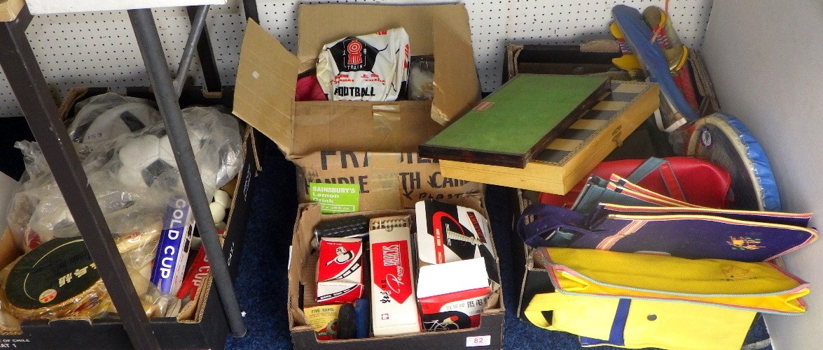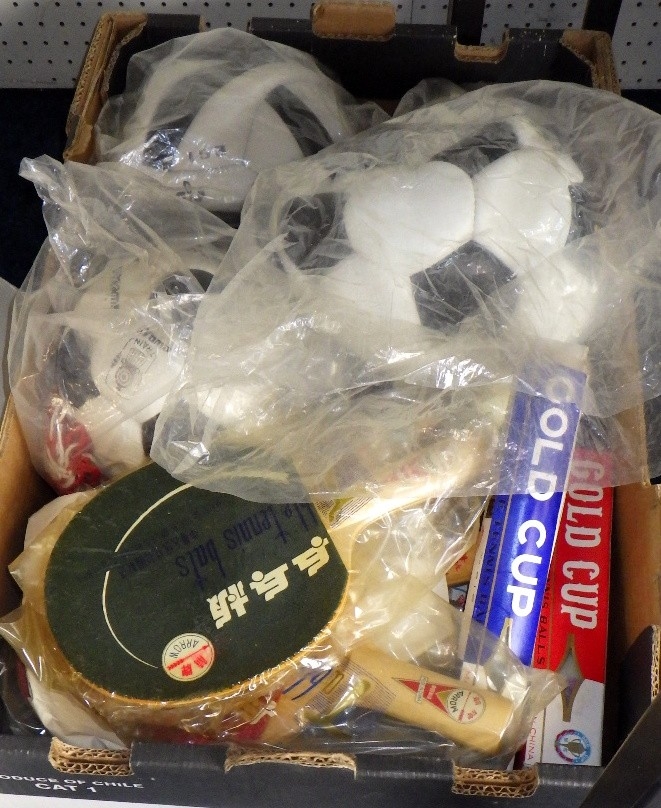 A large qty of misc to inc footballs, ping pong, cycling accessories, bags etc (qty)