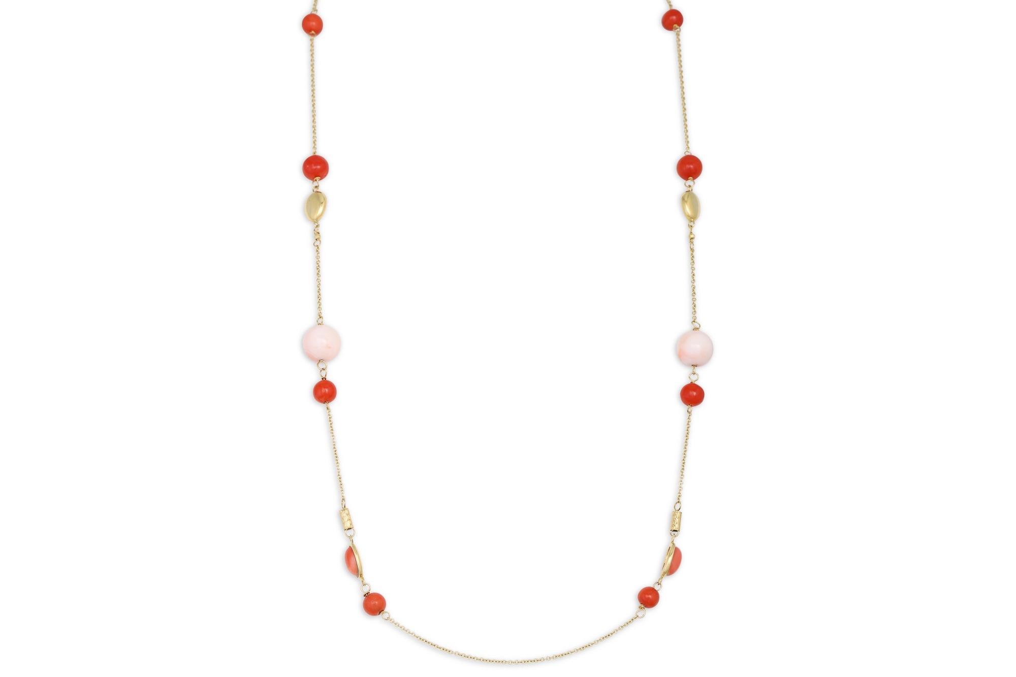 A NECKLACE SET WITH RED AND PINK MEDITERRANEAN CORALS, mounted in 18ct yellow gold, 24.6"