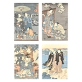 After Utagawa Kuniyoshi (1797-1861) Japanese. Study of Actors, Print, 13.75" x 9" (34.9 x 22.8cm), and three others similar (4)