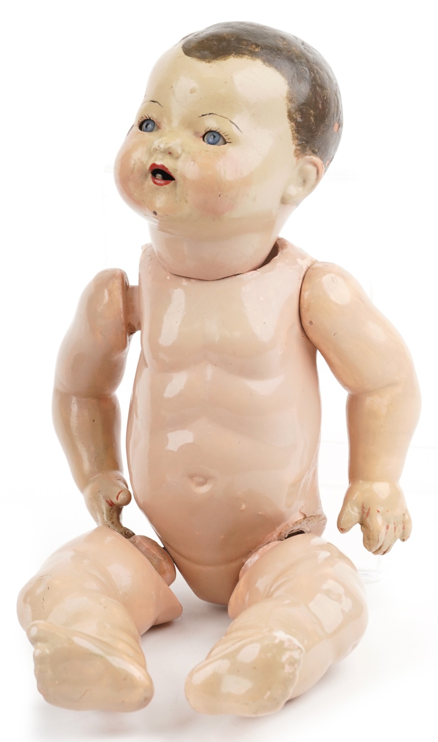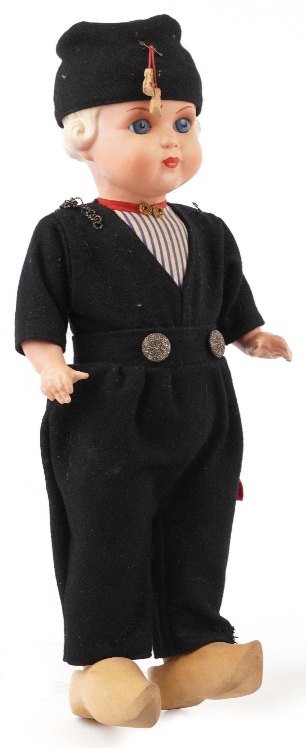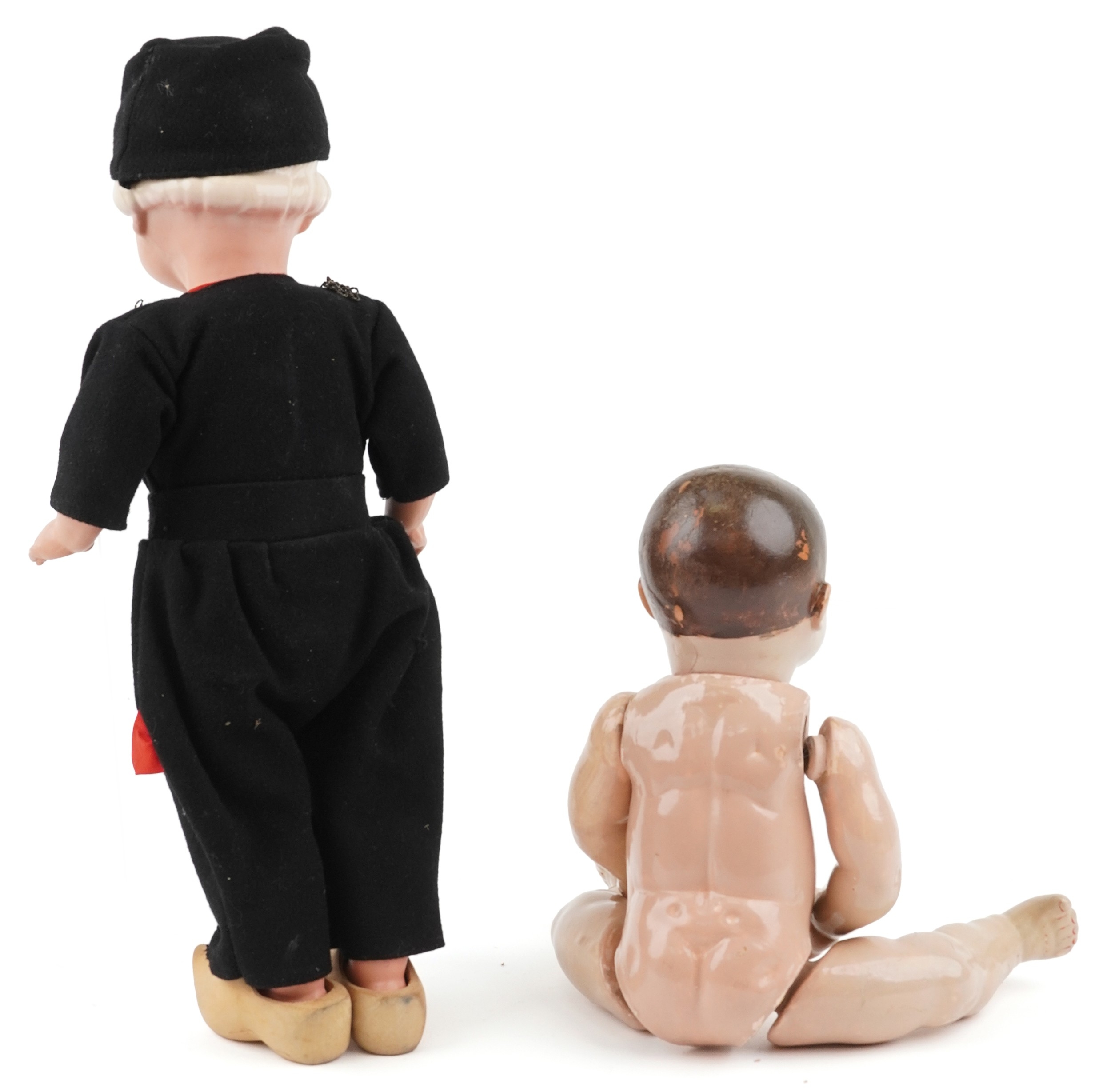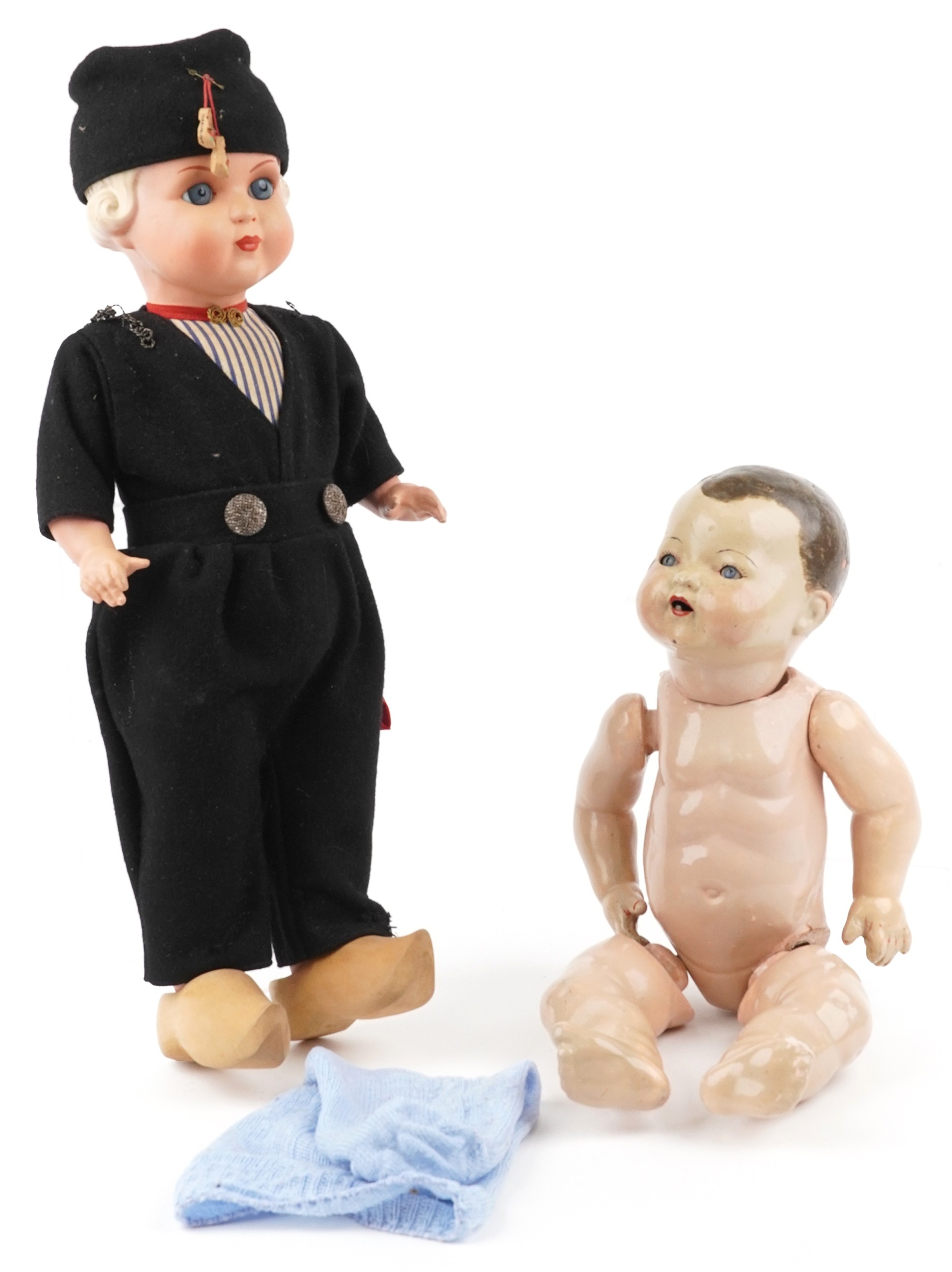 Two early 20th century dolls comprising a German composite doll and a Dutch doll with jointed limbs, the largest 52cm high.