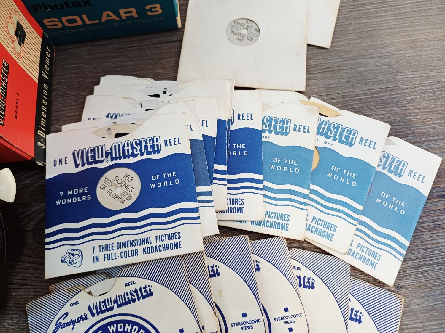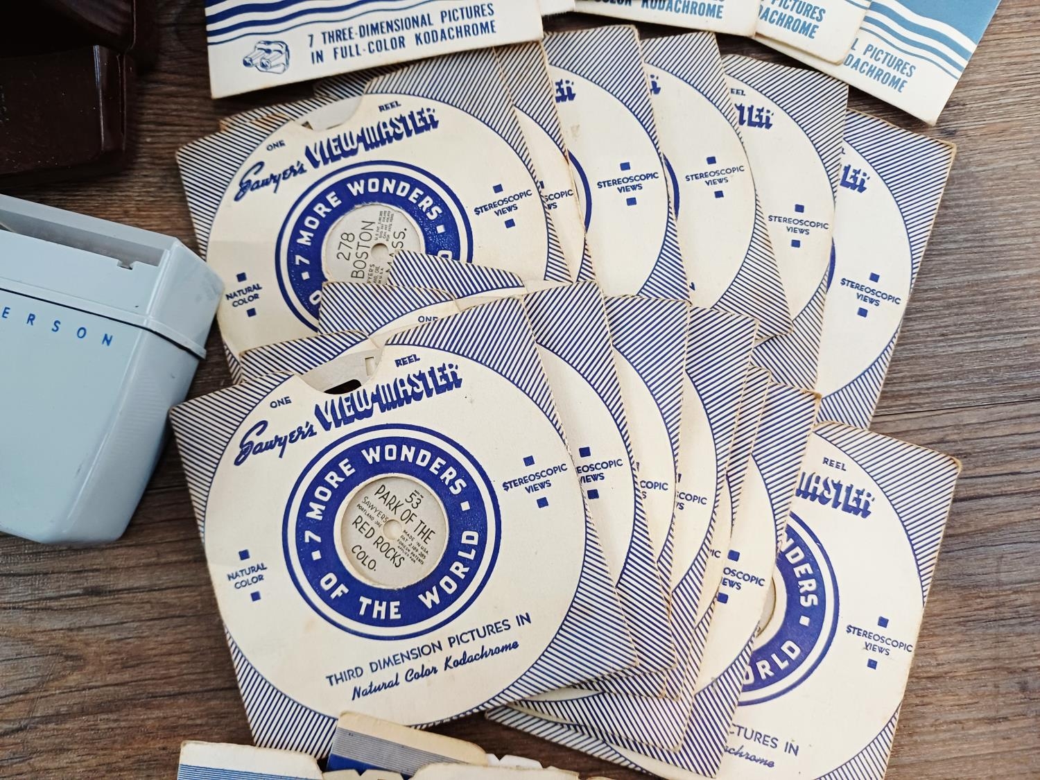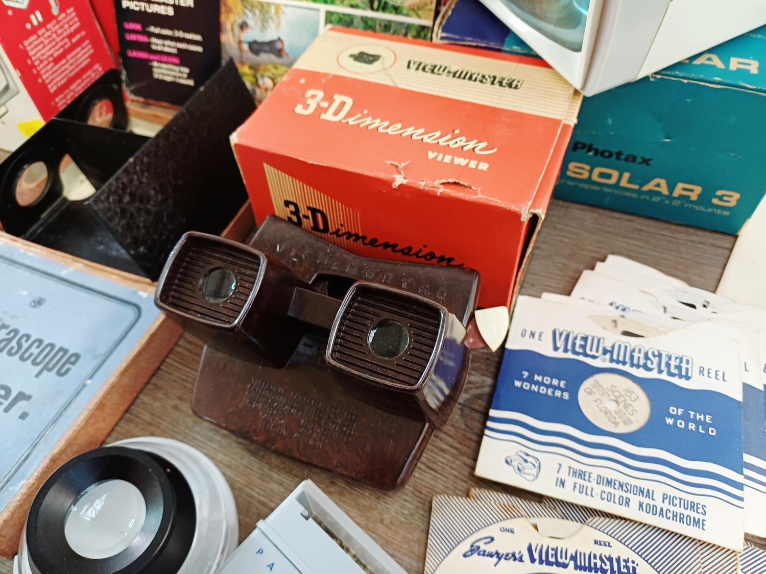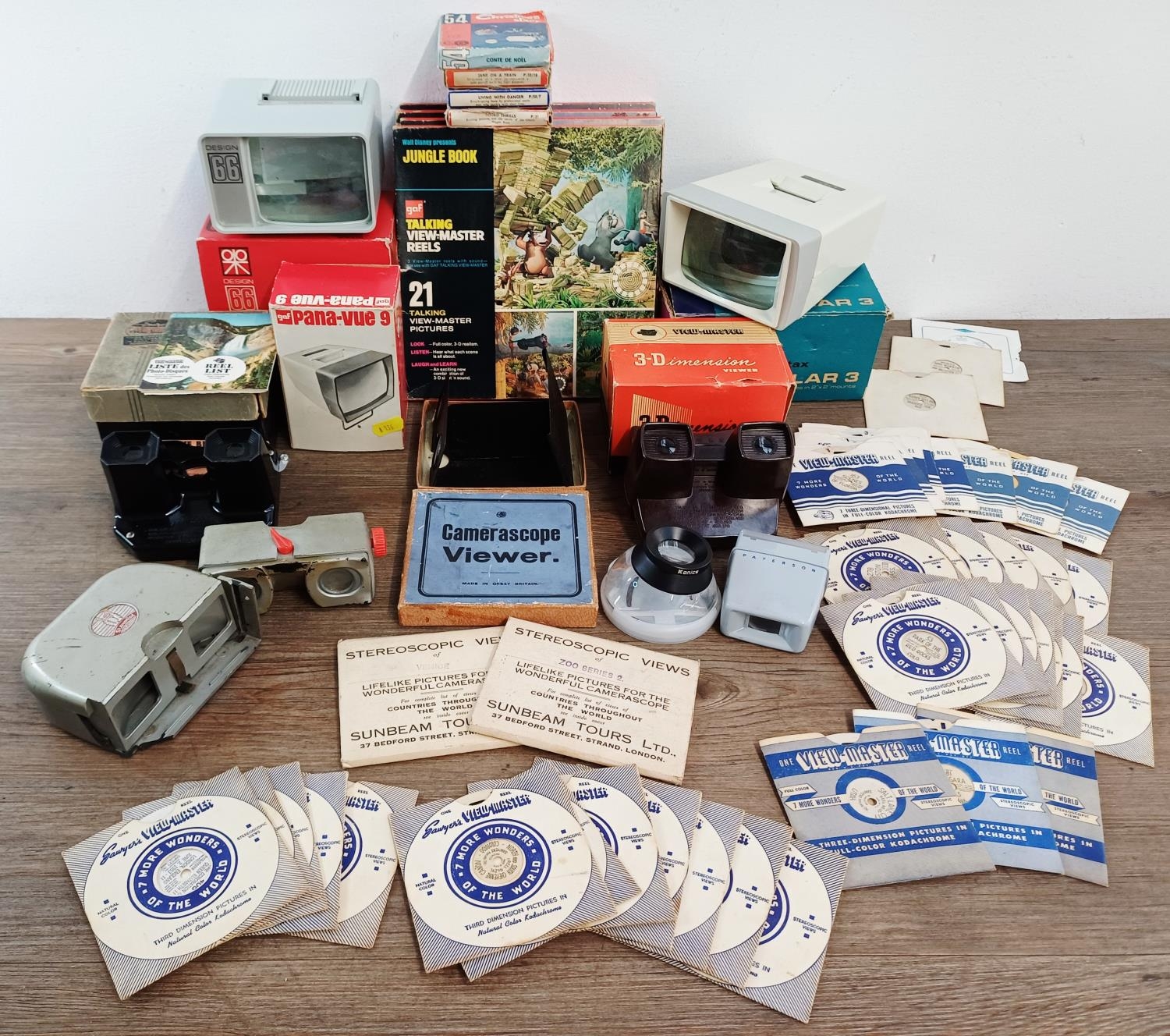 A collection of cine, slide and View-Master items to include two boxed Sawyer's View-Master 3-D viewers with a large collection of reels, boxed Camerascope viewer with two packs of stereoscopic pictures, 8mm cine films to include 'Jane on a Train', 'Living With Danger' and 'Rodeo Thrills', GAF Talking View-Master reels etc.
