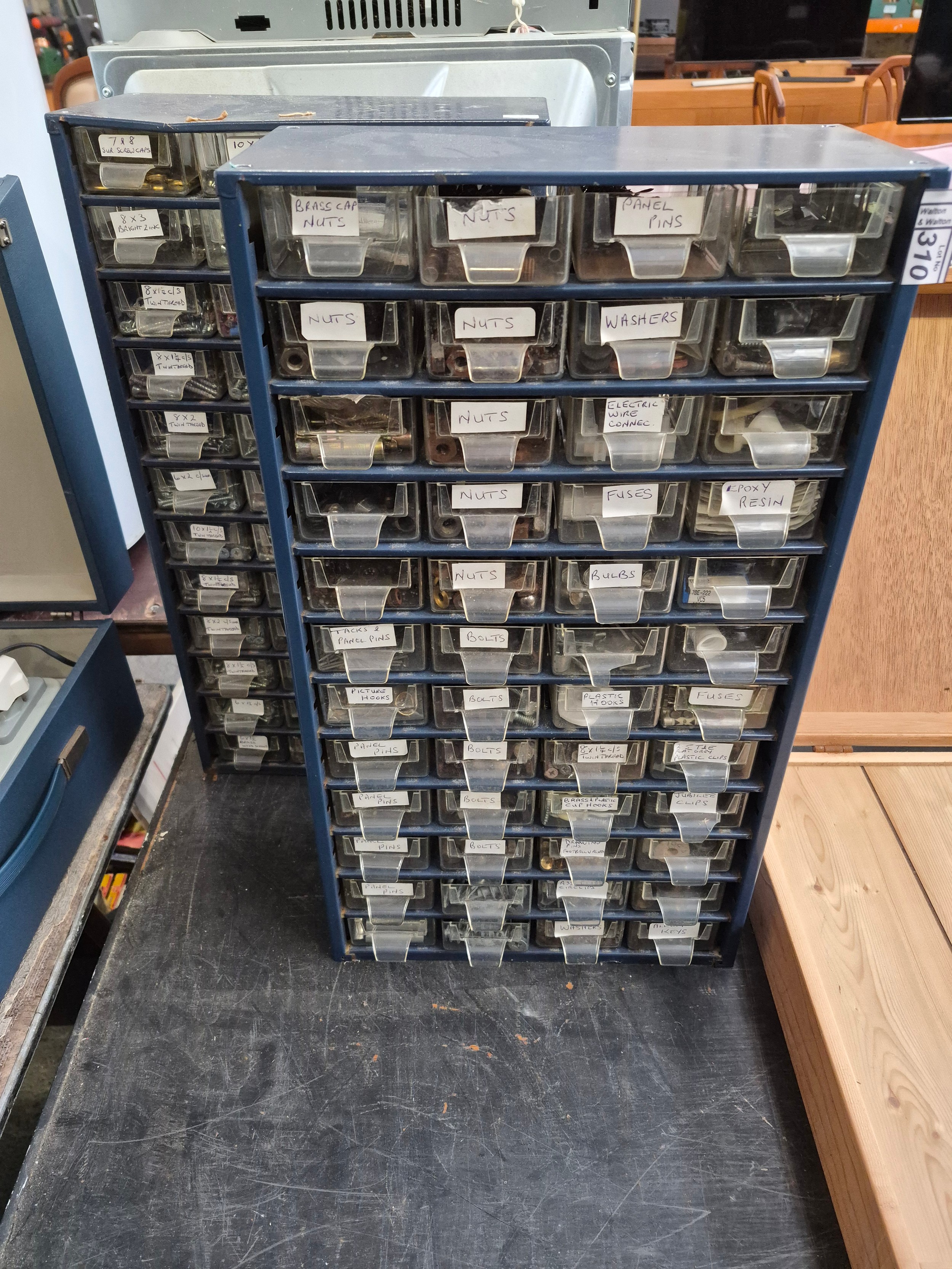 2 Sets of compartment drawers and contents