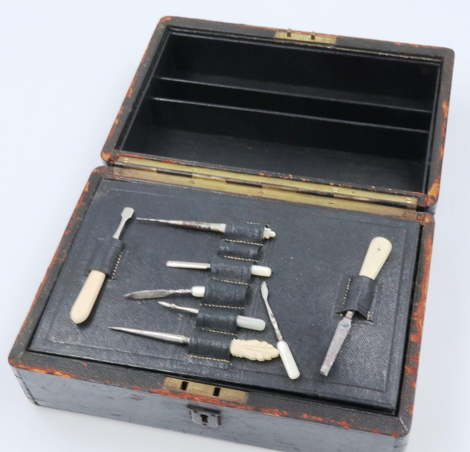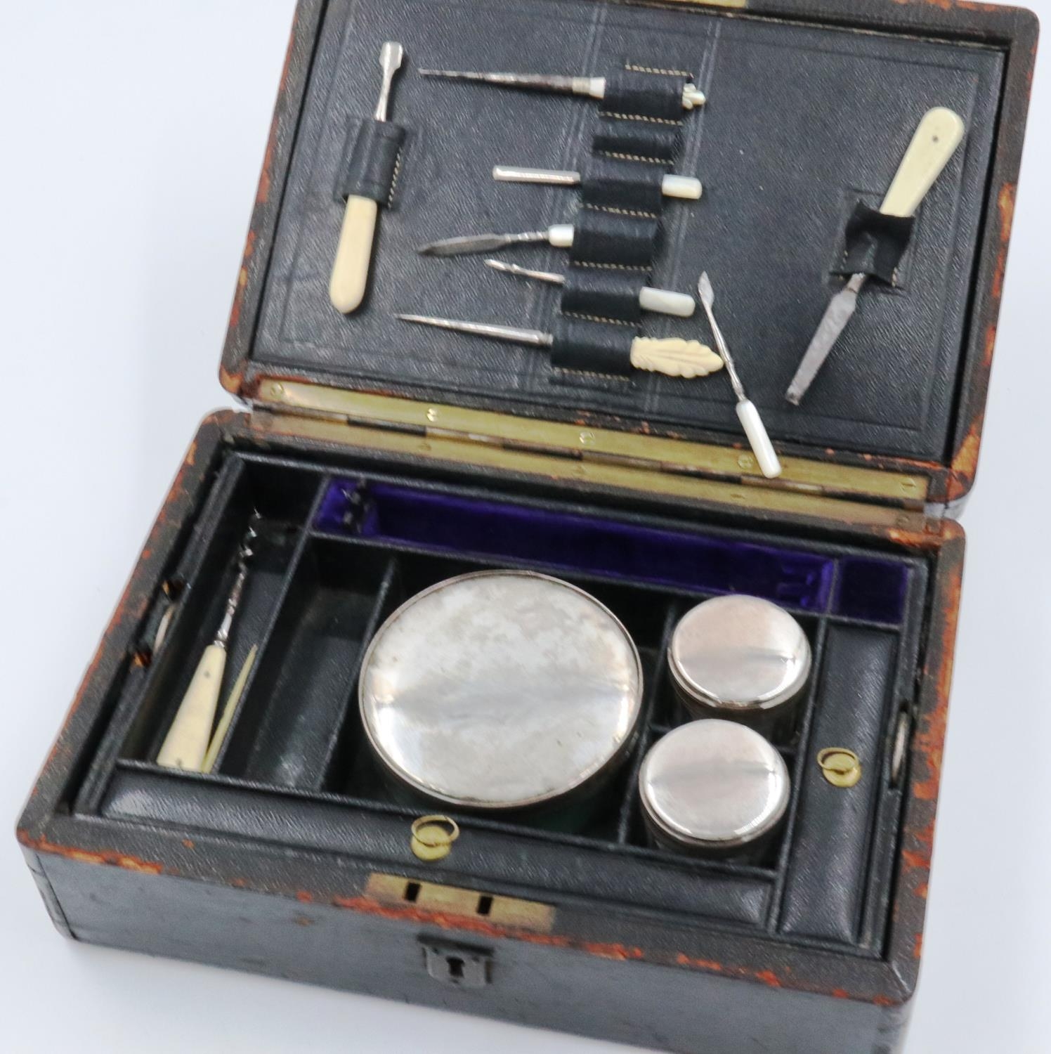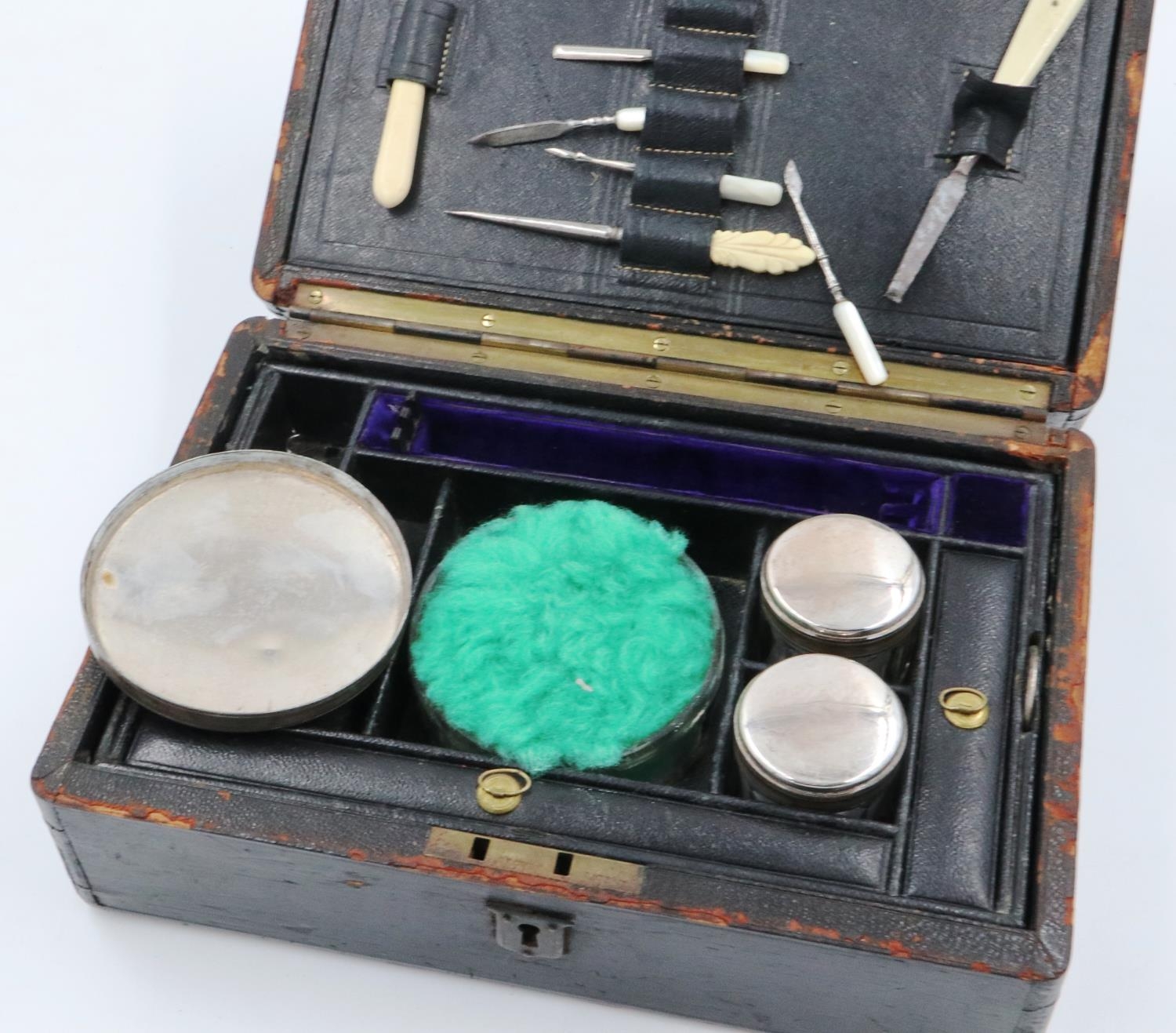 Ladies travelling manicure box with contents. P&P Group 1 (£14+VAT for the first lot and £1+VAT for subsequent lots)