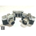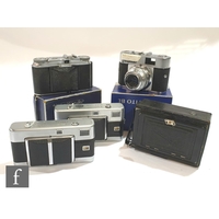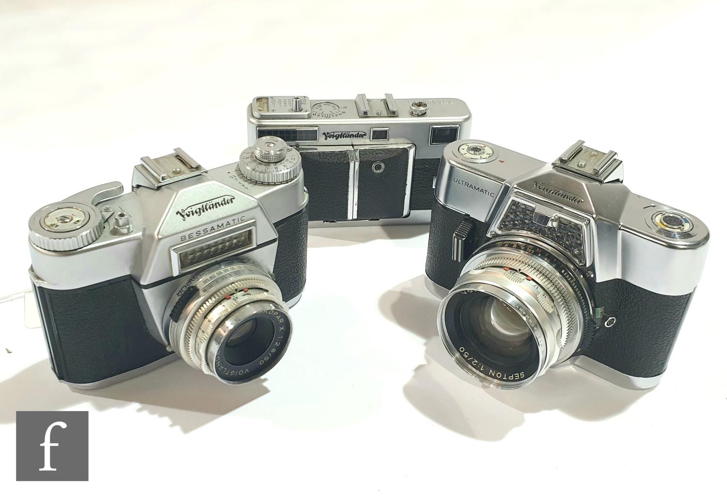 A collection of 1950s/60s Voigtländer cameras to include an Ultamatic Single Lens Reflex Camera (SLR), 1961-1968, serial number 23882, Septon 1:2/50 lens, serial number 6280791, a Bessamatic 35mm SLR camera, serial number 3763, and a Vitessa 35mm folding rangefinder camera, serial number unknown, lens serial number 38996376. (3)