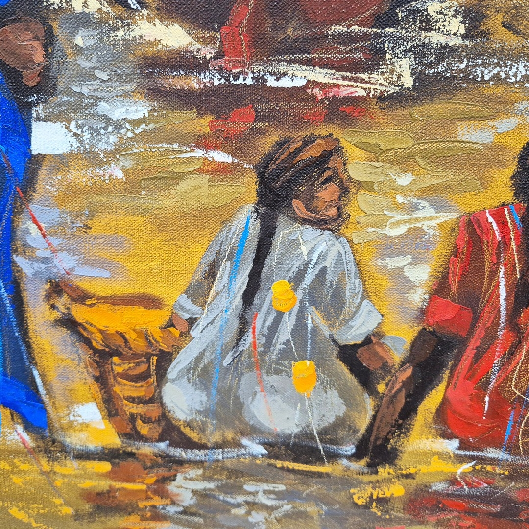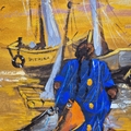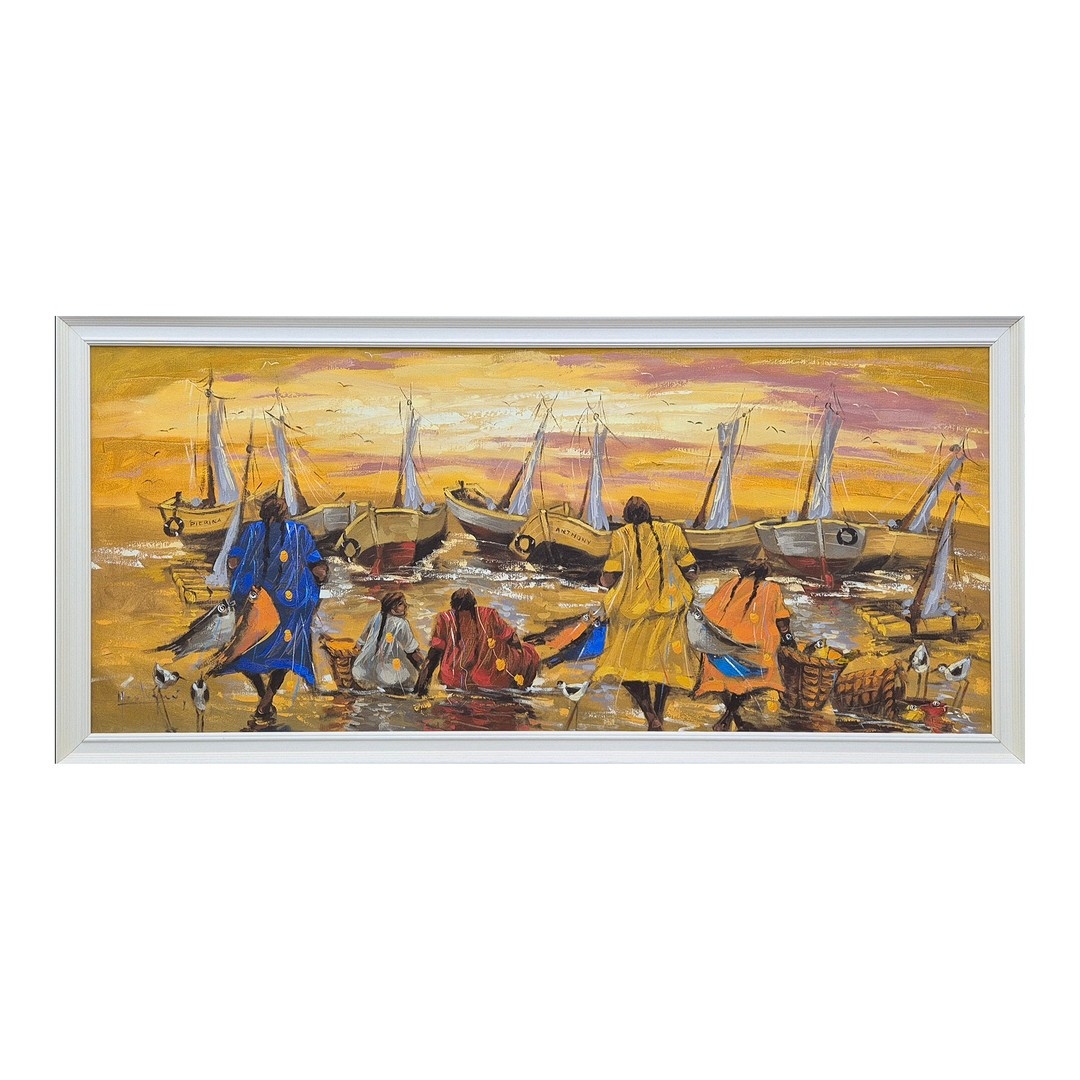 SPANISH SCHOOL (21ST CENTURY). FISHERMAN BY THE SEA. signed by the artist, oil on canvas, 59cm x 157cm.