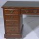 Edwardian oak twin pedestal desk with brass drop handles and green leather inset top (H77 x L122 x W55cm)