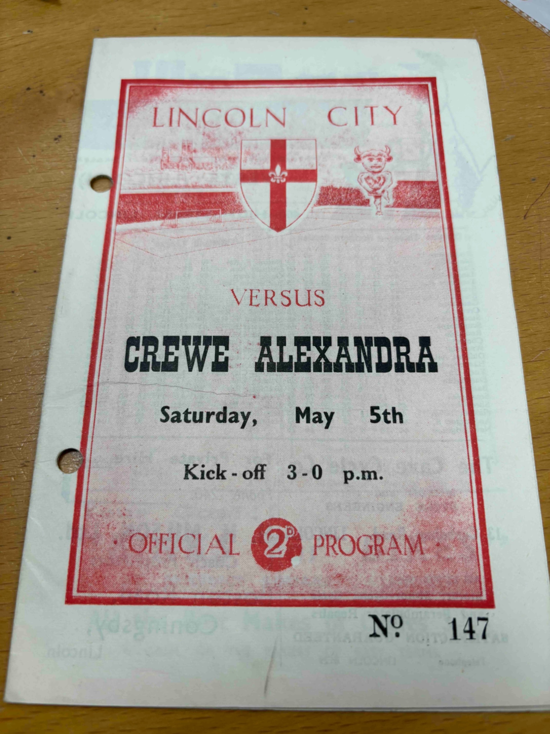 1950/51 Lincoln City v Crewe Alexandra, PH, clean inside.
