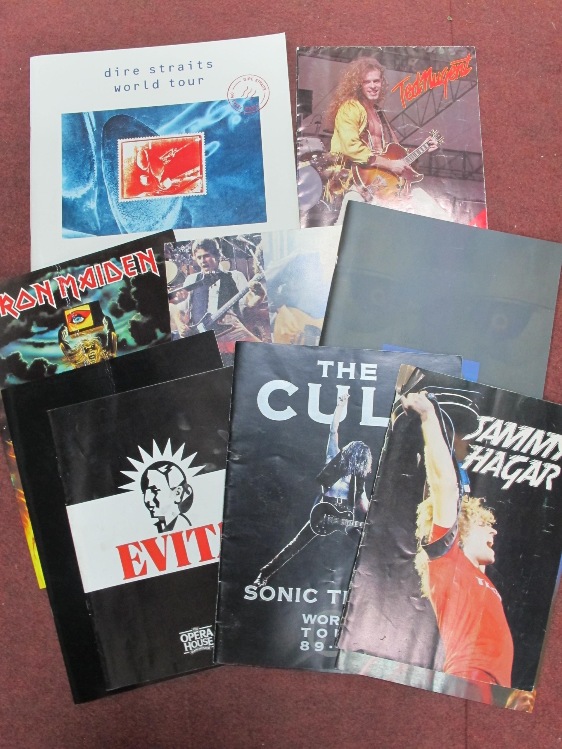 Music Tour Programmes - Iron Maiden, Pink Floyd, Wishbone Ash, Sammy Hagar, Simply Red, Evita, 10cc, Ted Nugent, The Cult, Dire Straits (10).