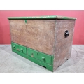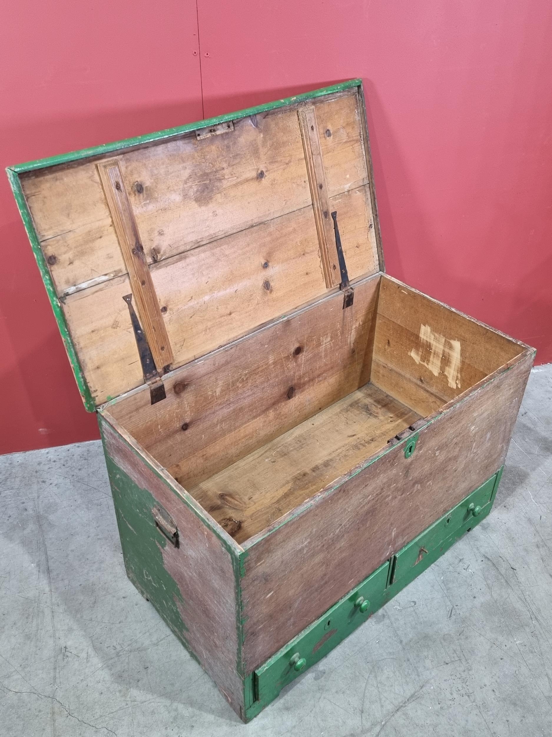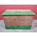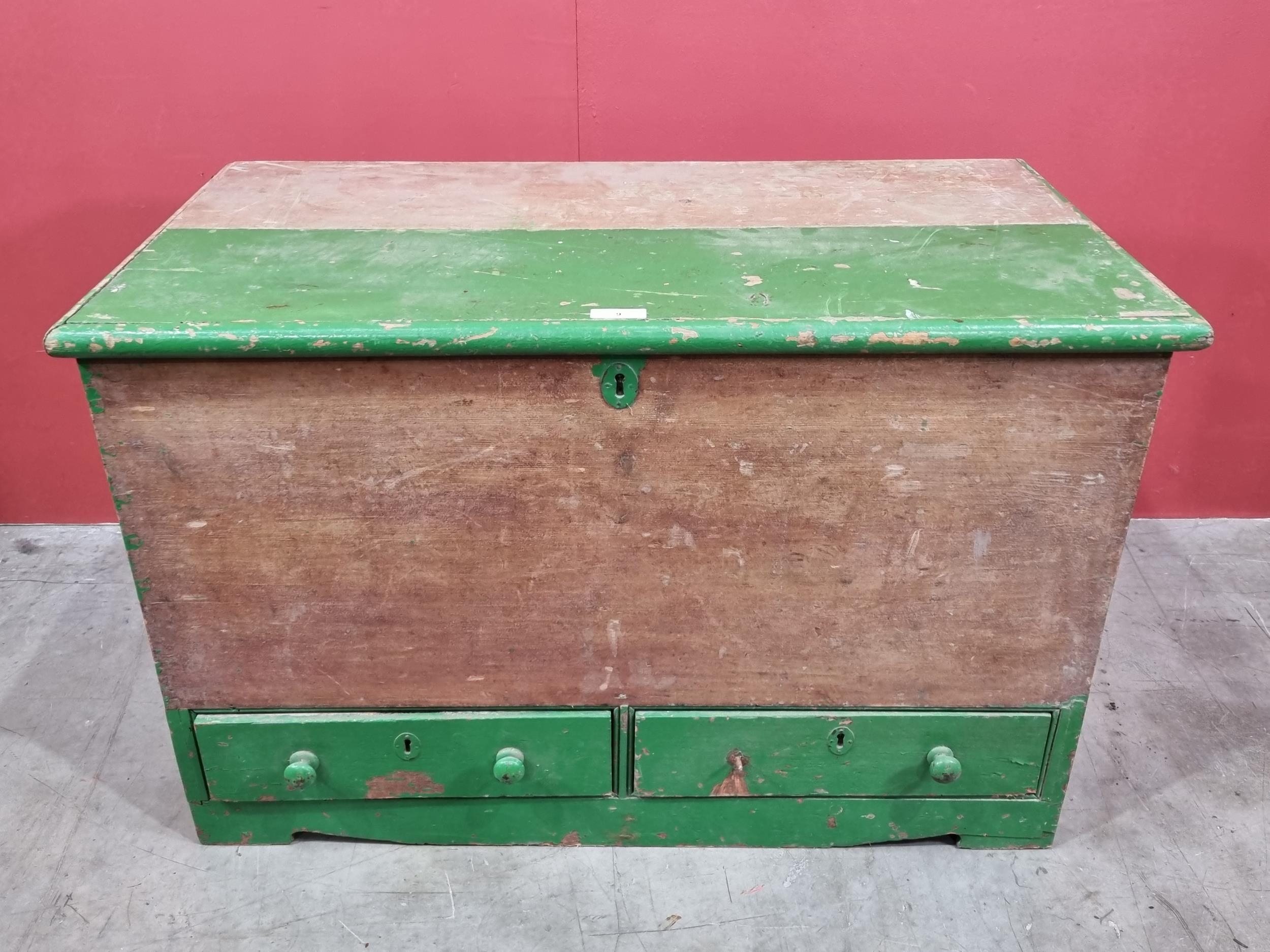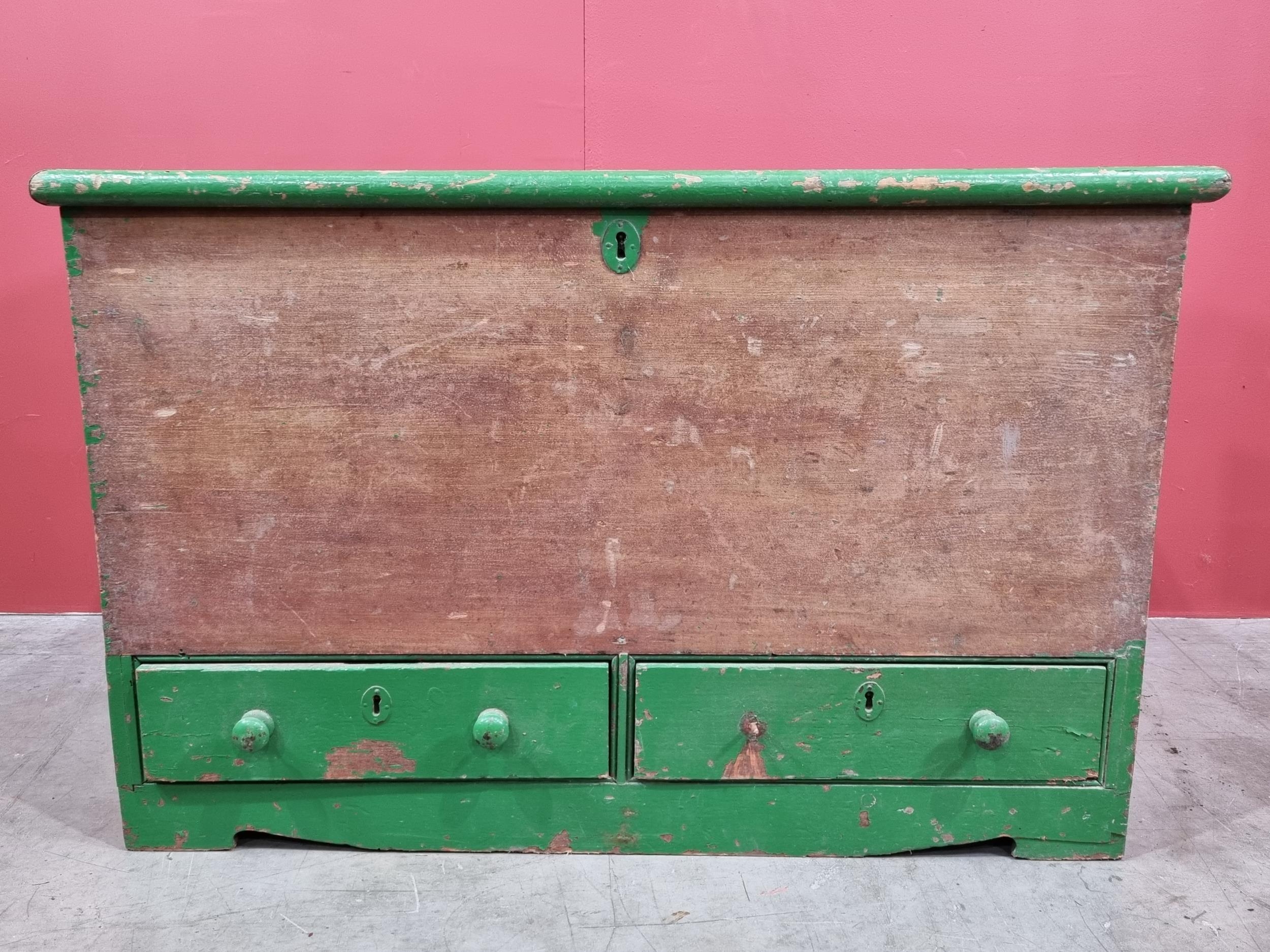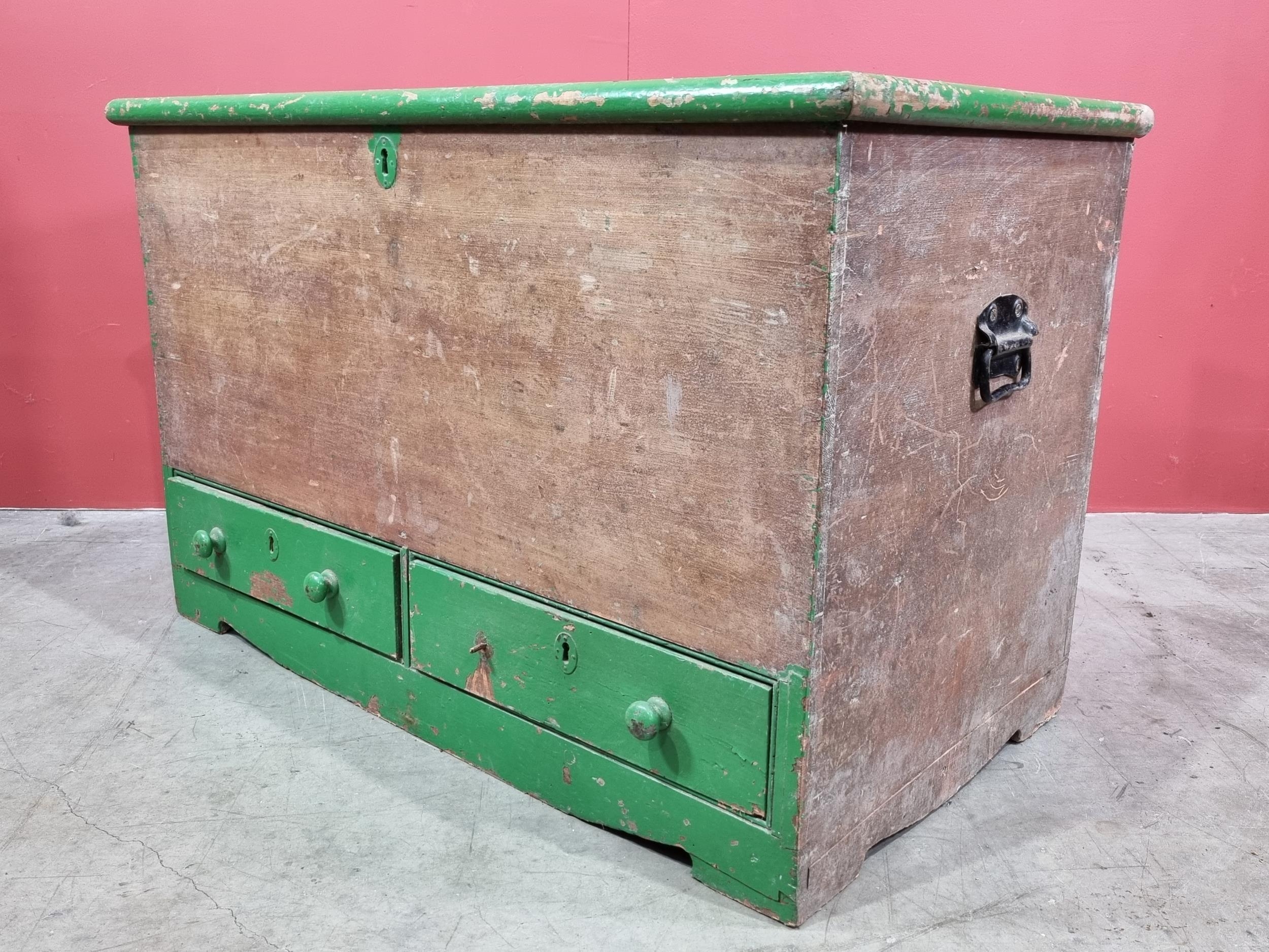 A painted pine Mule Chest the lift up lid above pair of fitted drawers, and pair of carry handles, 2ft 4in High x 3ft 1in Wide x 20in Deep.