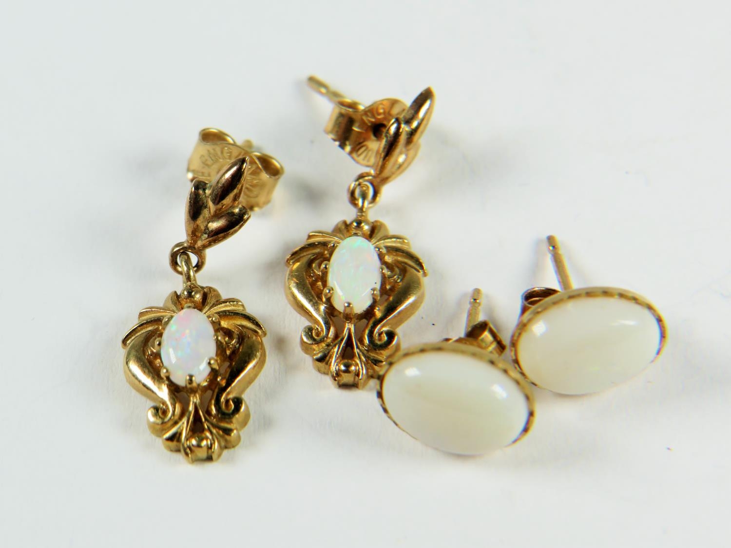 2 x 9ct gold paired opal earrings inc. drop & stud (2.3g) 2030118