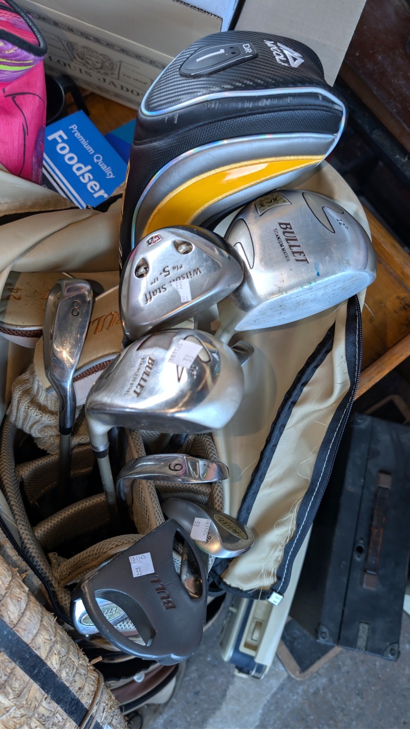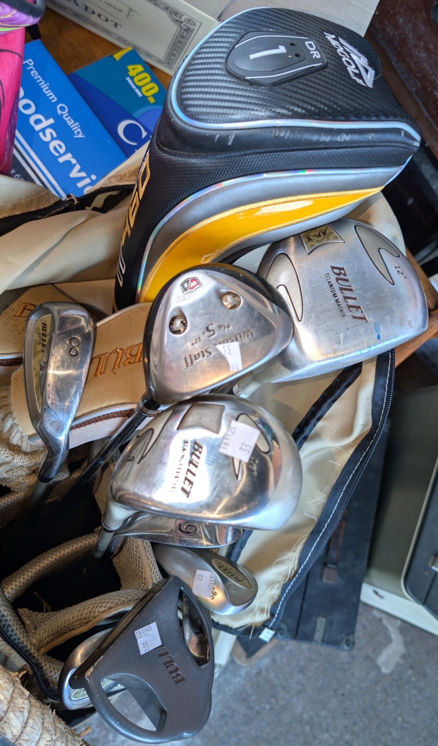 A selection of Bullet and other golf clubs. (Both sets are Ladies golf clubs).