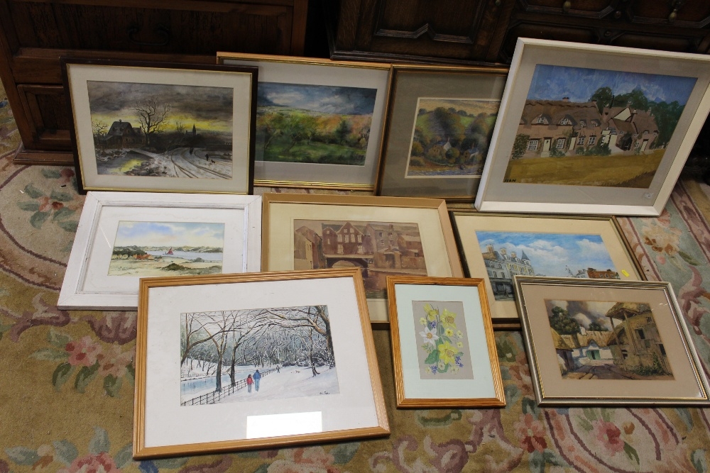 A COLLECTION OF FRAMED AND GLAZED WATERCOLOURS ETC (10)