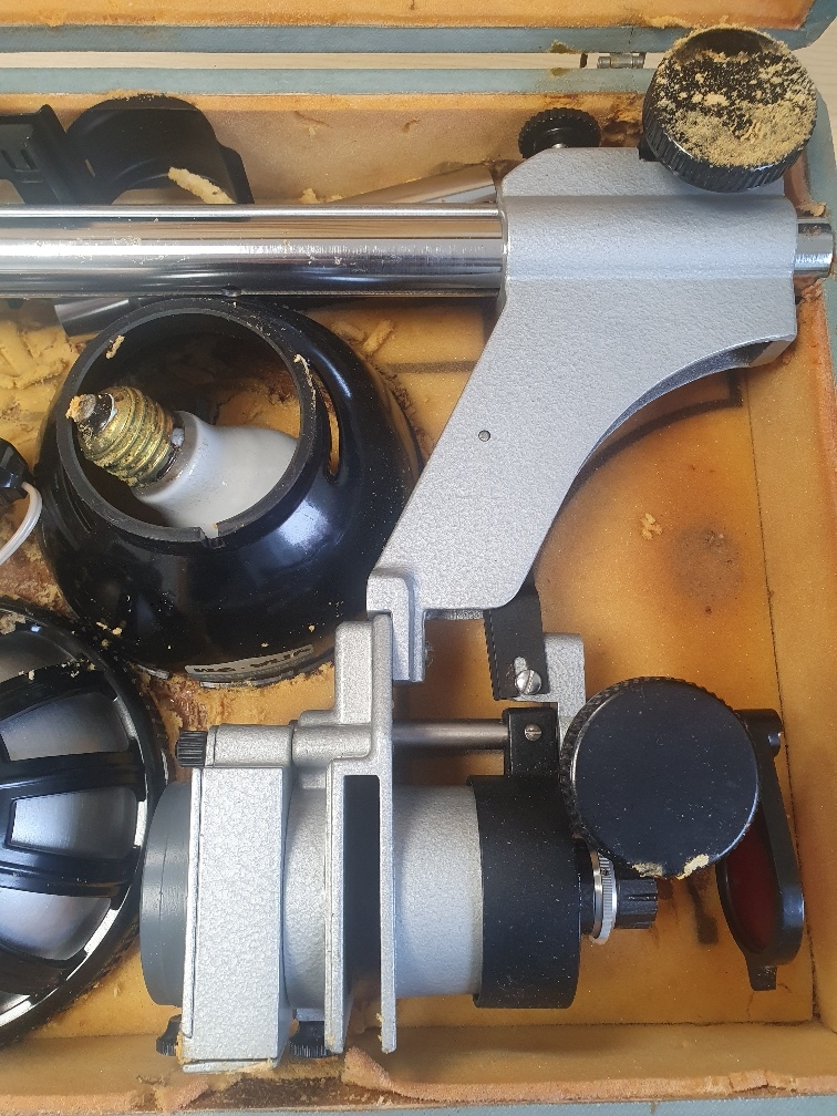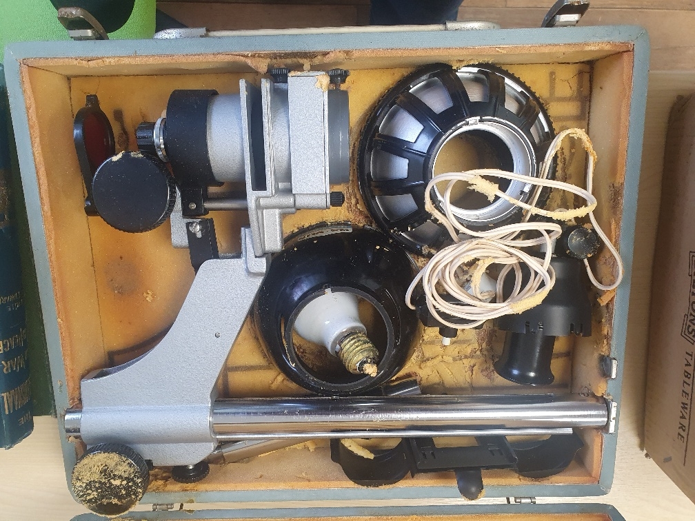 Vintage Russian Zenith Photographic Enlarger with original case. Untested. Please note that the foam inside the case has deteriorated significantly and the enlarger will require cleaning. Original label in box, marked CCCP.