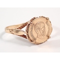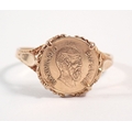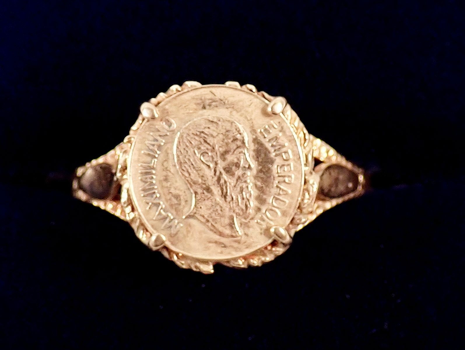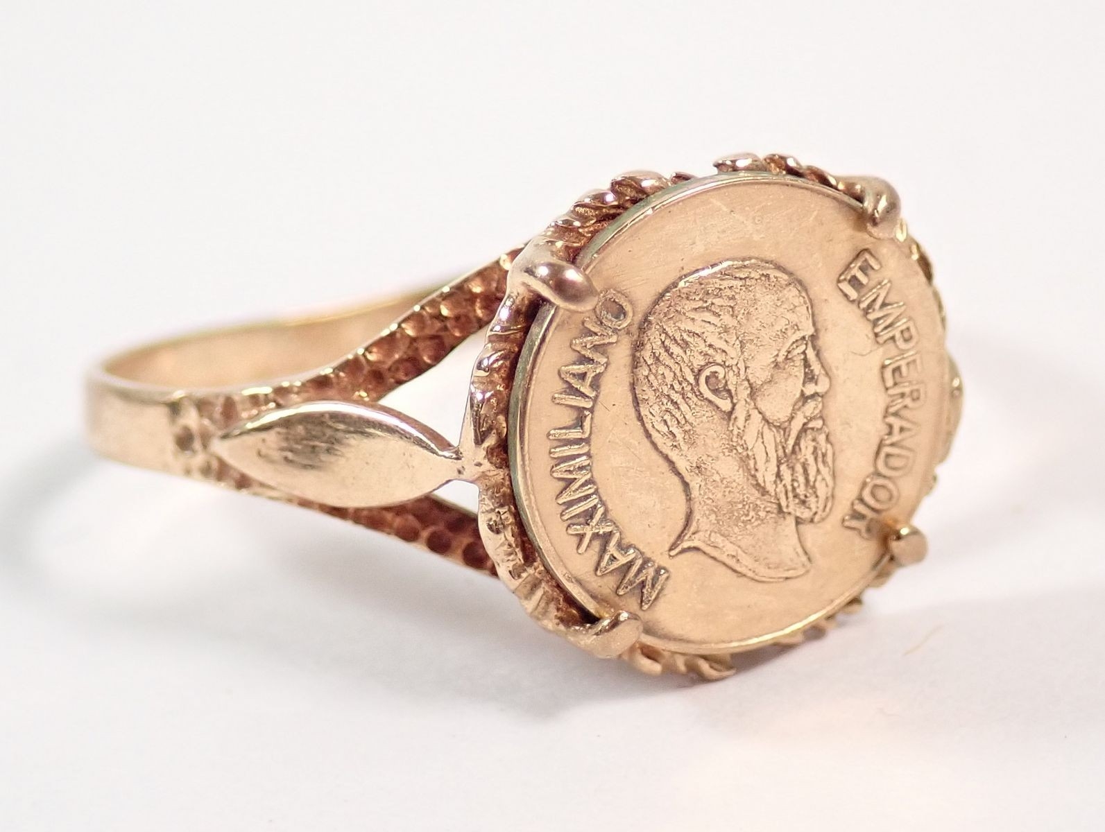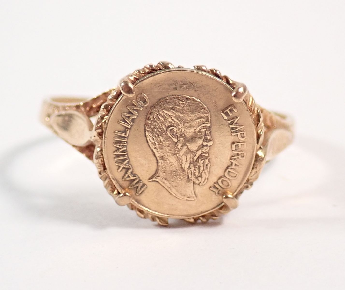 A 9ct gold ring set 0.5g 22ct gold Mexican coin, size O, total weight 2g