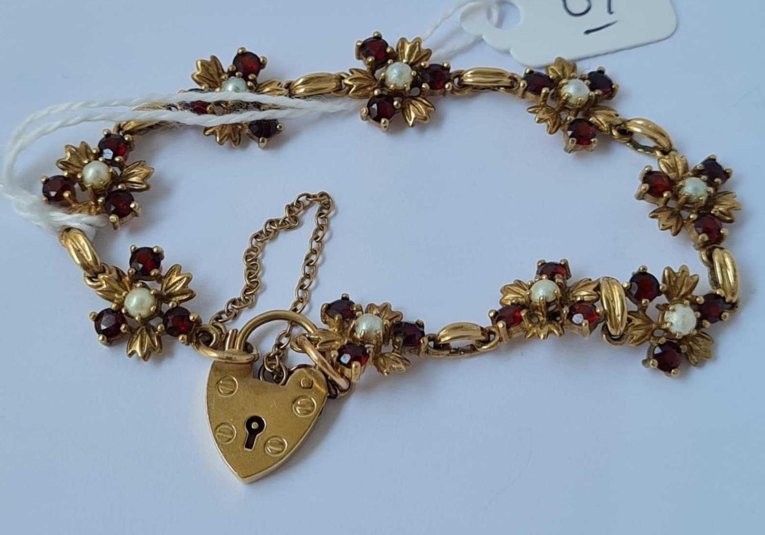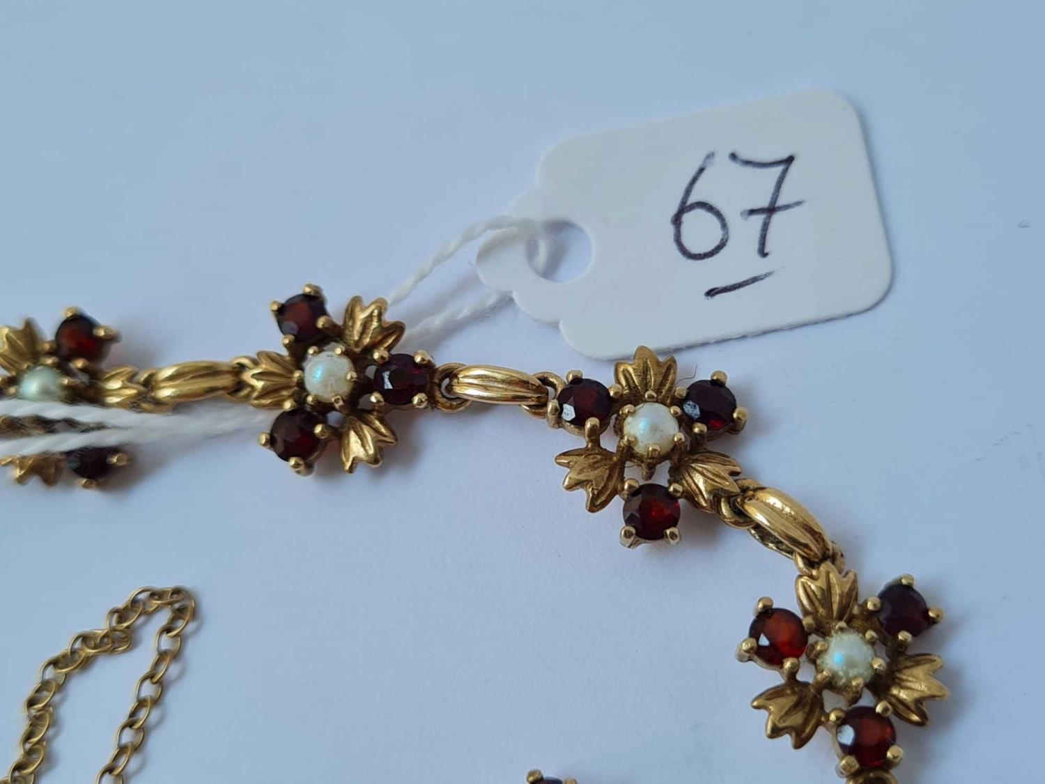 Vintage garnet and pearl 9ct bracelet 11.4g inc