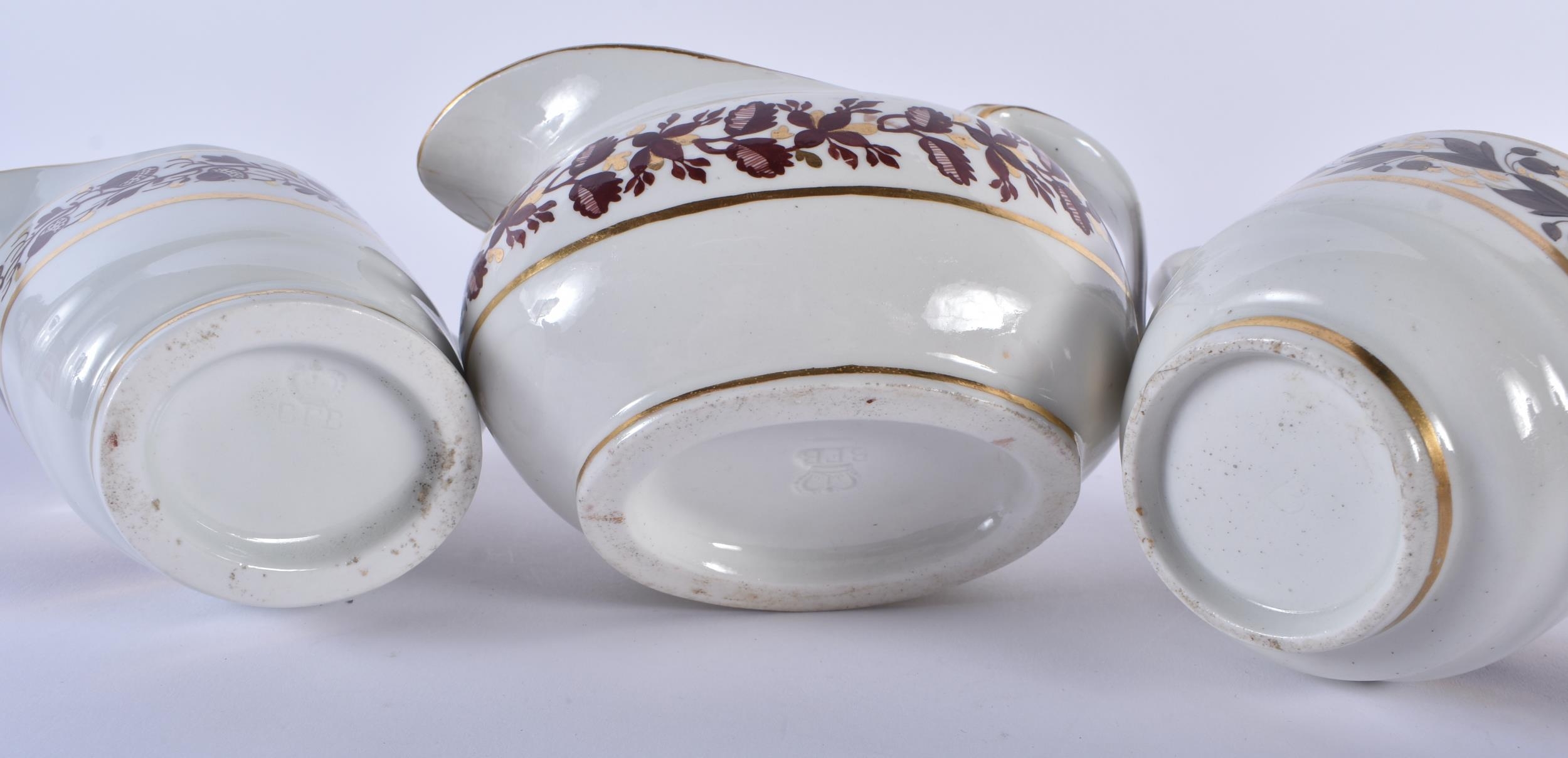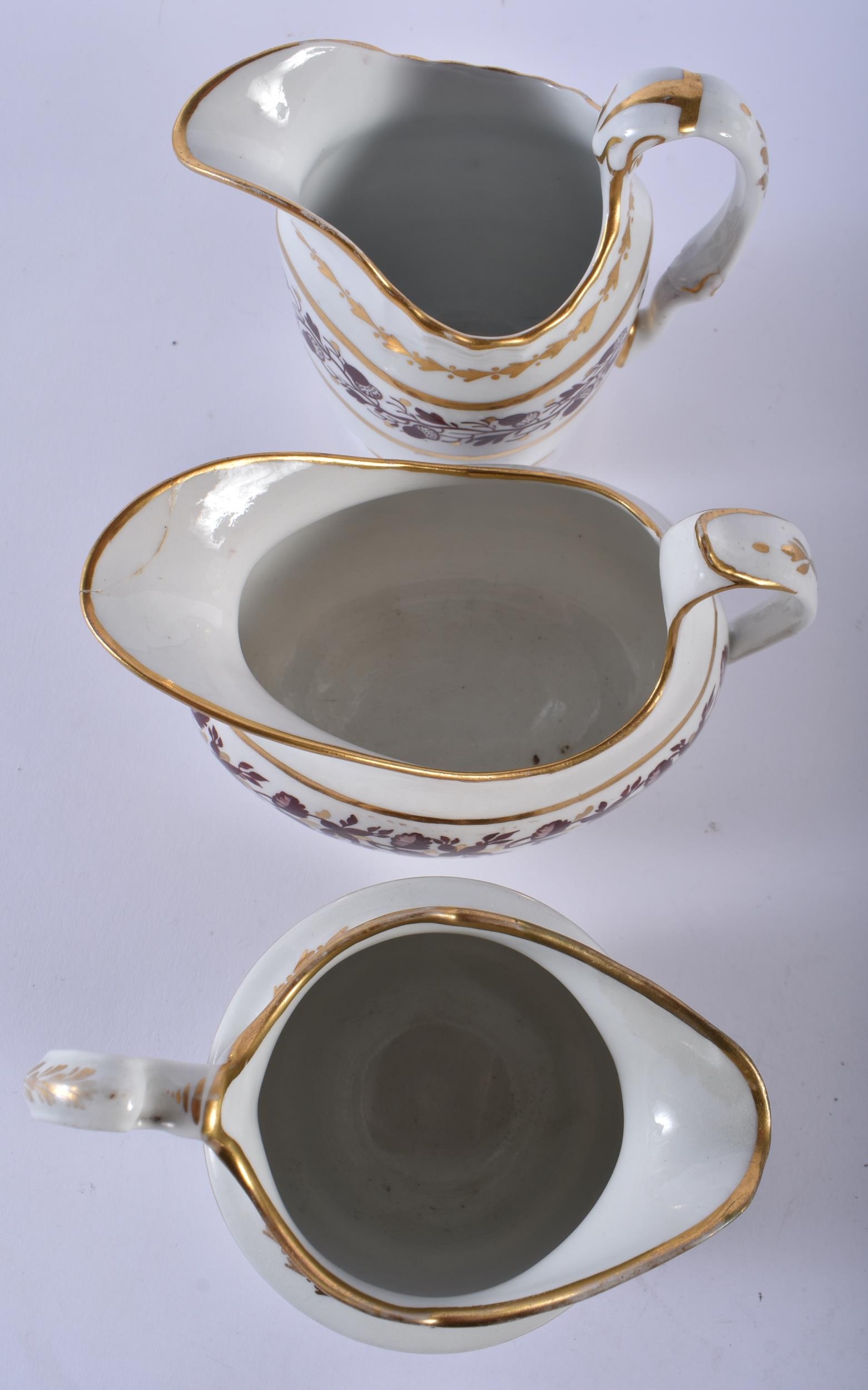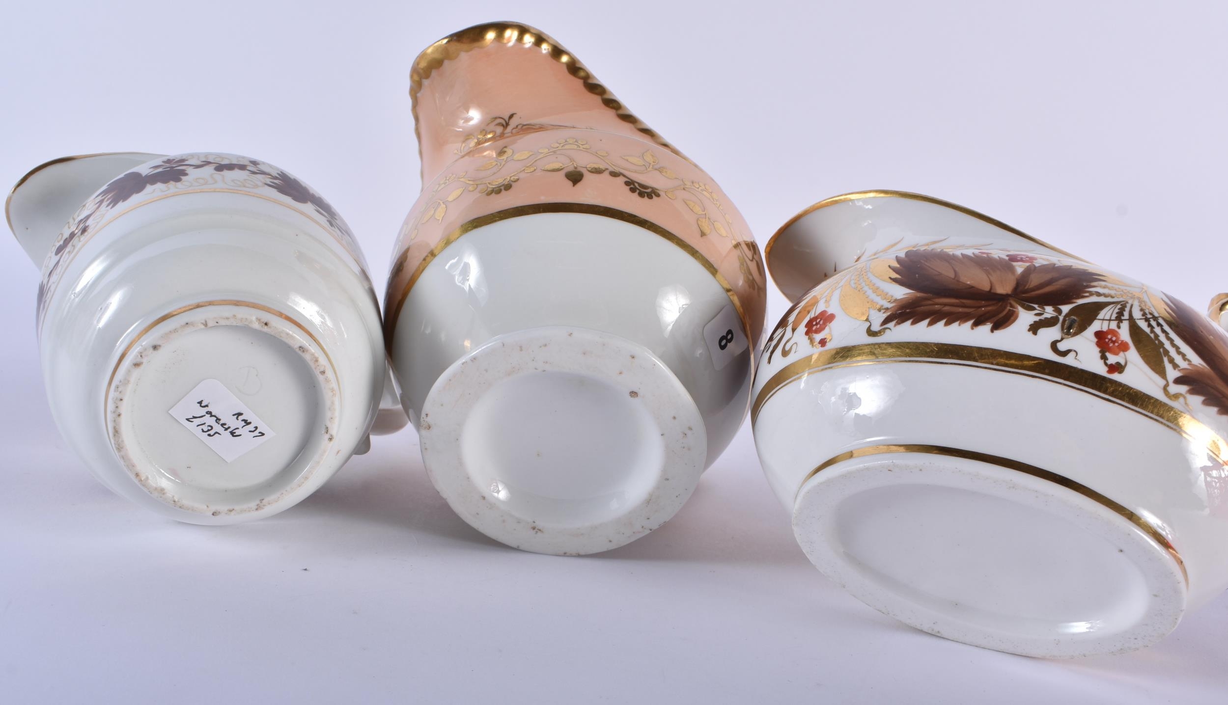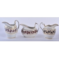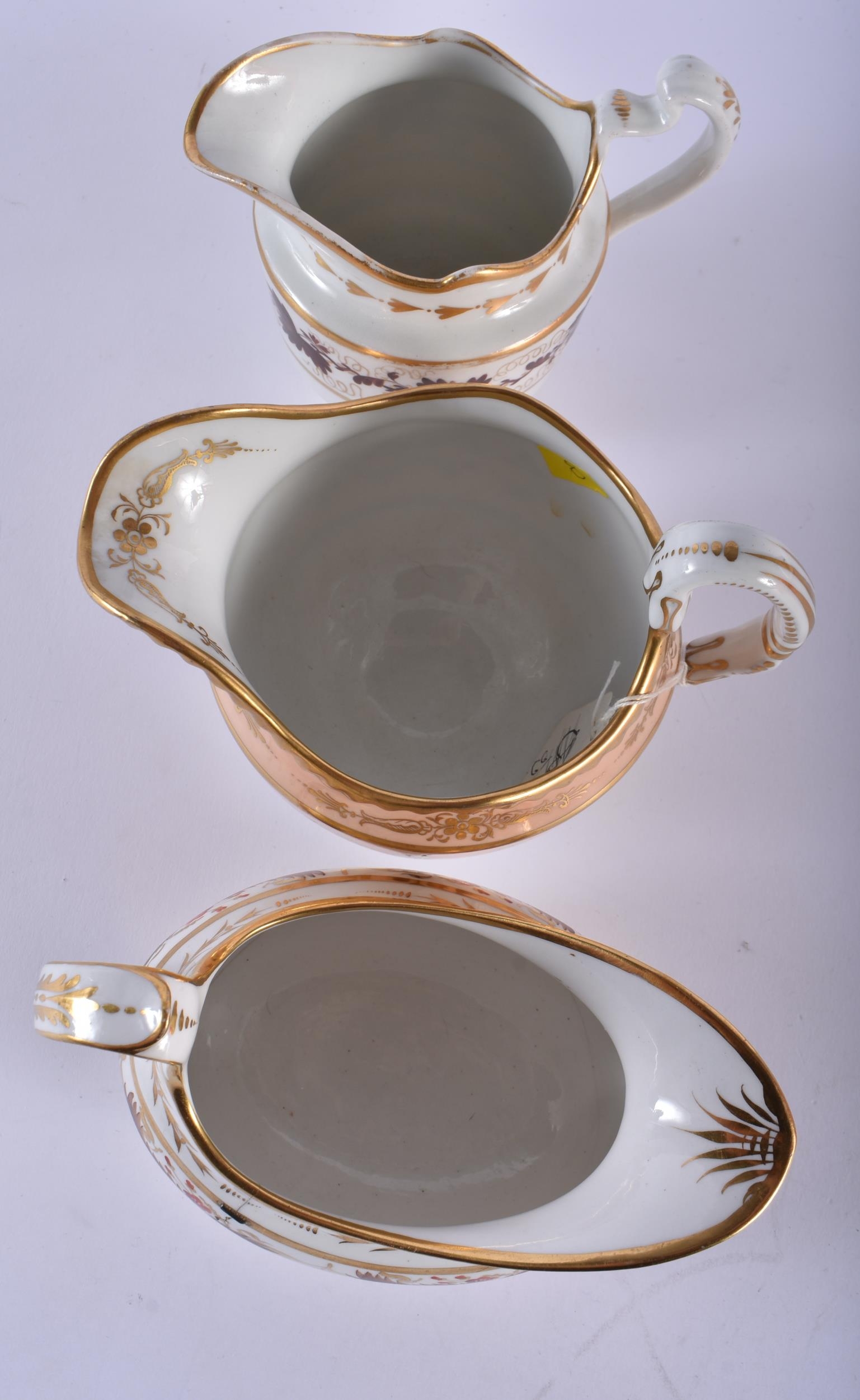 A SET OF SIX EARLY 19TH CENTURY FLIGHT BARR AND BARR CREAM JUGS in various forms and sizes. Largest 12.5cm wide. (6)