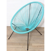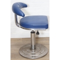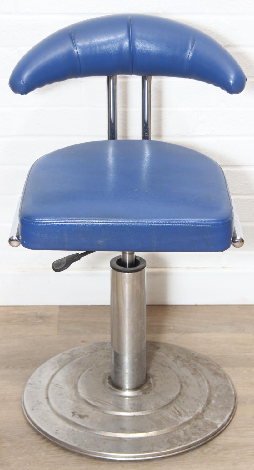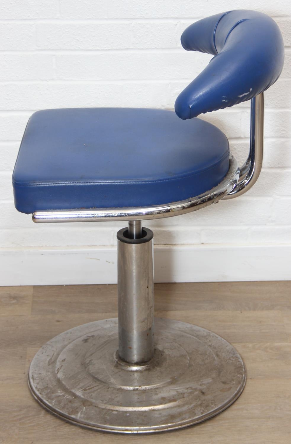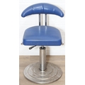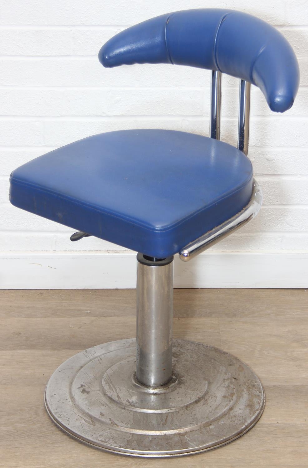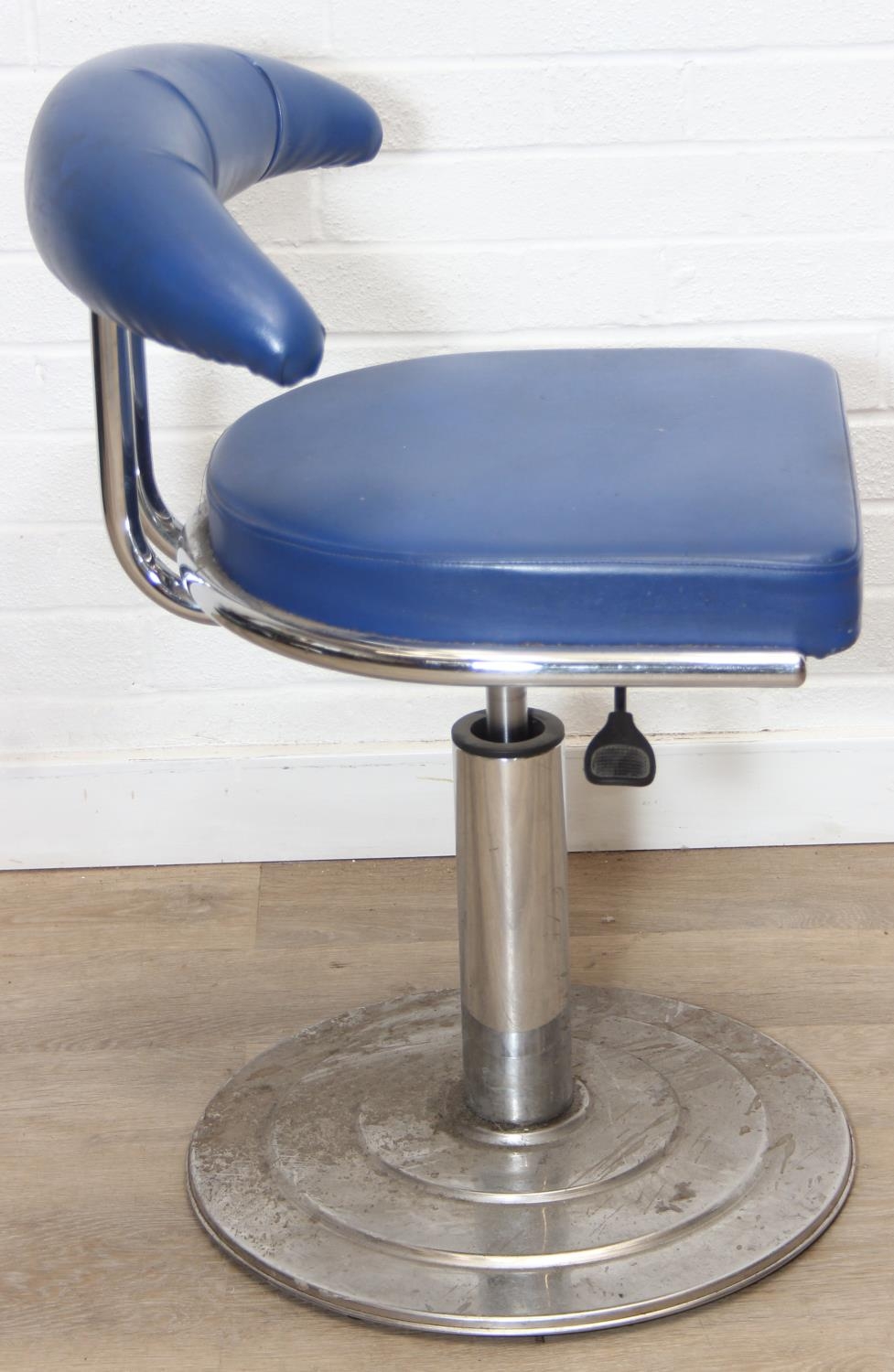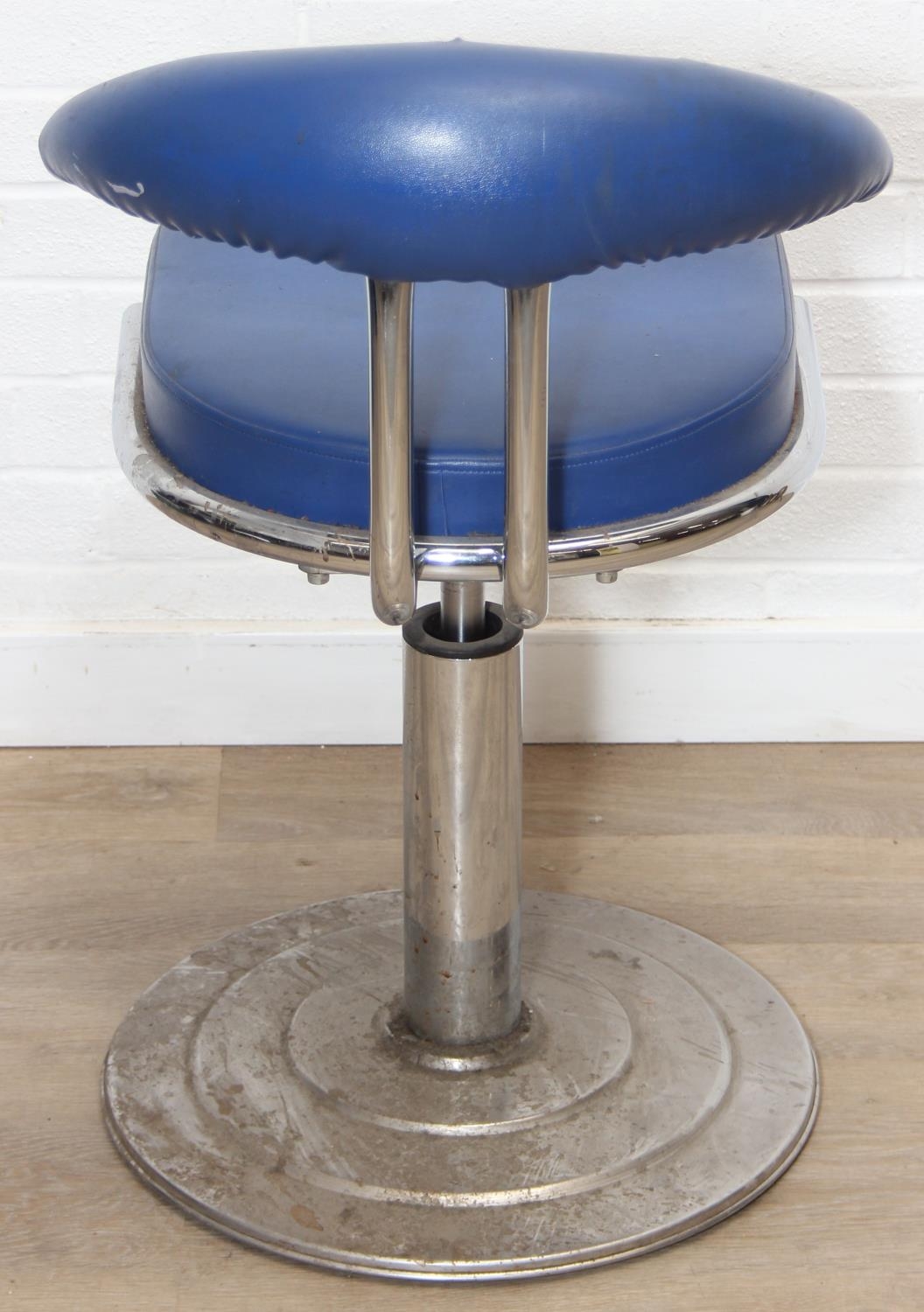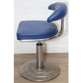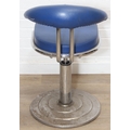 Retro American diner style swivel chair with azure blue leather type upholstery and chrome frame, 80cm tall