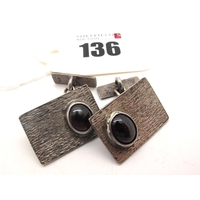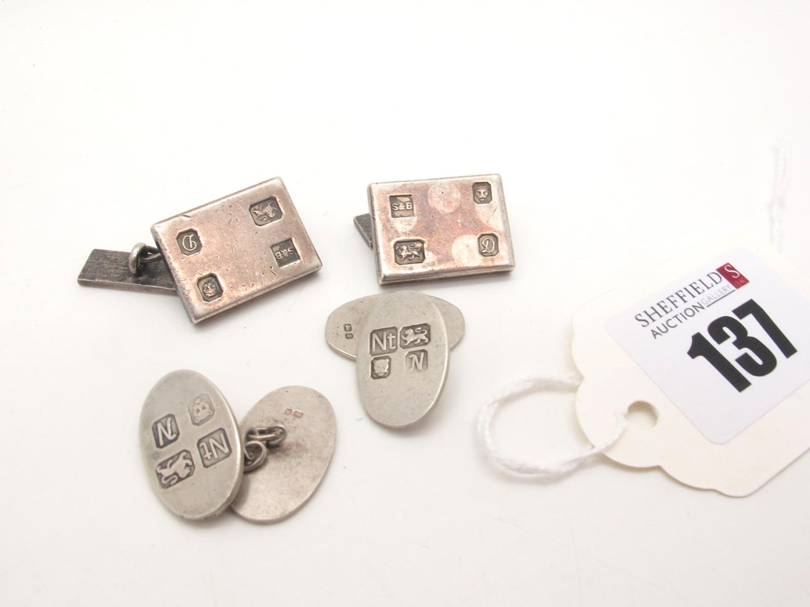 A Pair of Hallmarked Silver Cufflinks, bearing feature hallmarks, S&B, London 1978; Together with An Oval Pair of Hallmarked Silver Cufflinks, bearing feature hallmarks Nt, London 1987. (2)