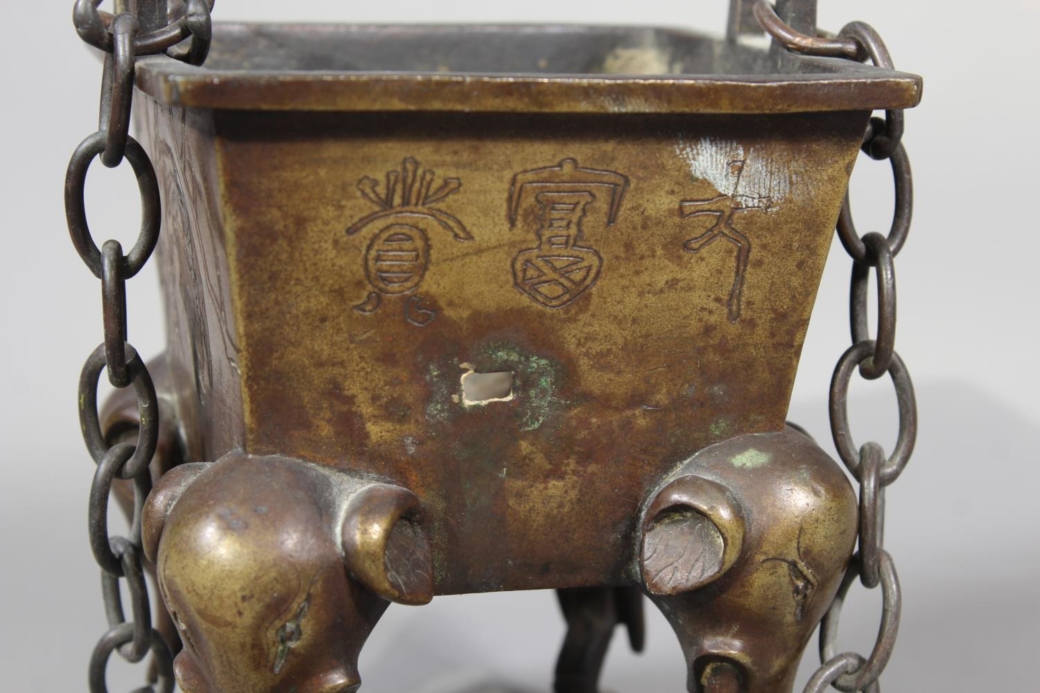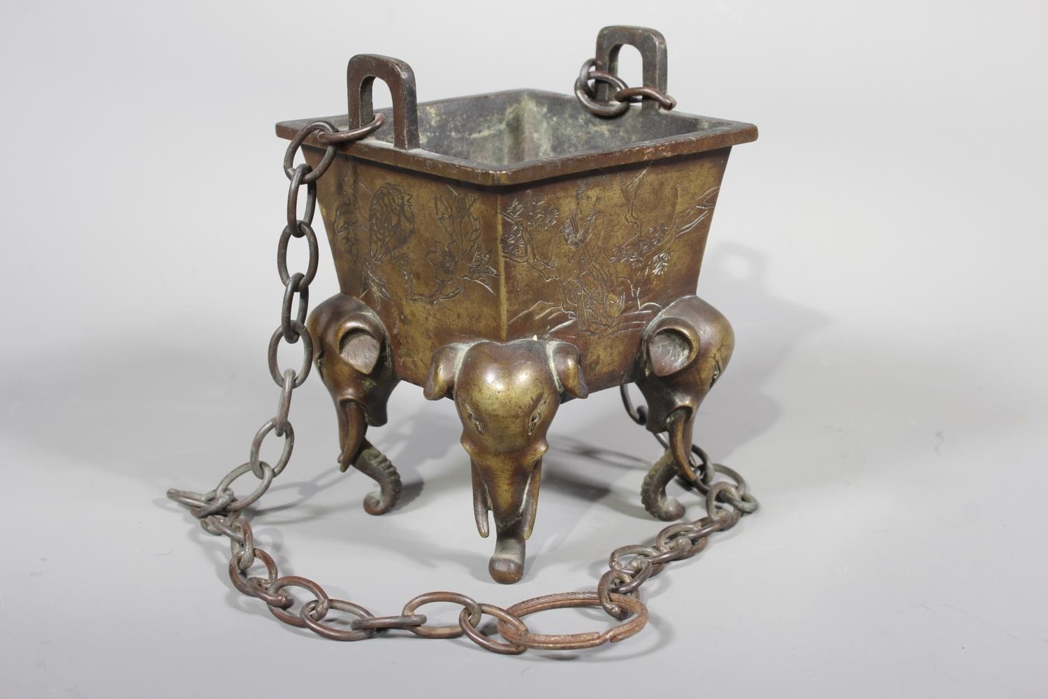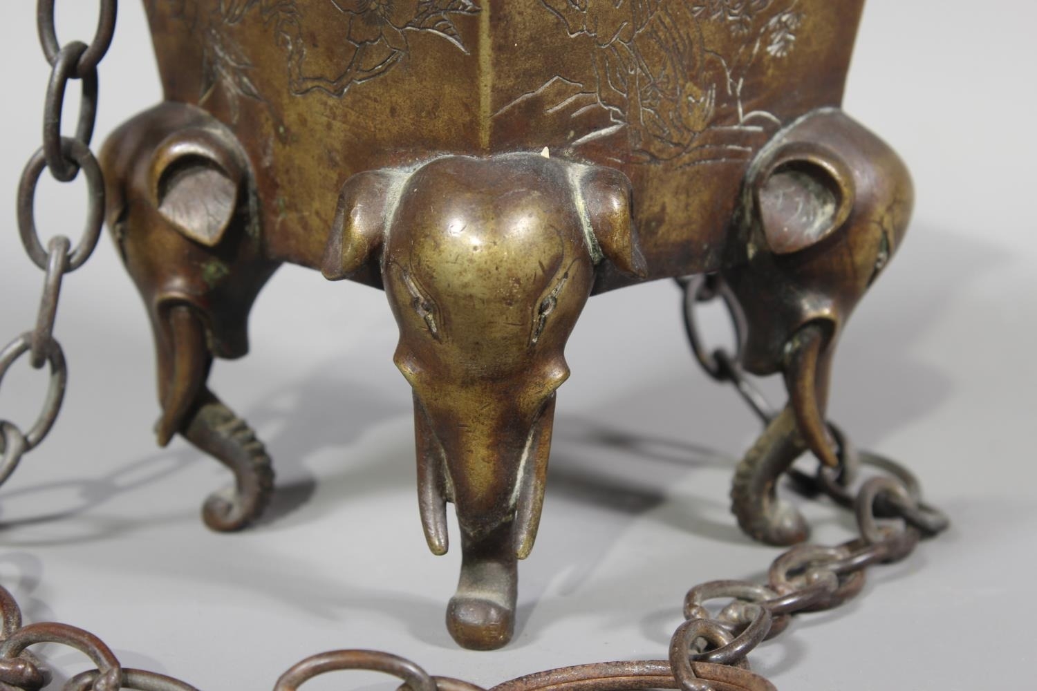 Chinese bronze censer raised on four elephant supports, 14cm tall.