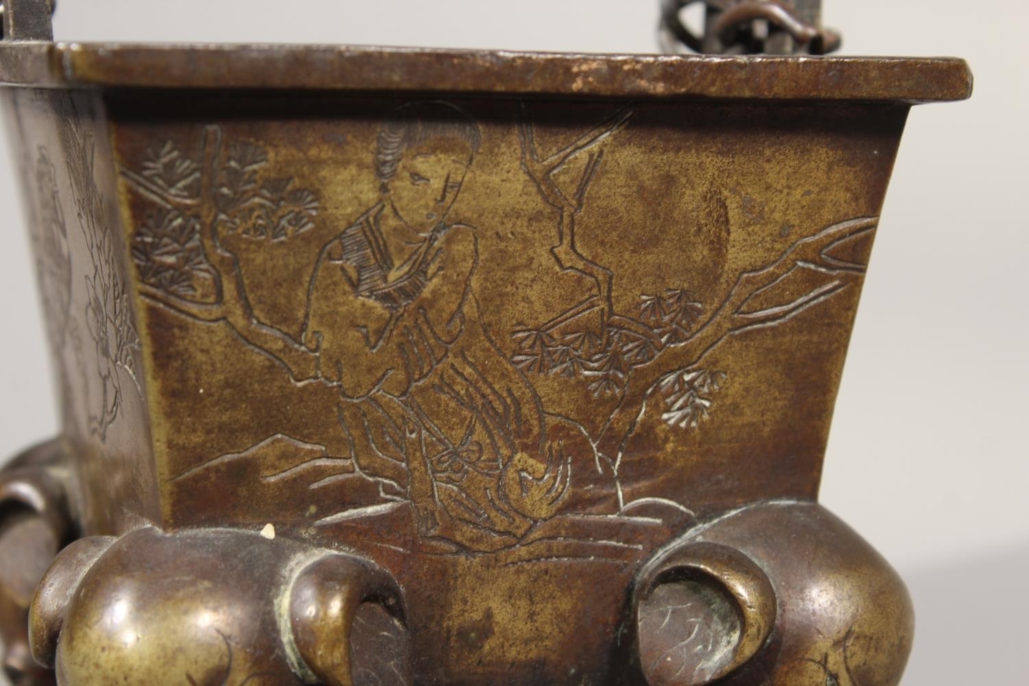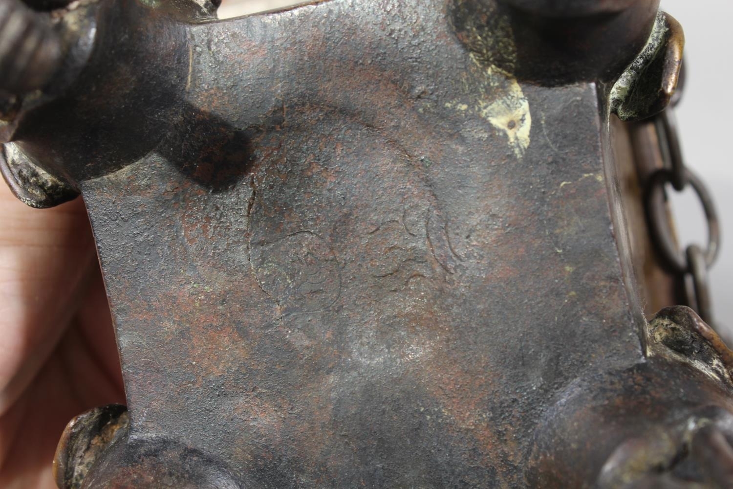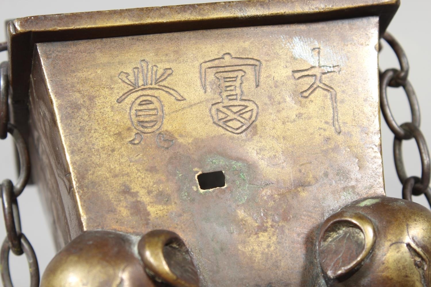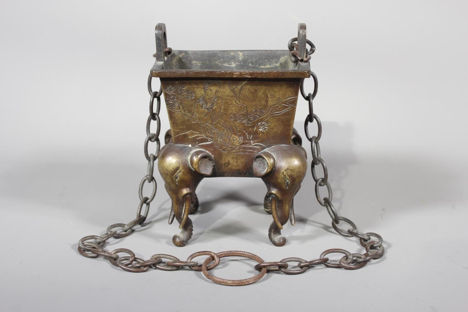 Chinese bronze censer raised on four elephant supports, 14cm tall.