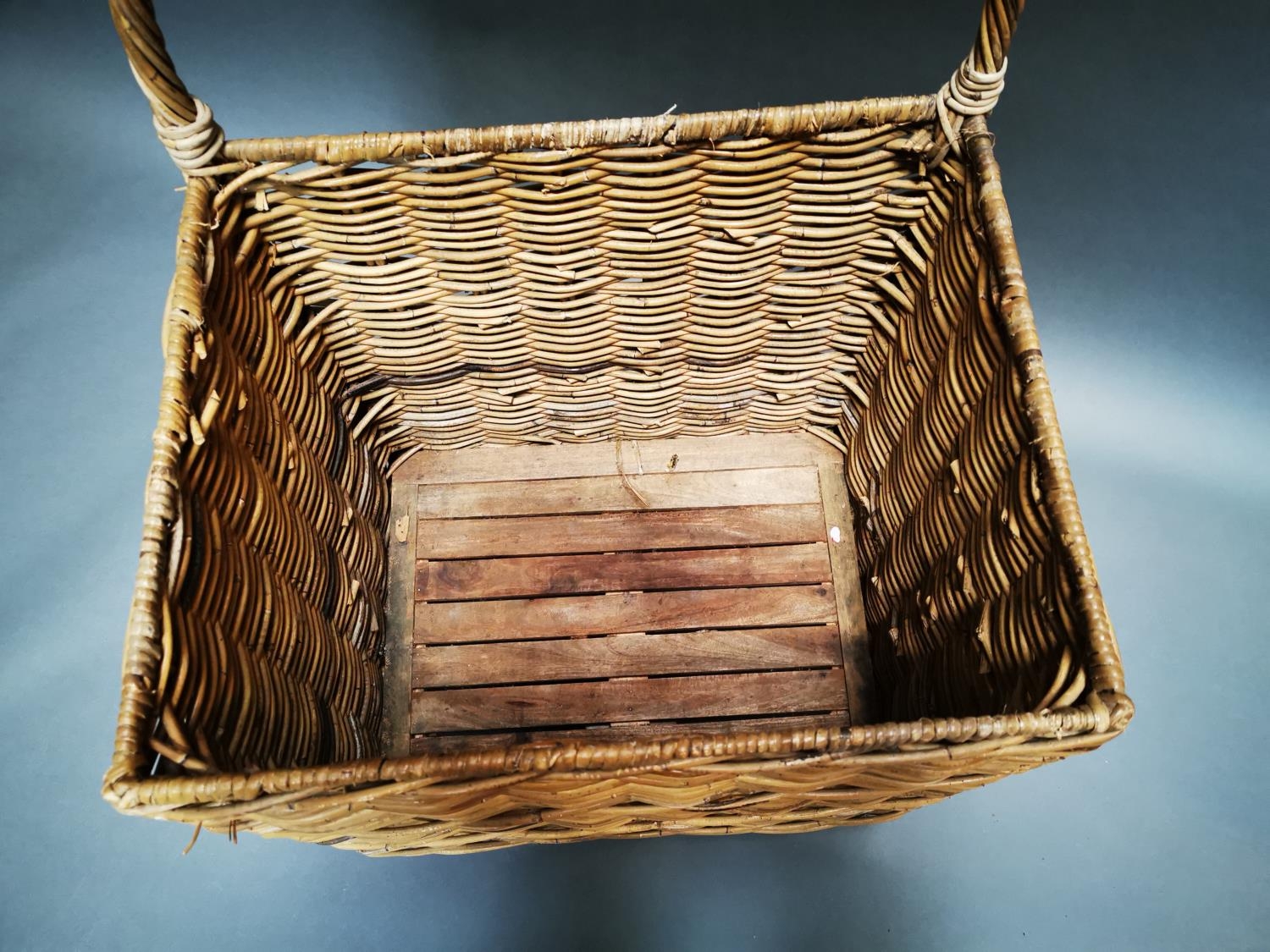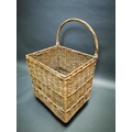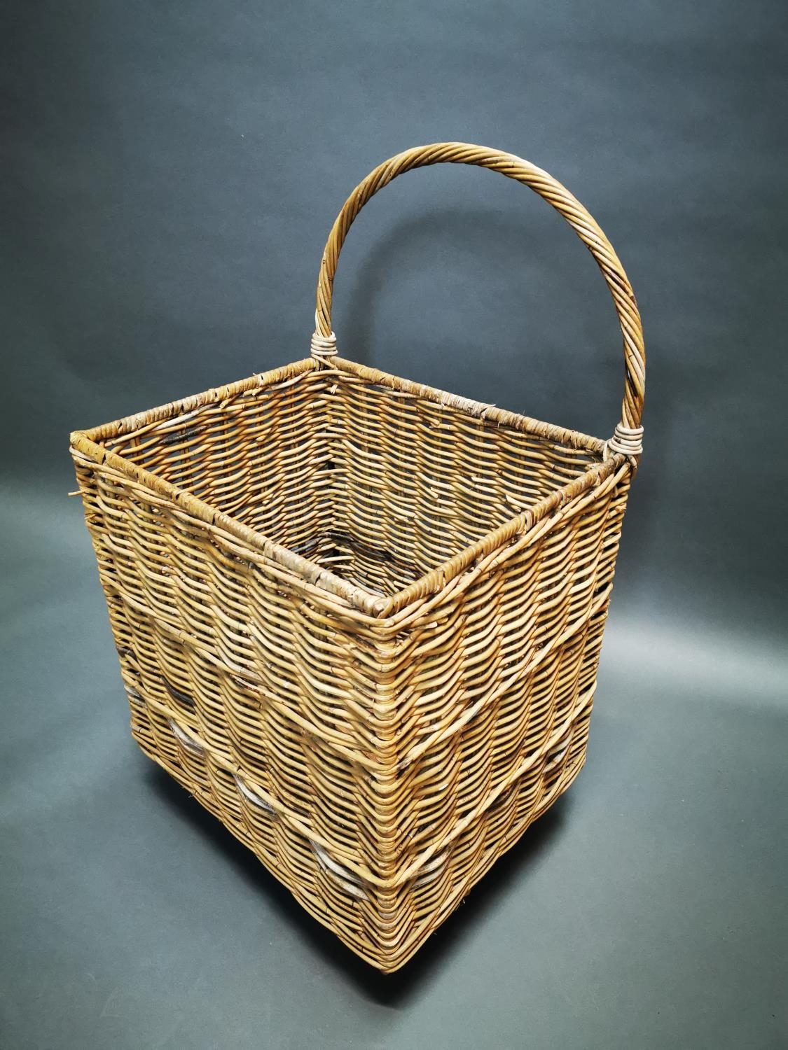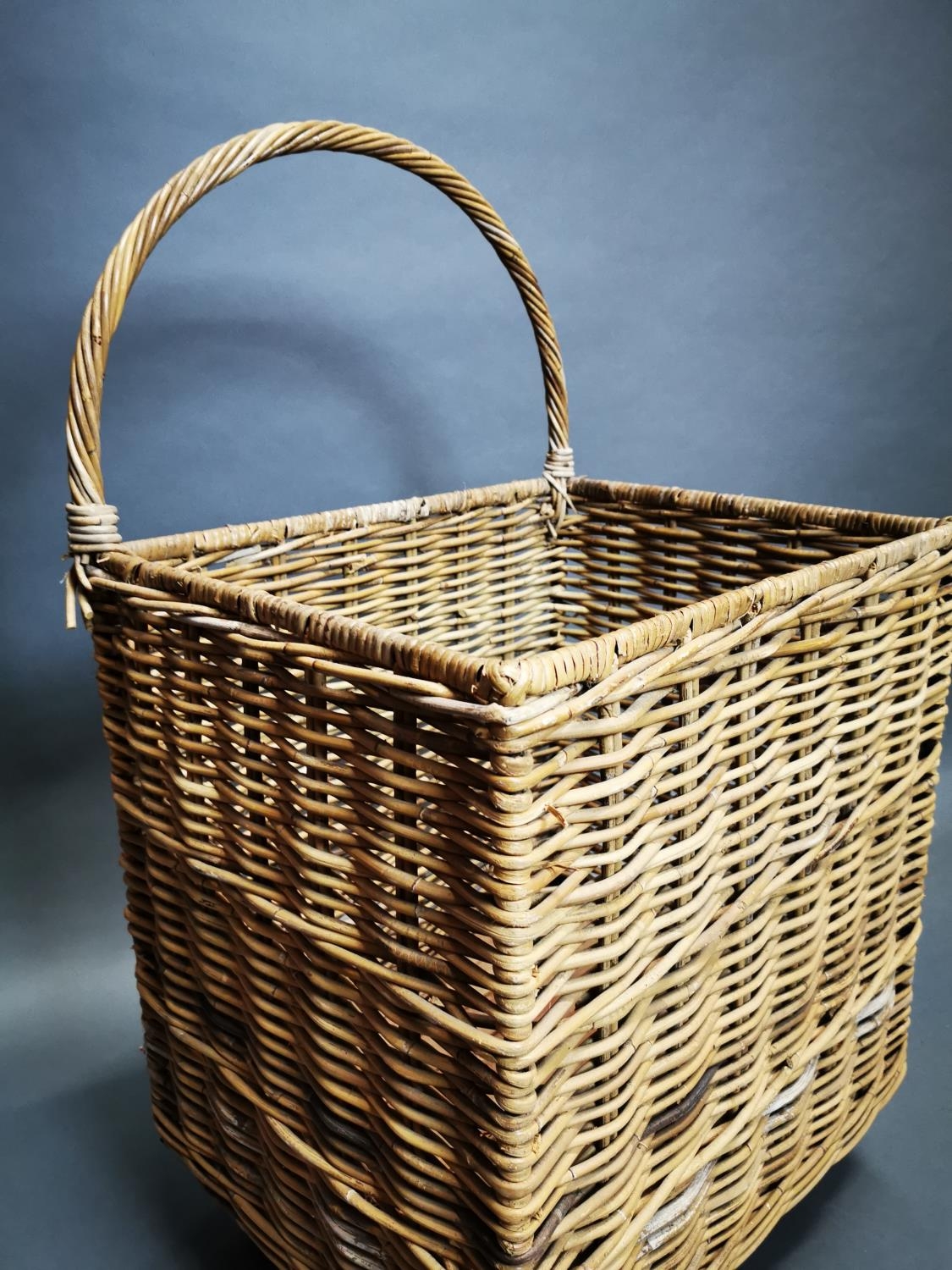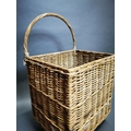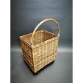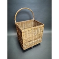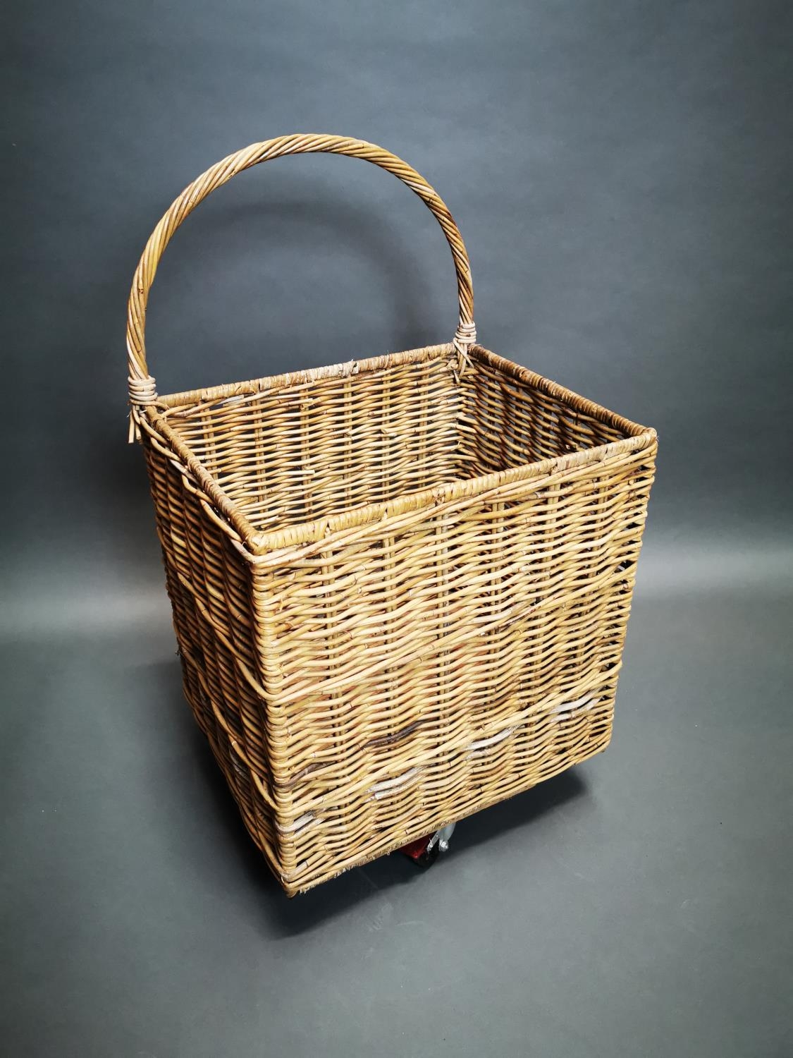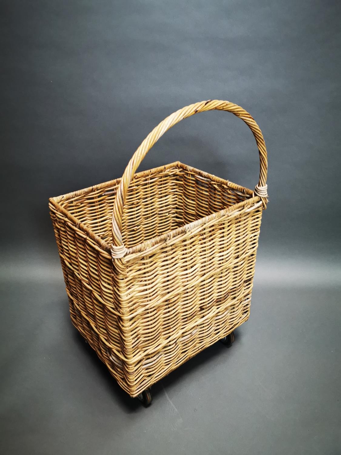Early 20th C. wicker log basket on wheels {96 cm H x 54 cm W x 44 cm D}.