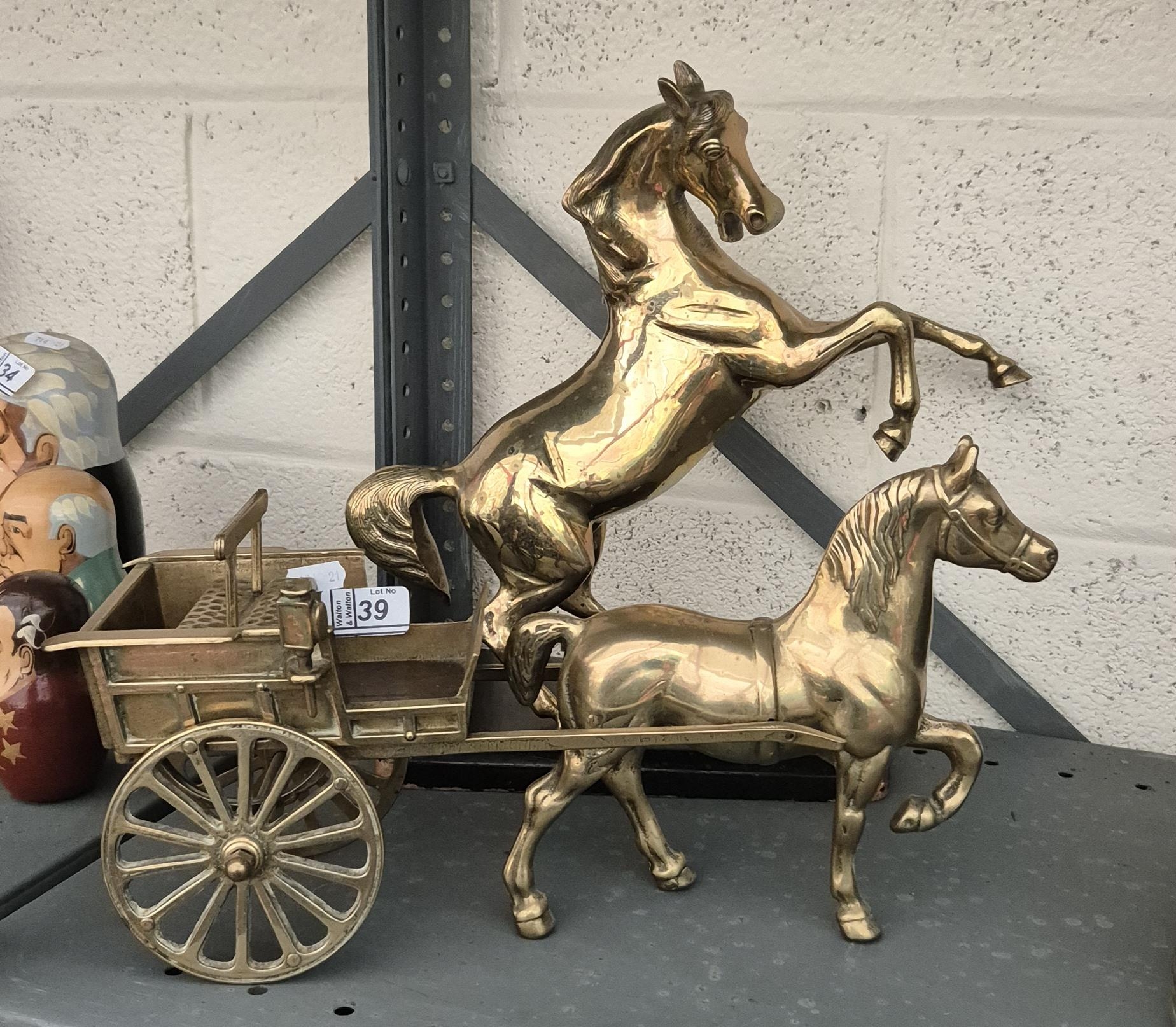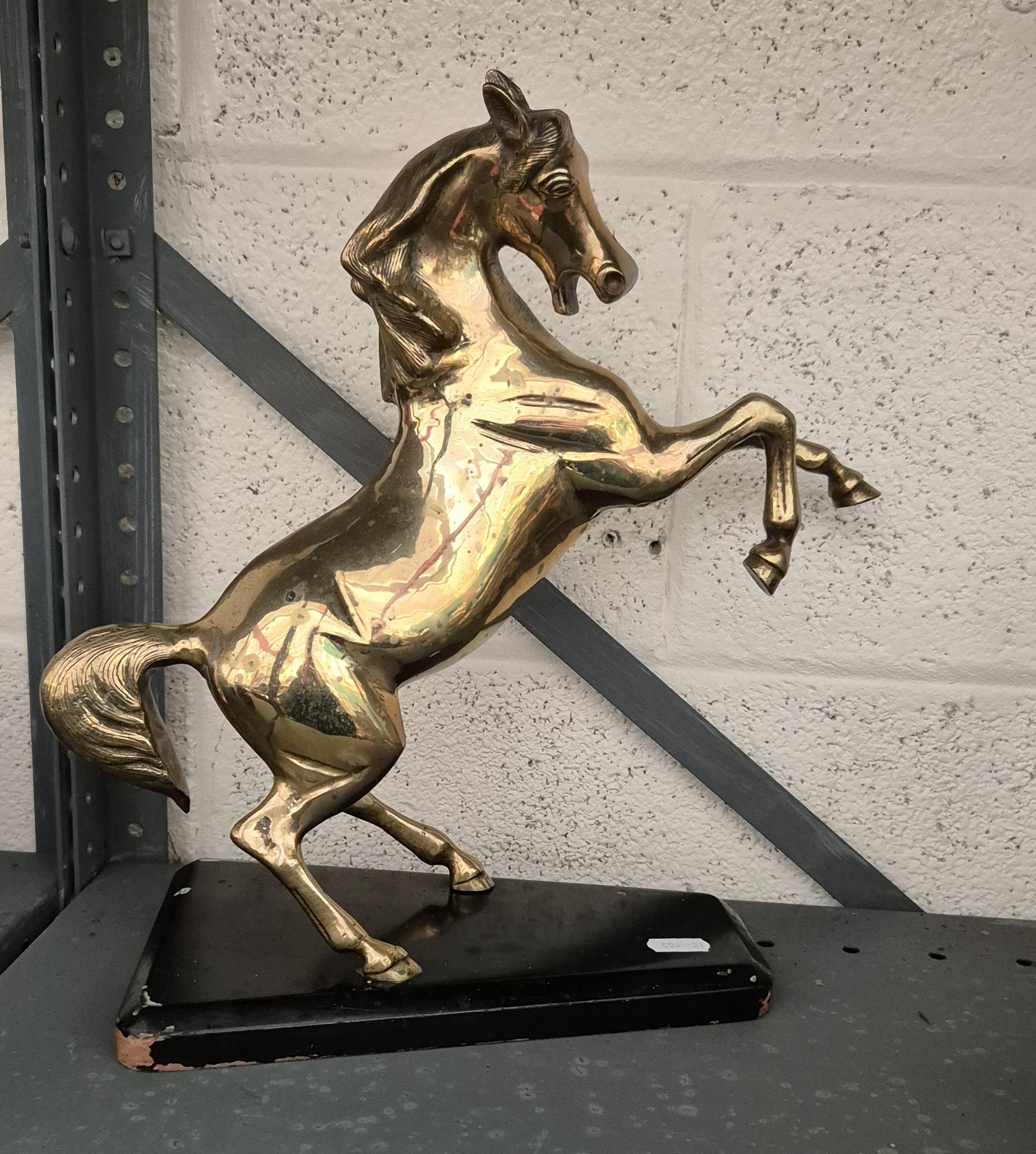 34cm Brass rearing horse plus one other