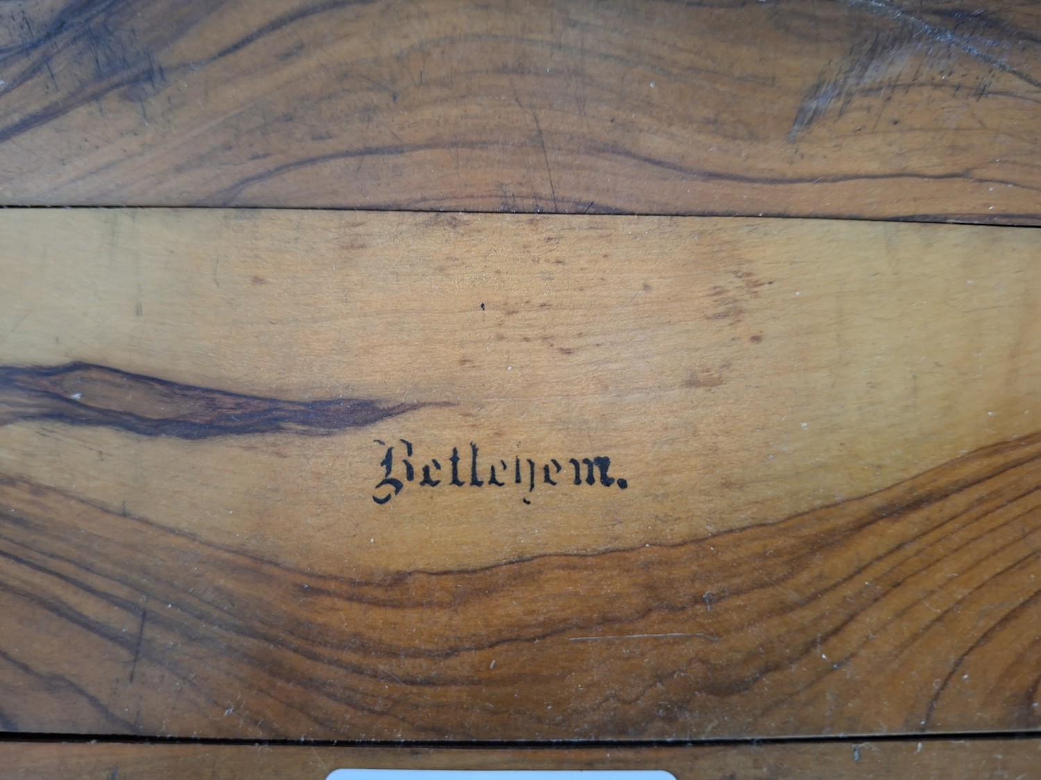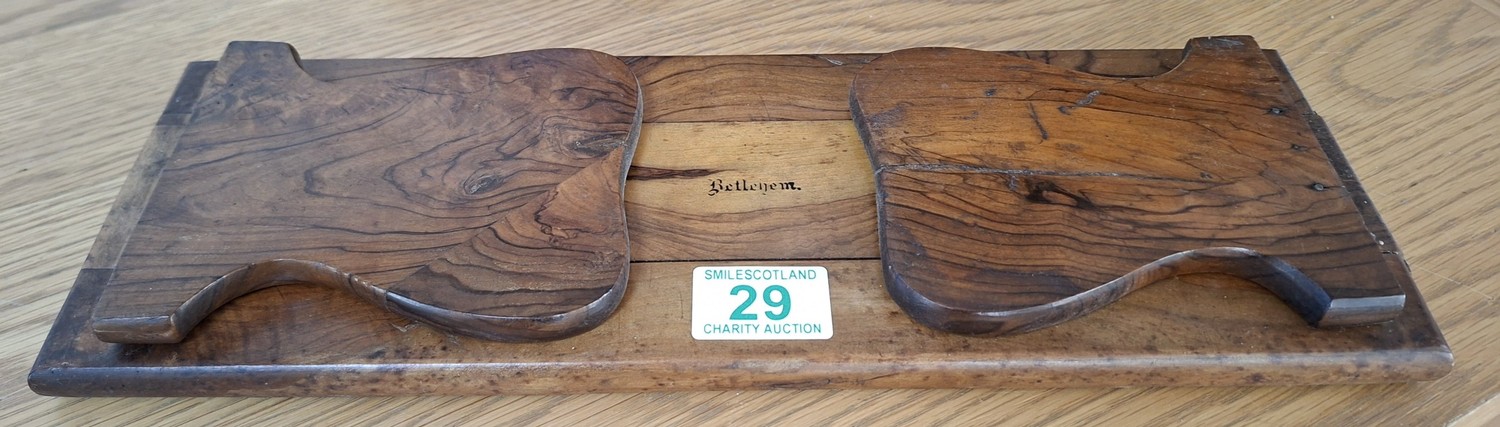 Desktop book holder stamped Bethlehem possible wood from church