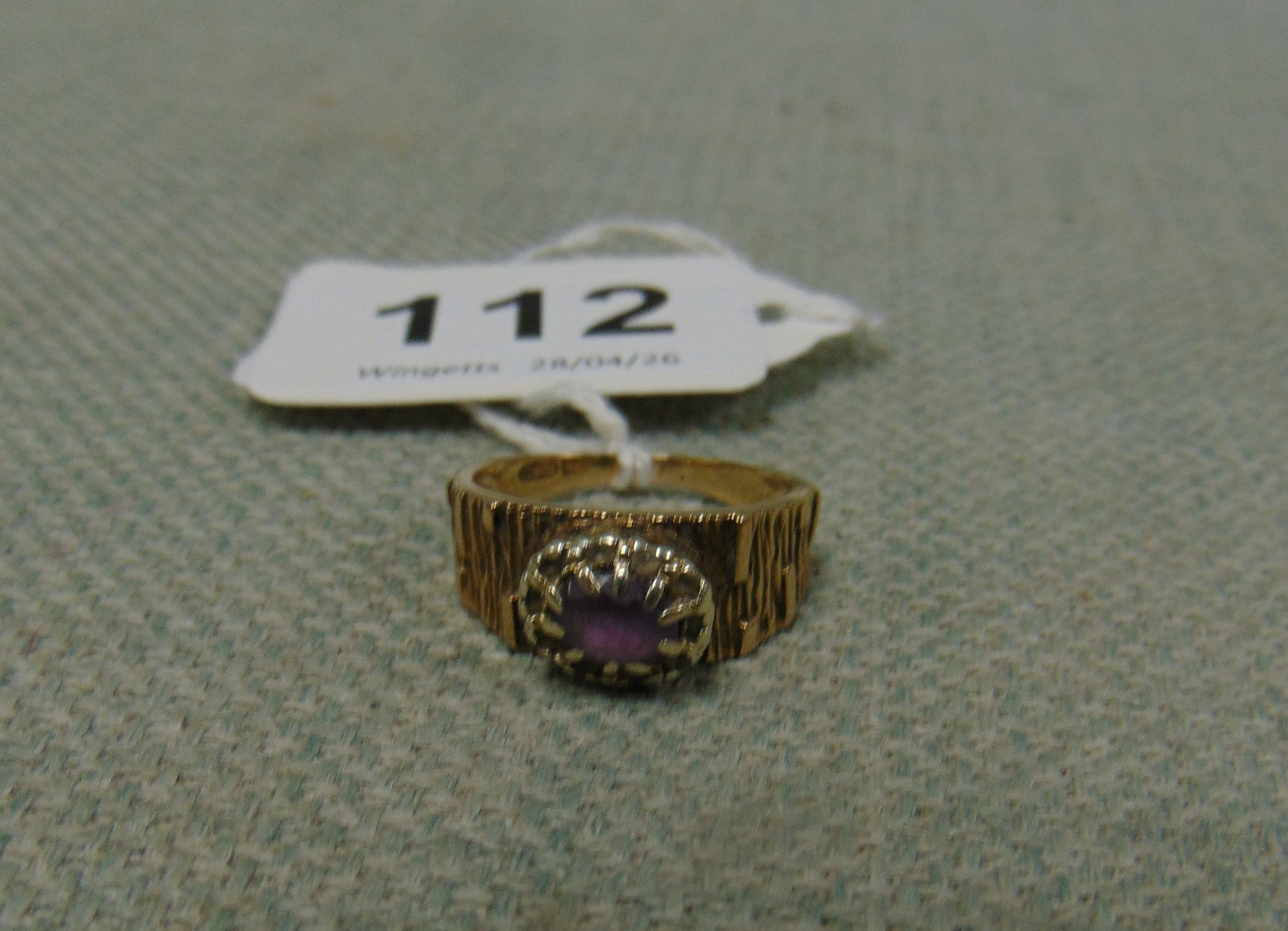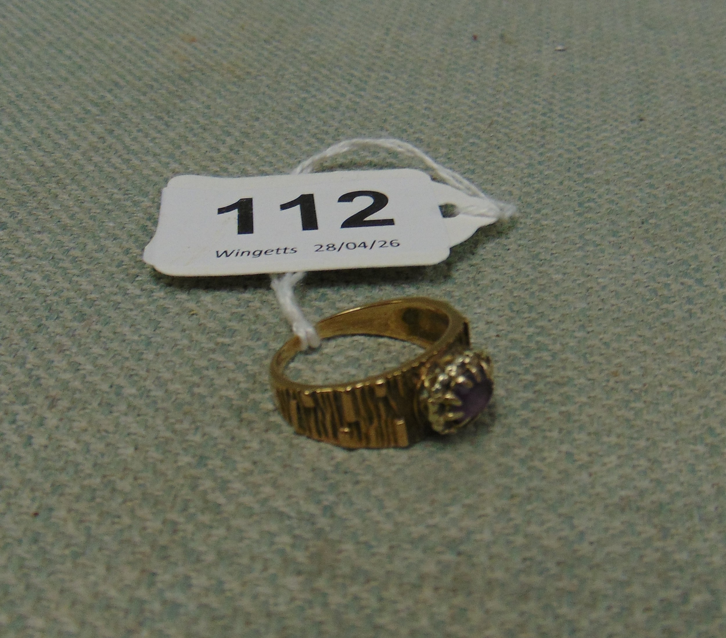 9ct gold ring, set with purple stone, size R, 4.7 gms.