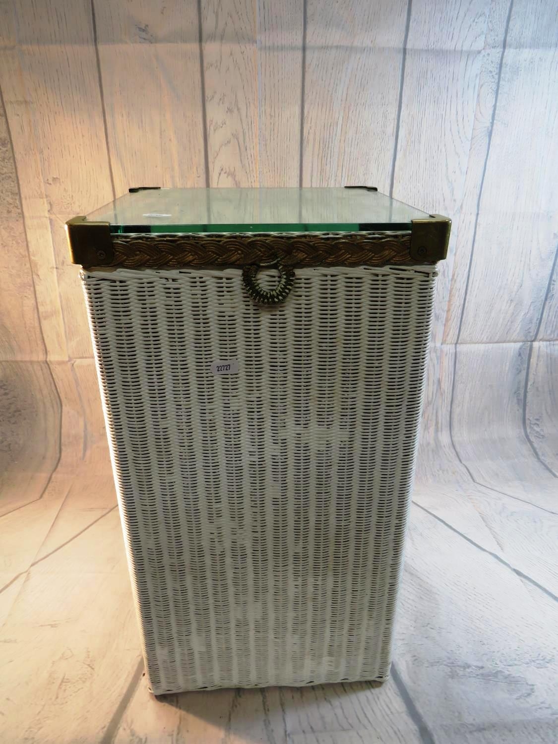 A LLOYD LOOM STYLE LINEN BASKET AND BATHROOM STOOL