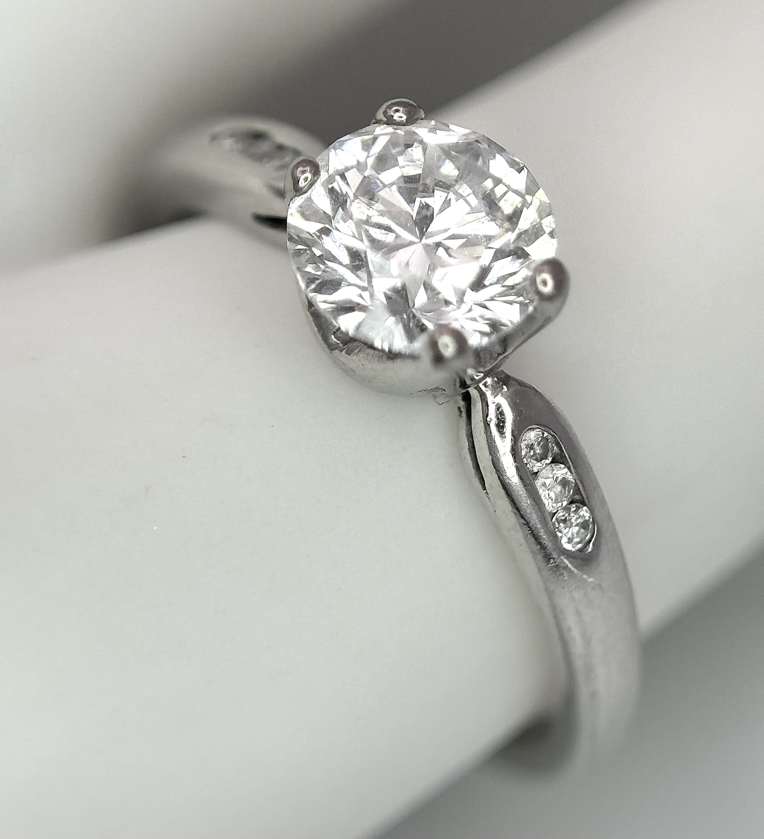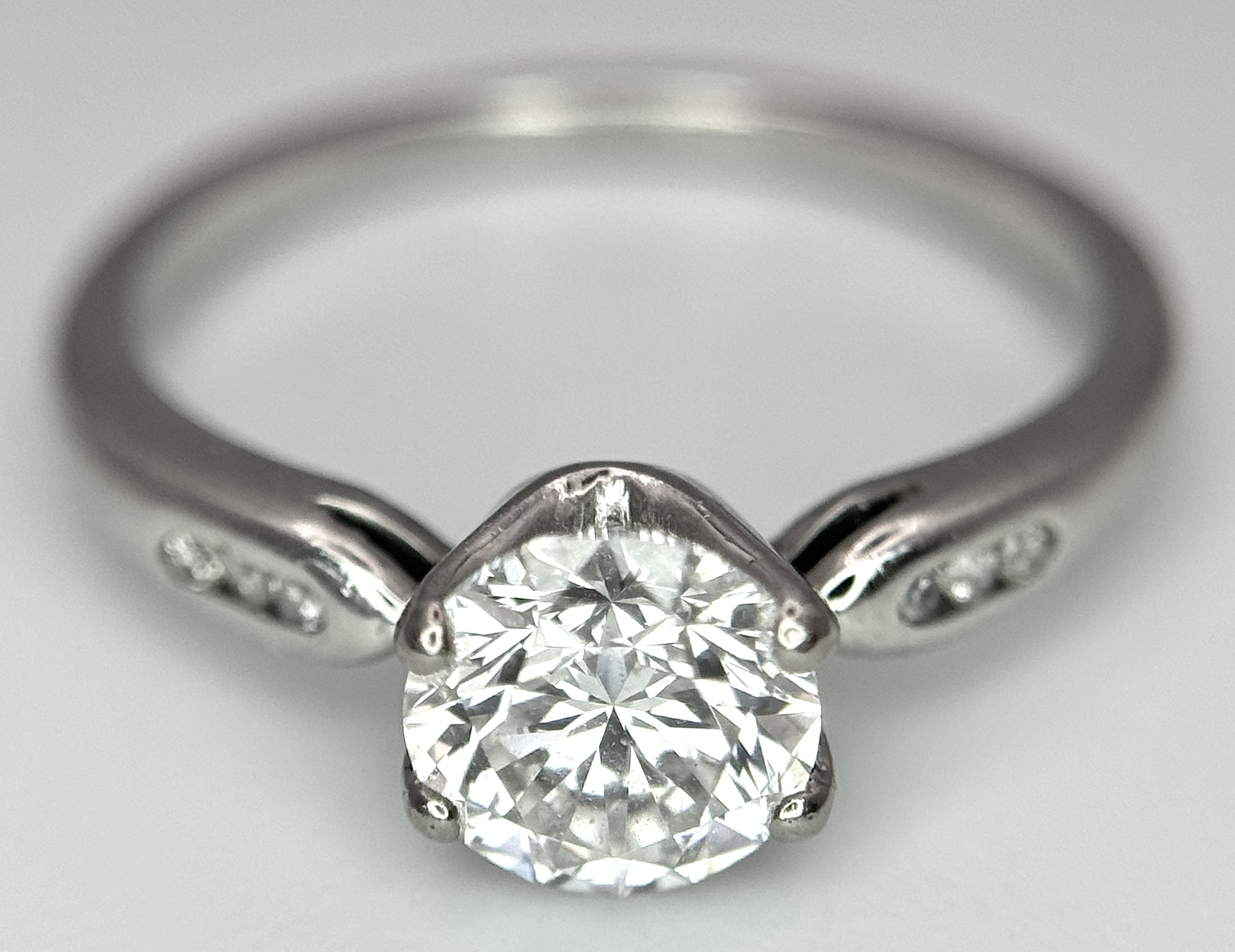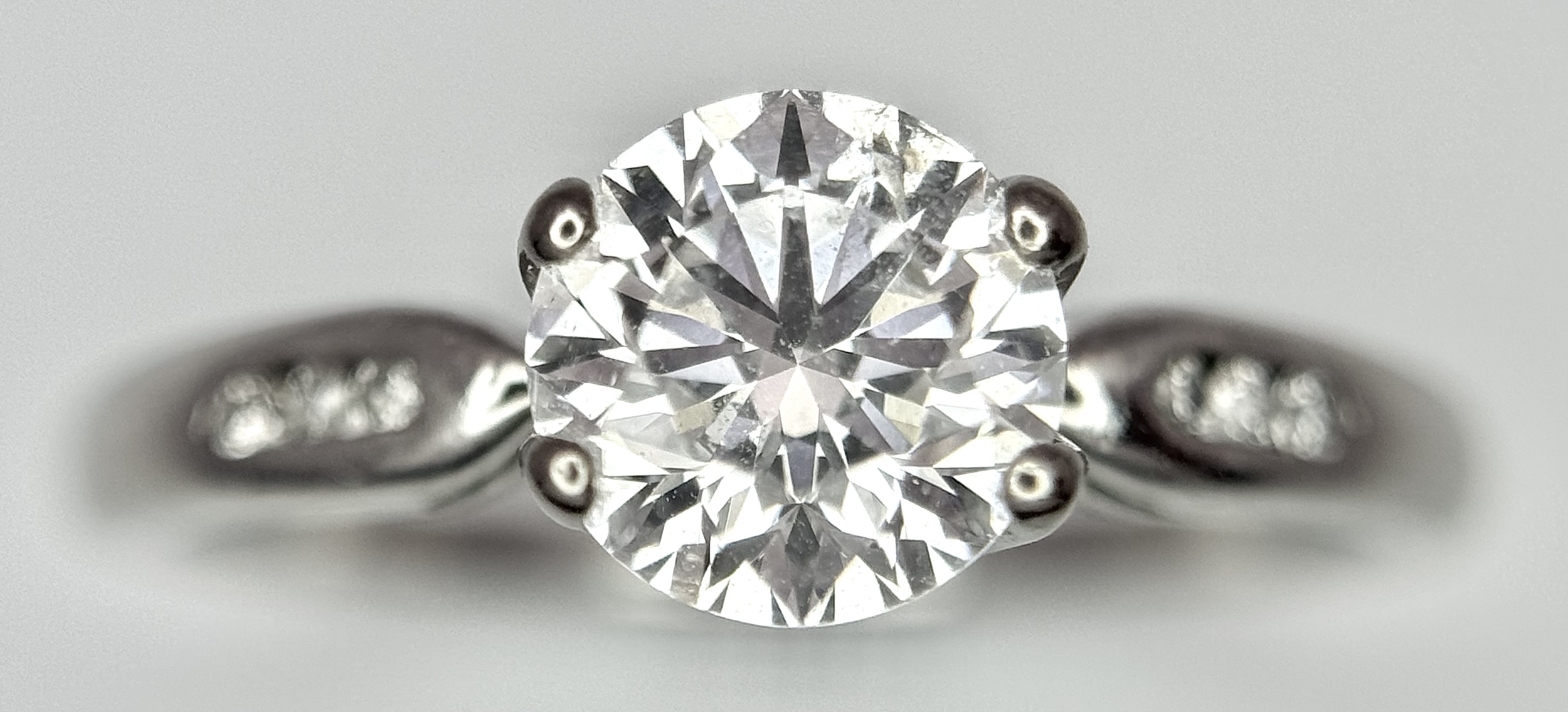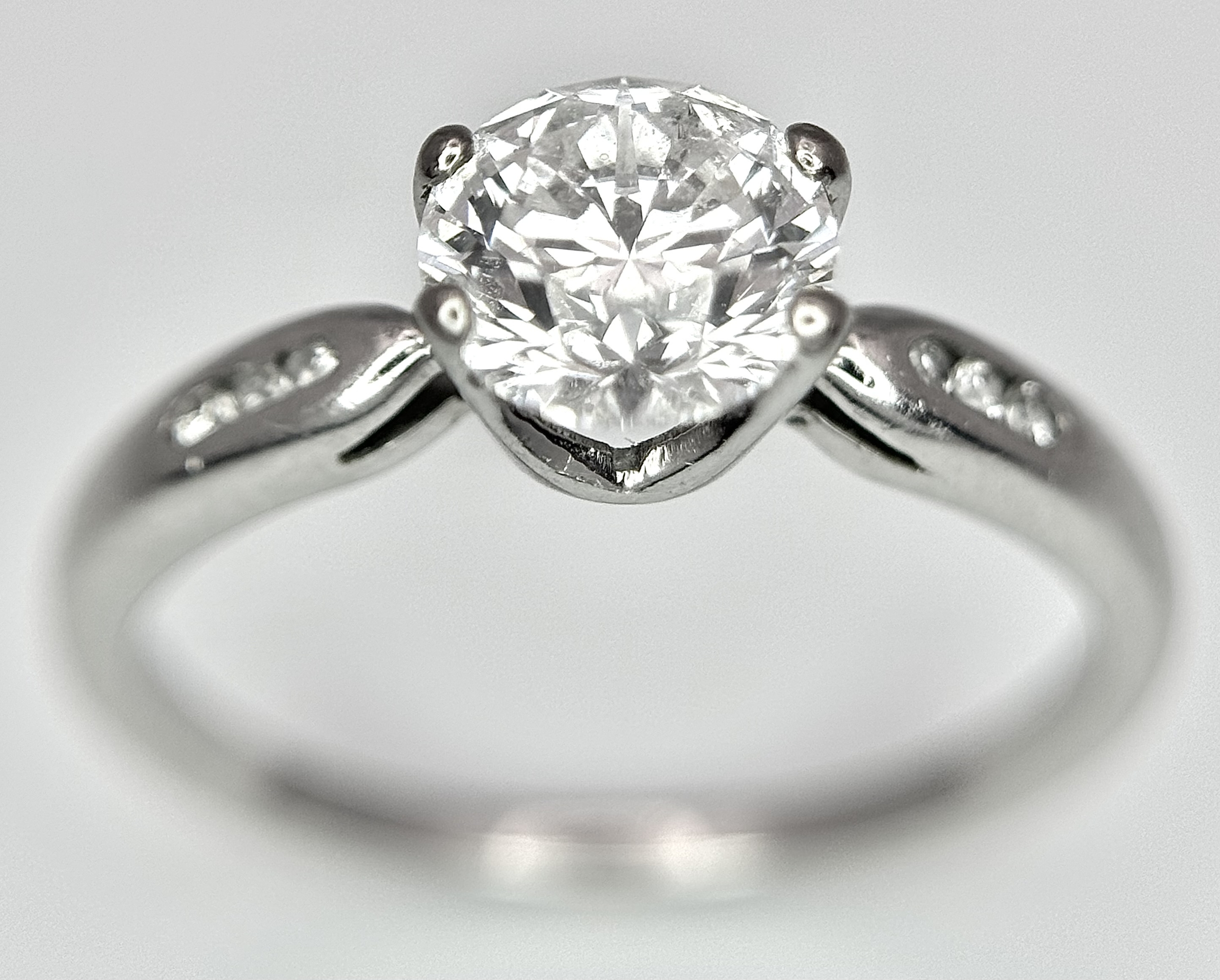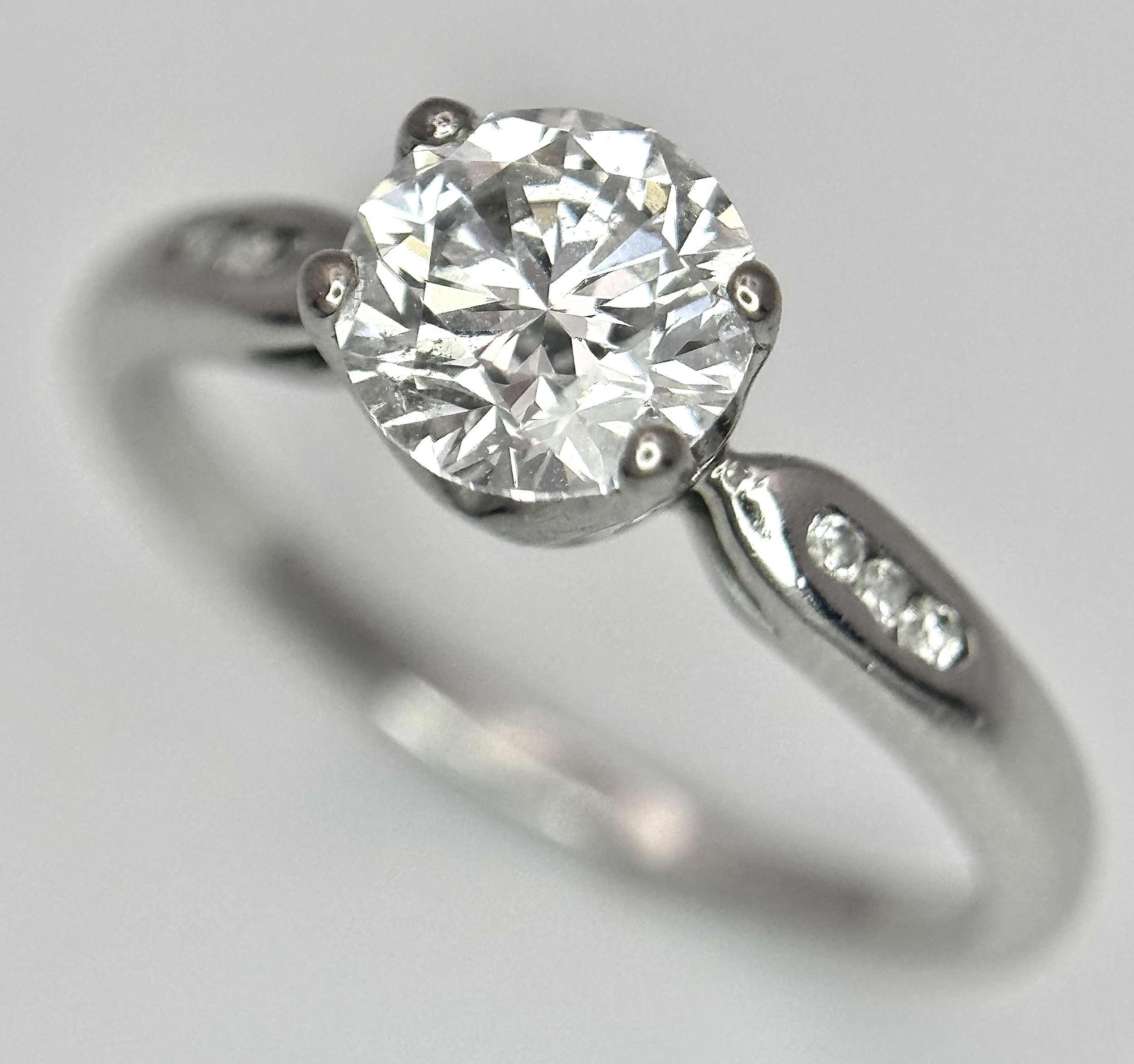 A GIA Certified Diamond Solitaire Ring. 0.80ct round brilliant cut diamond - SI2. F colour. Size I 1/2. 2.7g total weight. Ref: STK005736