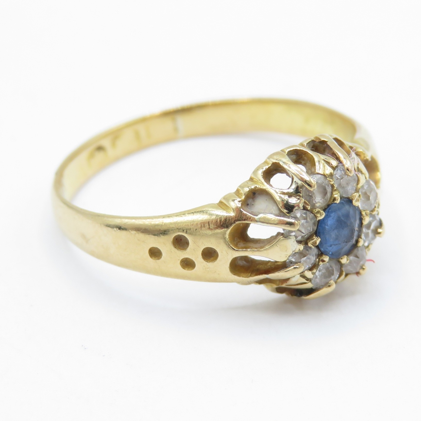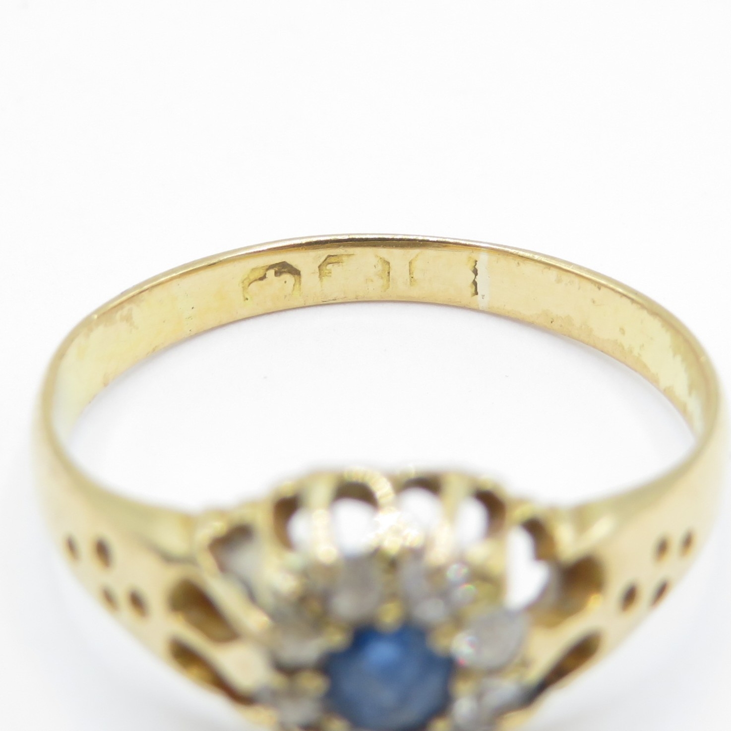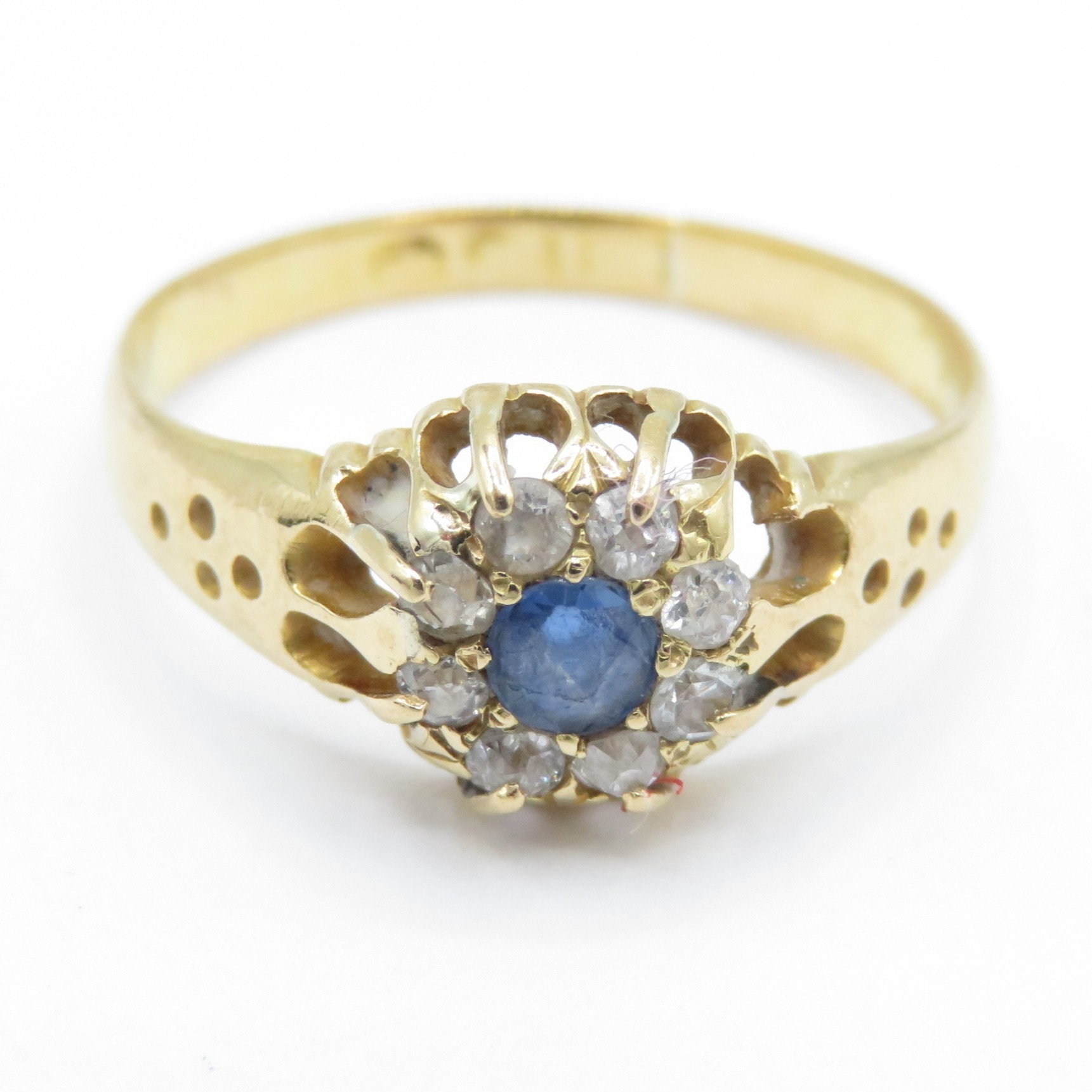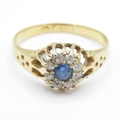 18ct Gold Sapphire and Diamond Halo Ring (2.4g) Size L