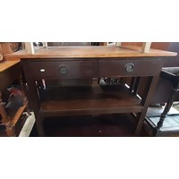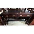 Late 19th century mahogany side table with two frieze drawers on turned supports, 120cm long