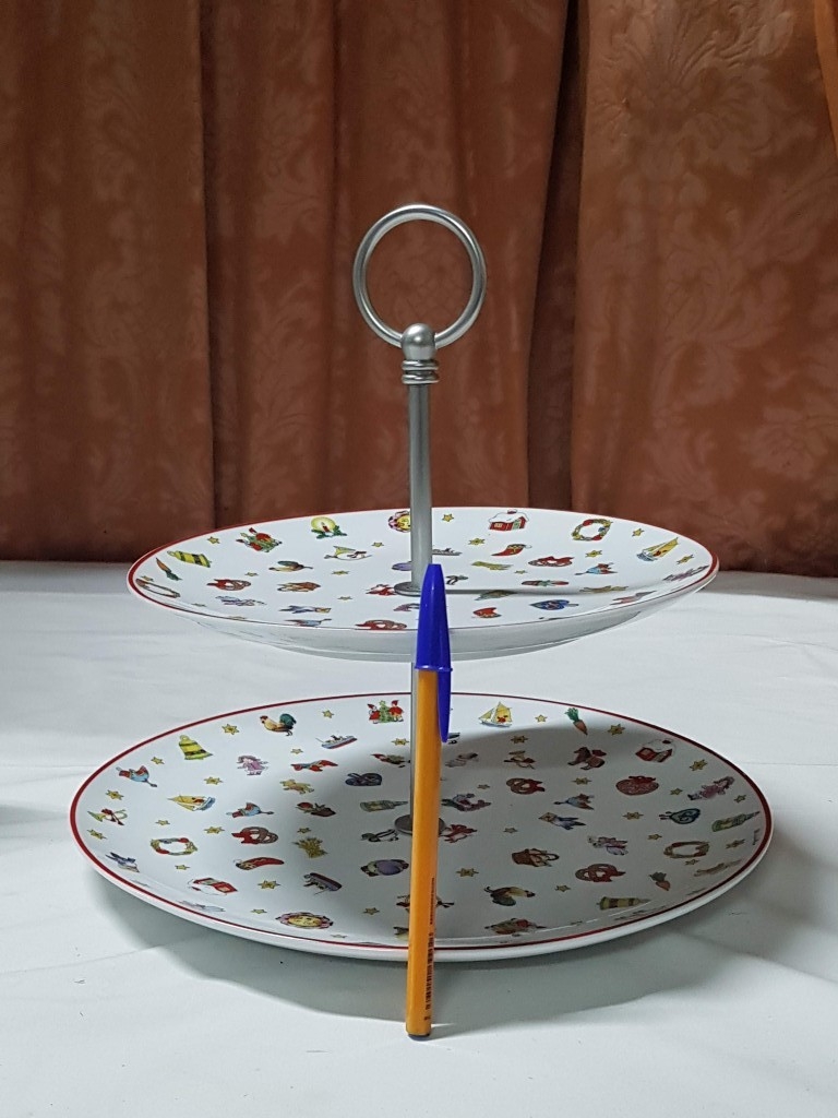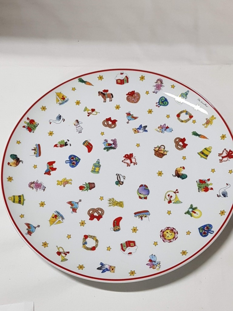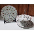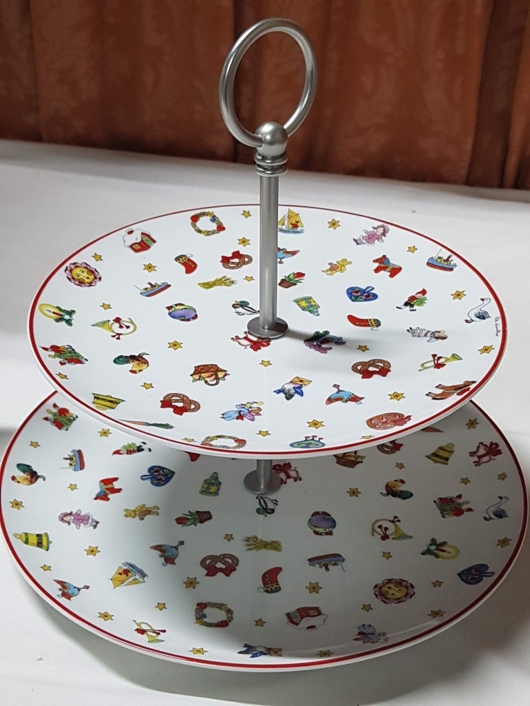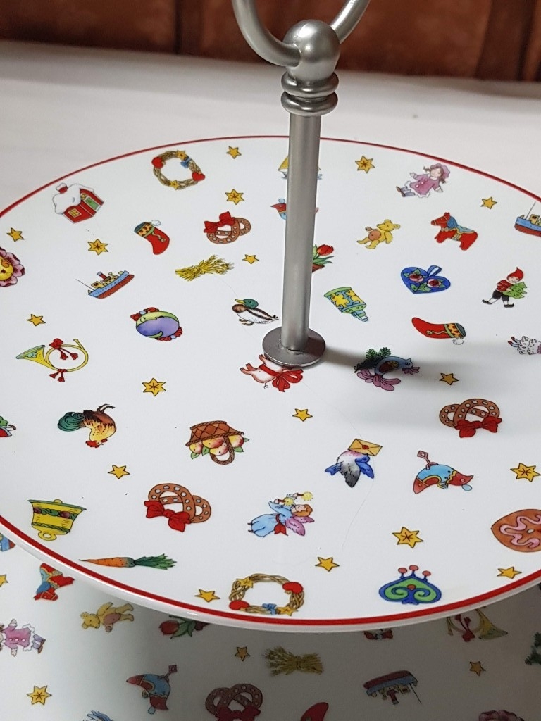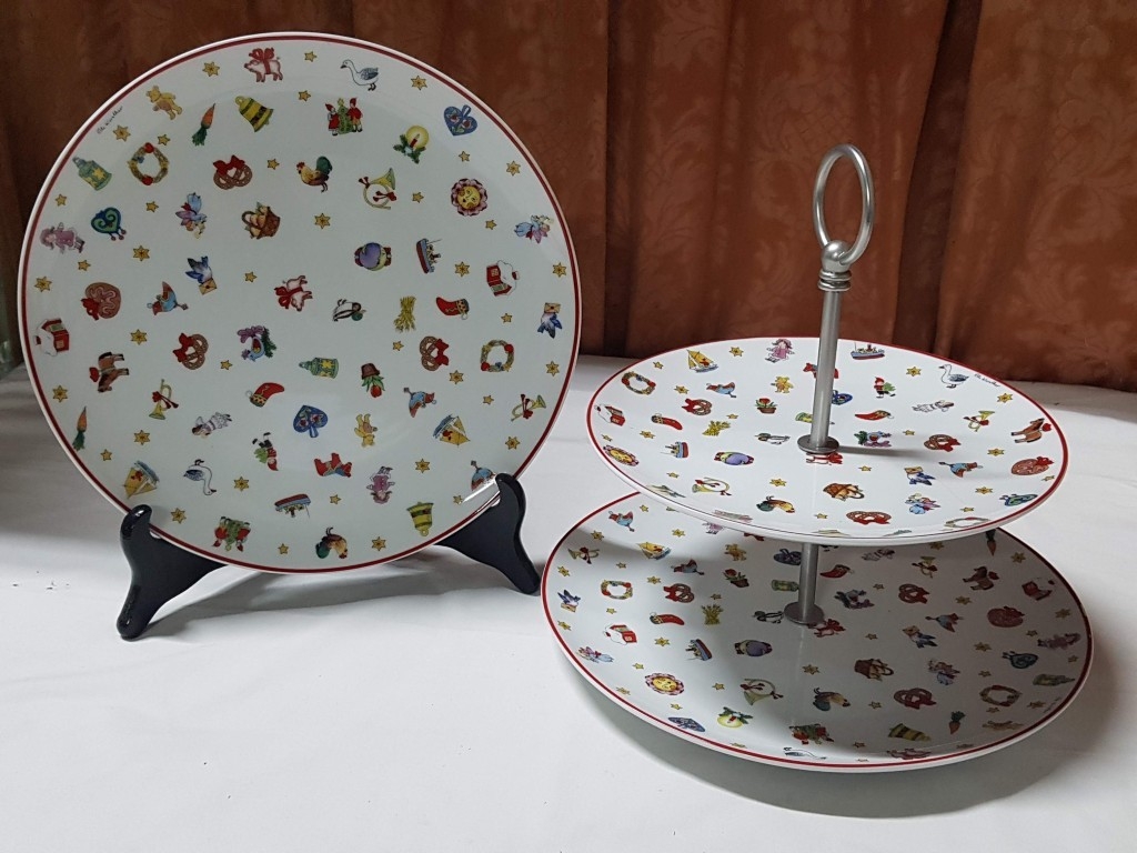 Hutschenreuther Christmas Porcelain Serving Dishes; 2-Tier Cake Stand and Matching Round Serving Plate (Approx. Ø: 27.5cm). (2)