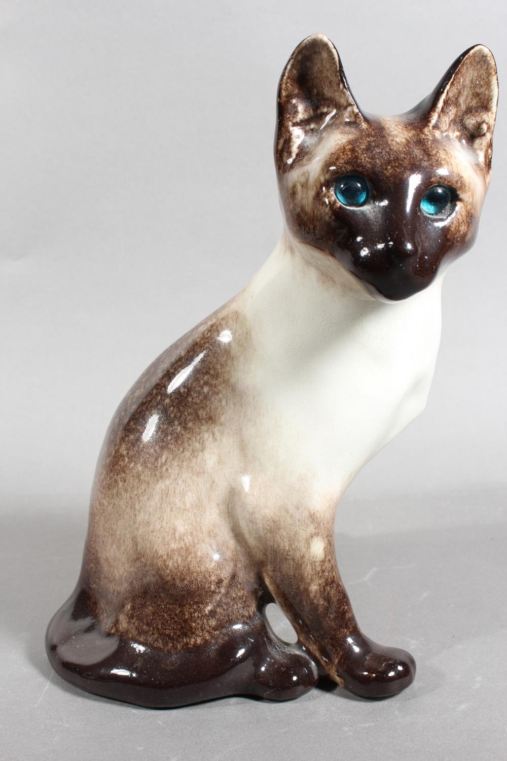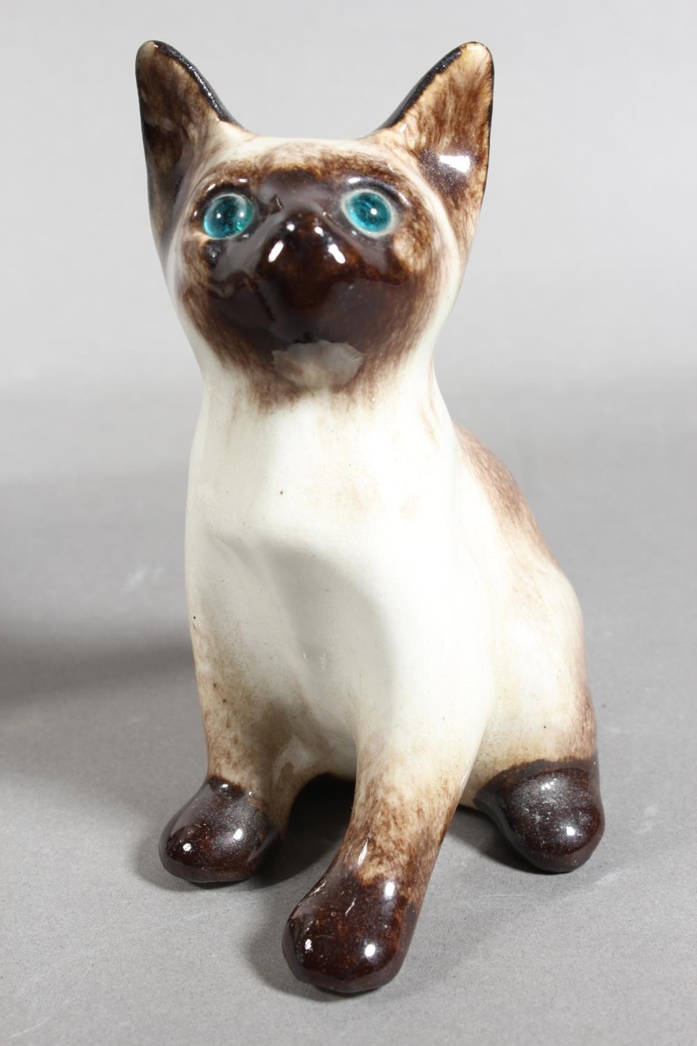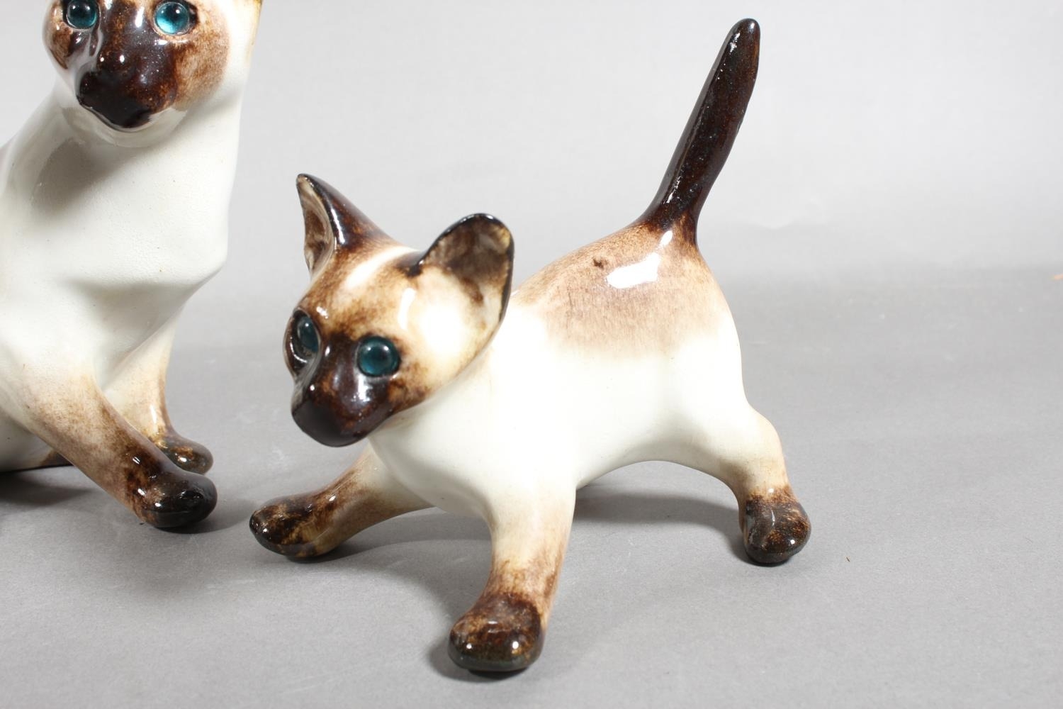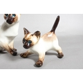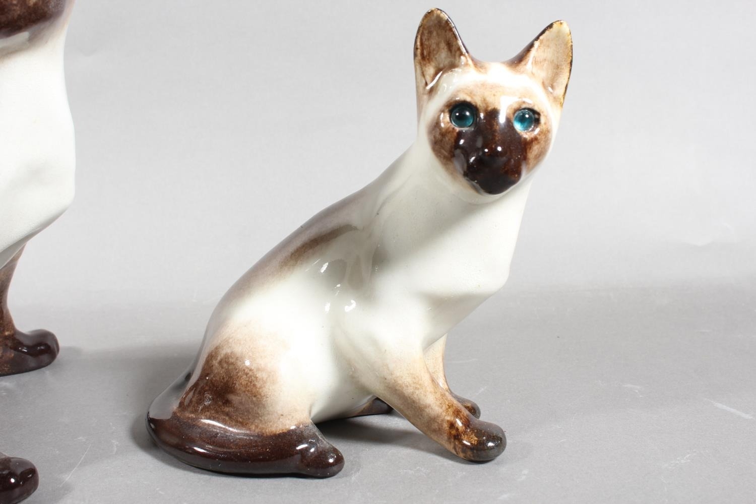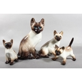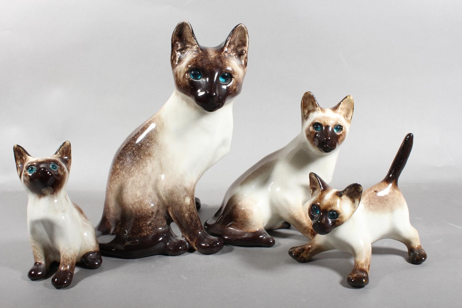 Four Winstanley pottery Siamese cats with blue eyes, largest 26cm high.