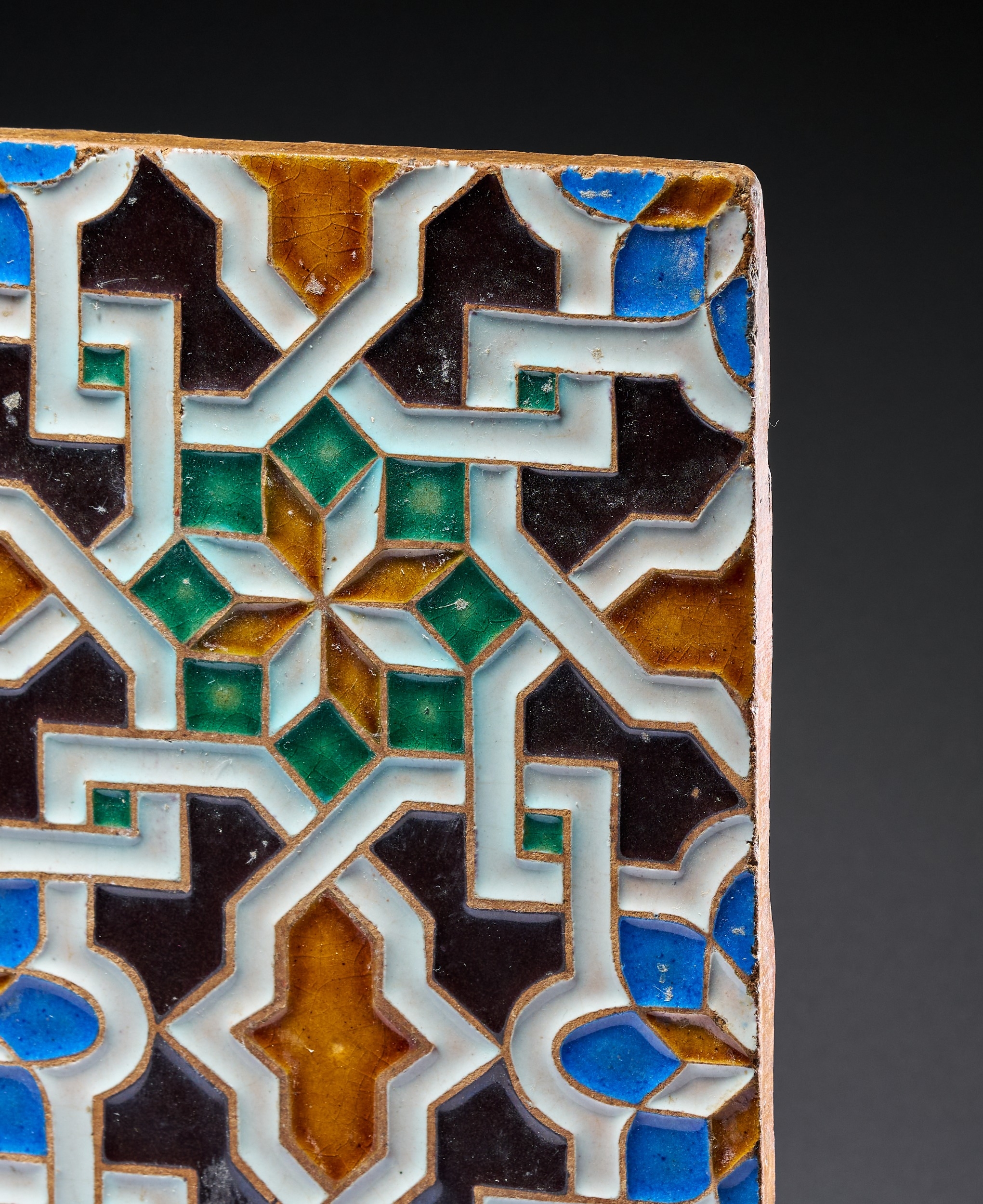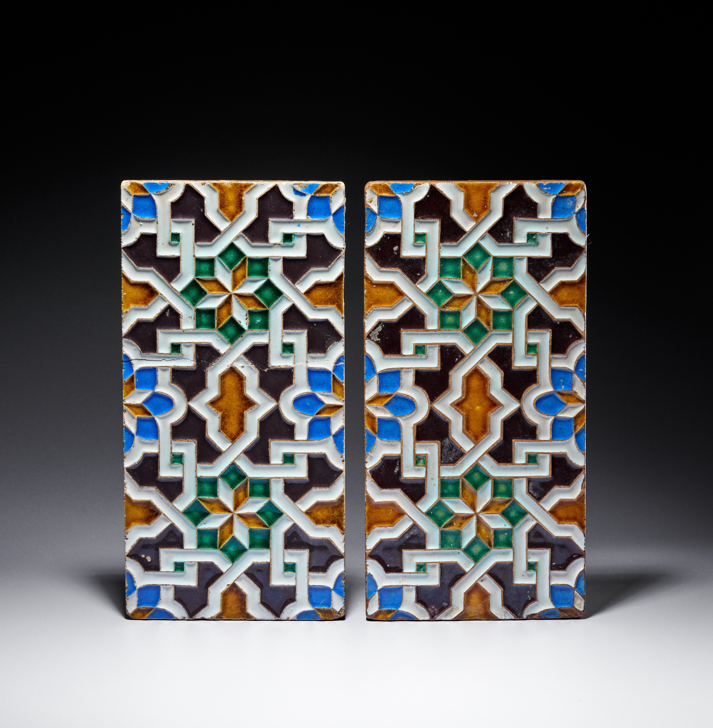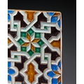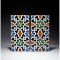 A PAIR OF NEO-MUDEJAR ARISTA SPANISH MOORISH STYLE GLAZED EARTHENWARE TILES, 19TH CENTURY