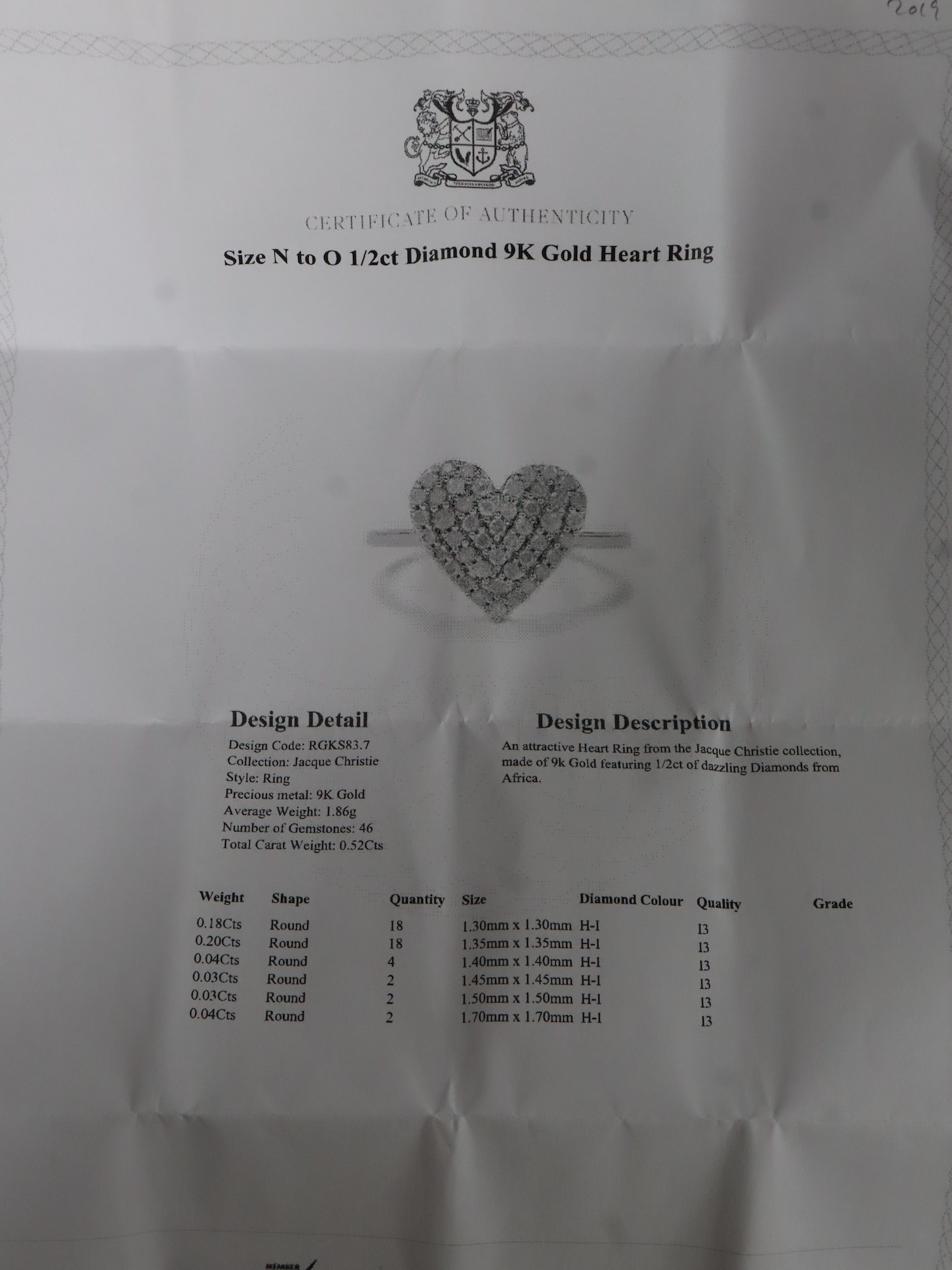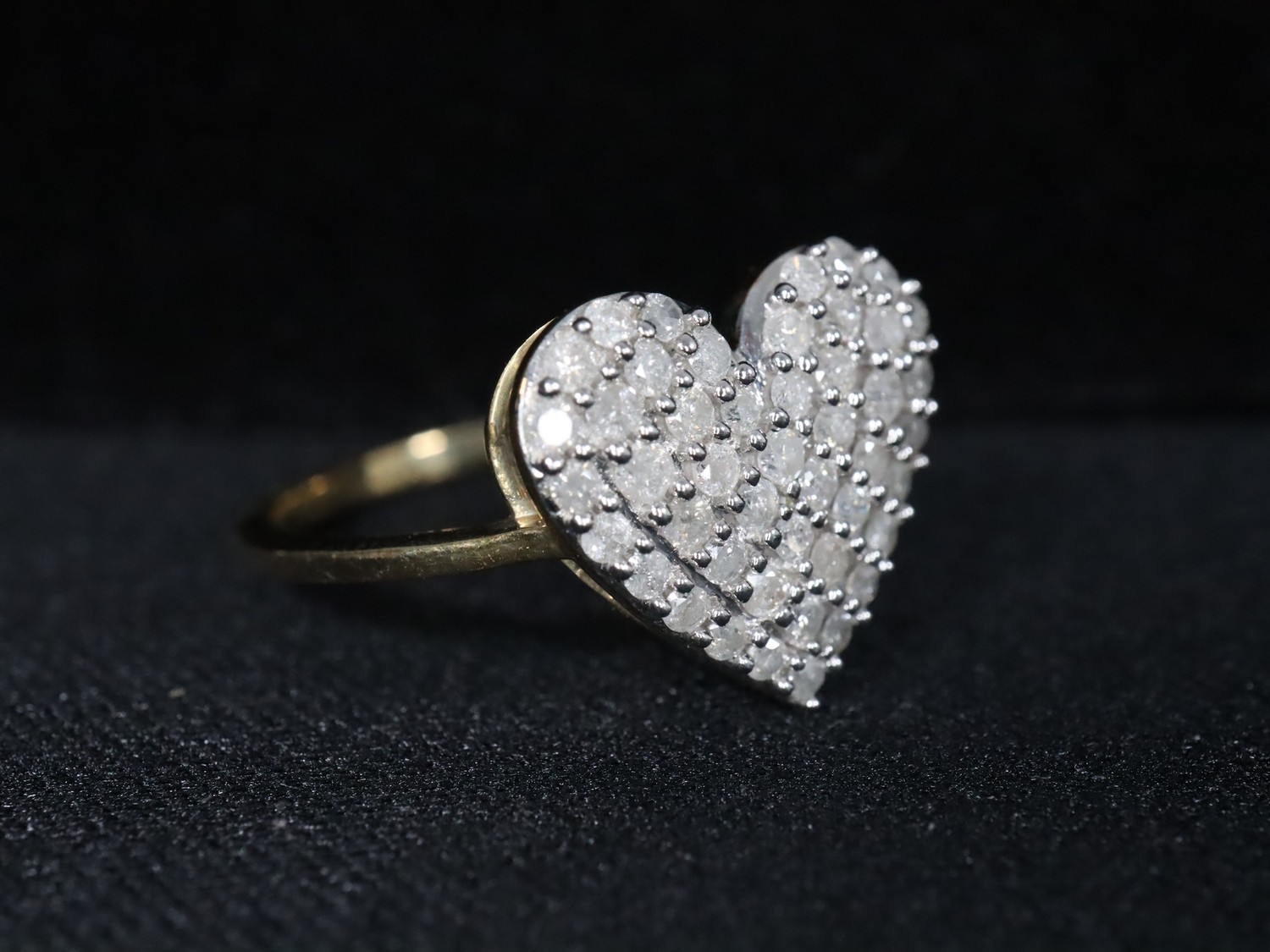 1/2ct Diamond 9K Gold Heart Ring Size N to O, 1/2 ct GH Diamond 9K Gold Ring Size N to O, 1/2ct Diamond 9k Gold Ring - 5.6g