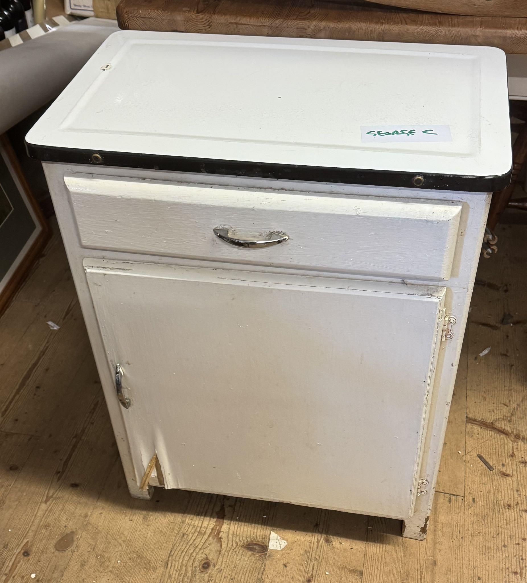 Midi century enamel top cabinet