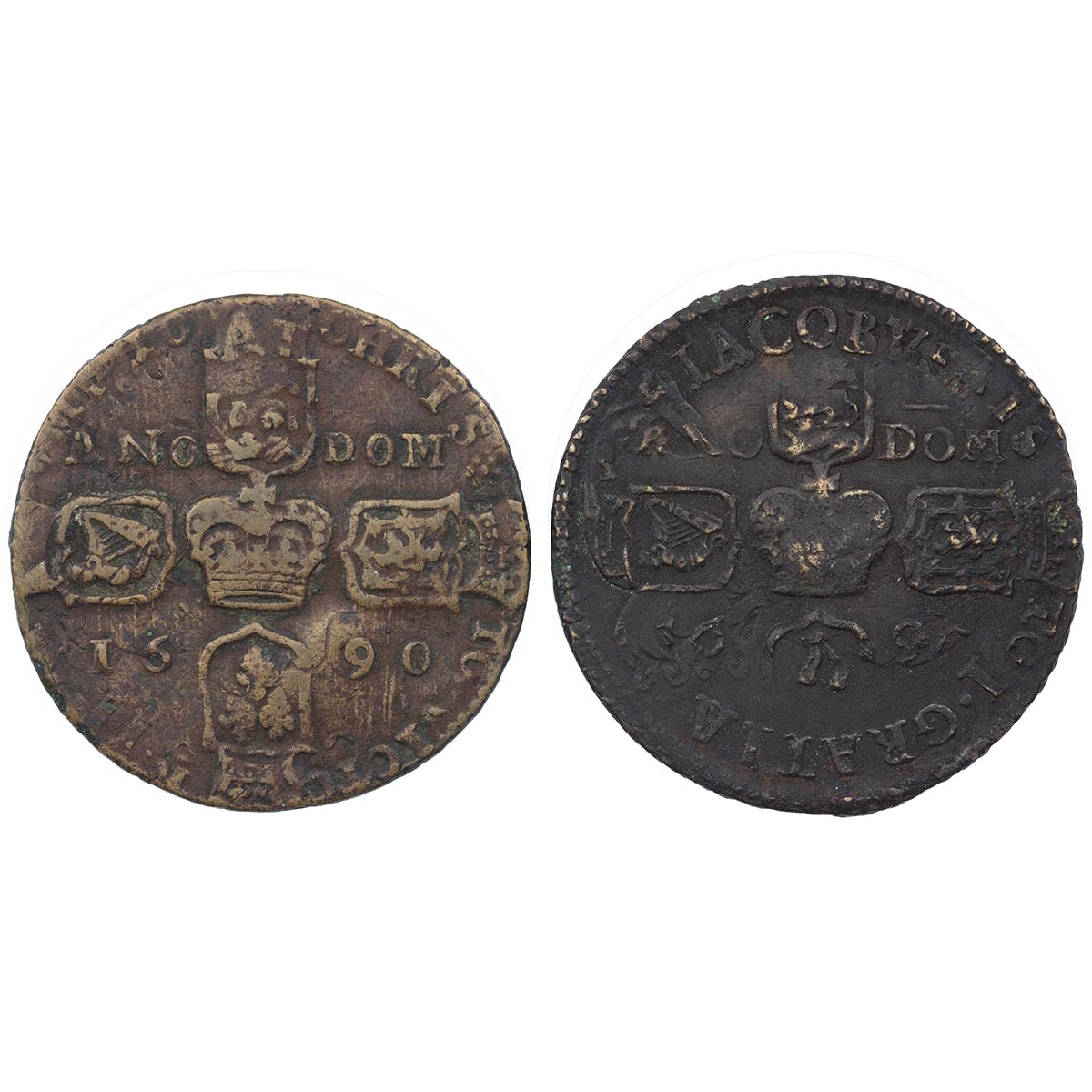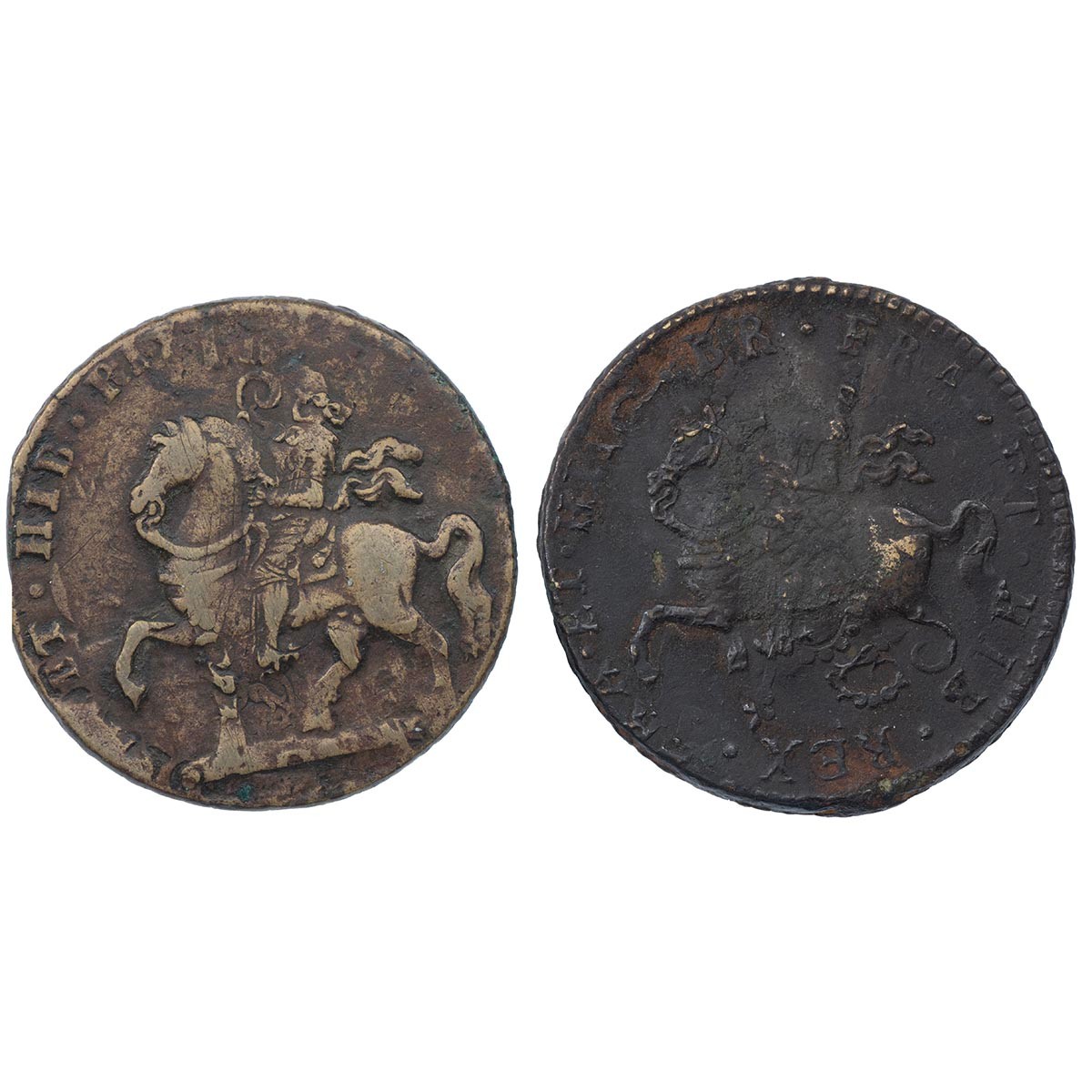 Ireland, 1690 James II Gunmoney Crowns (2) - (S 6578), both Very Good to Fine.