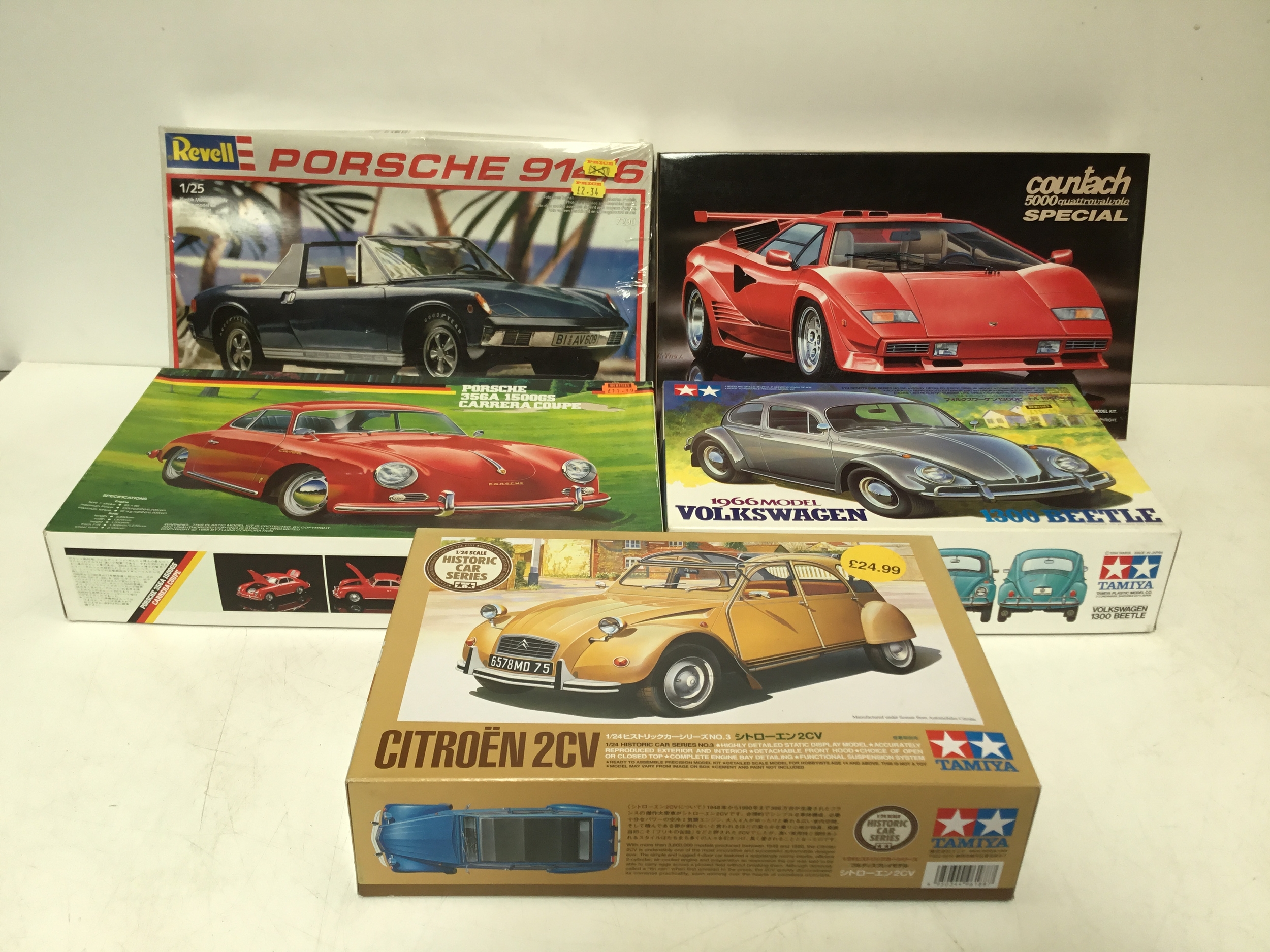 Five model kits by Revell, Fujimi and Tamiya
