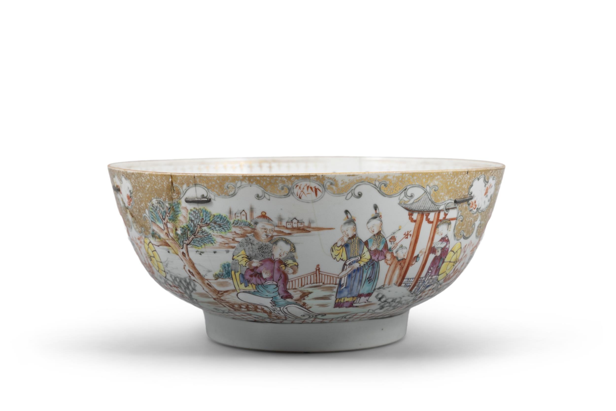A FAMILLE ROSE GILT BOWL DECORATED WITH FIGURES AT COURT 18?? ???????? China, 18th century D: 30.5cm