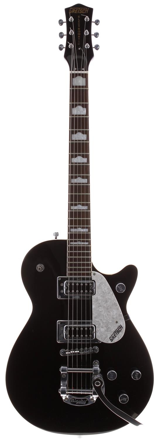 2011 Gretsch Electromatic G5435T Pro Jet electric guitar, made in China; Body: black finish top, dark brown finish back; Neck: good; Fretboard: rosewood with pearl hump position markers; Frets: good; Electrics: working; Hardware: good; Case: Gretsch hard case; Weight: 3.65kg; Overall condition: very good