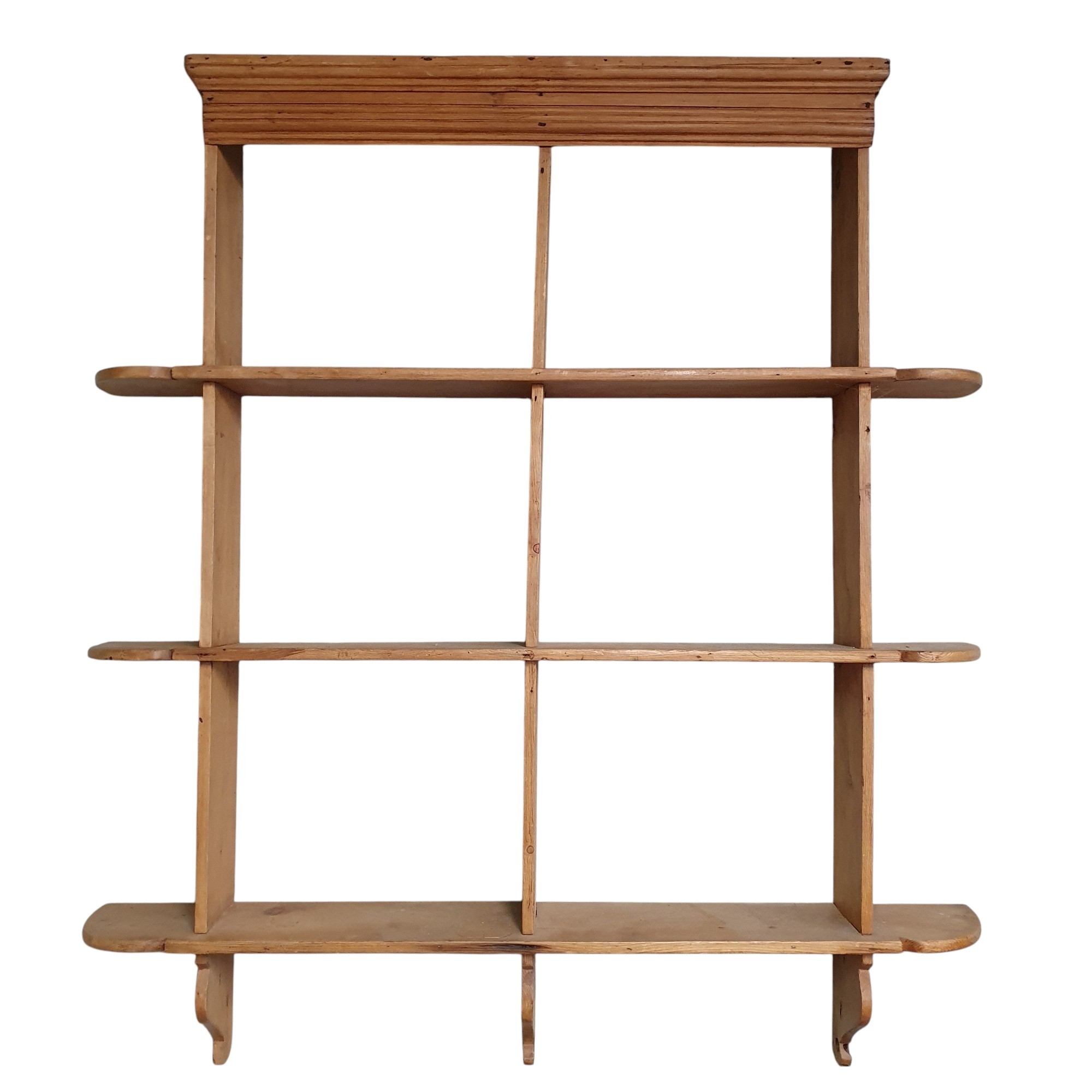 A good 19th Century stripped Pine wall mounted shelves. H 118 x W 104 x D 14 cm approx.