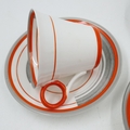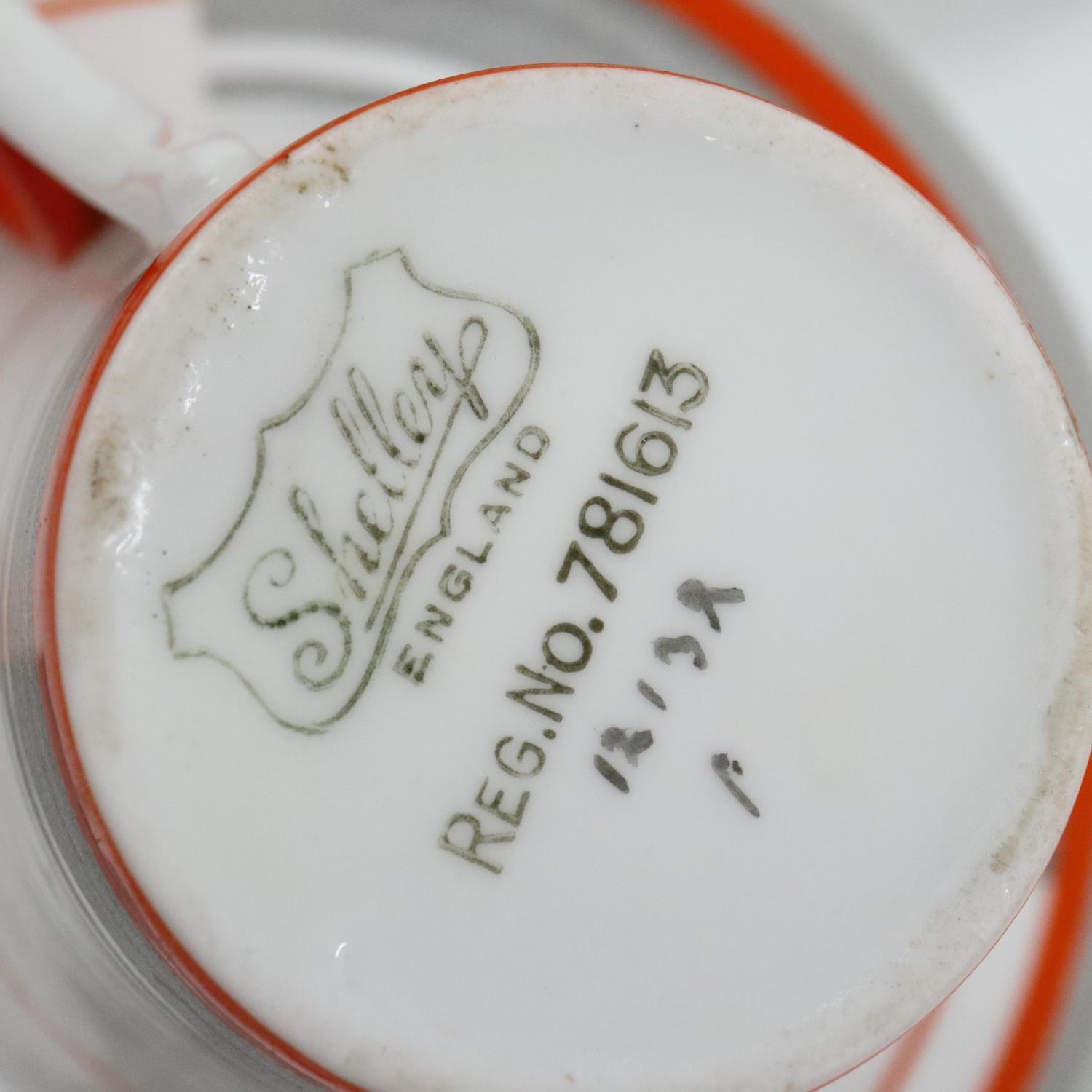 Shelley Art Deco period tea service of twelve pieces in the Bands & Lines pattern 12132, no cracks or chips. UK P&P Group 3 (£35+VAT for the first lot and £10+VAT for subsequent lots)