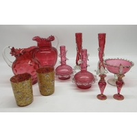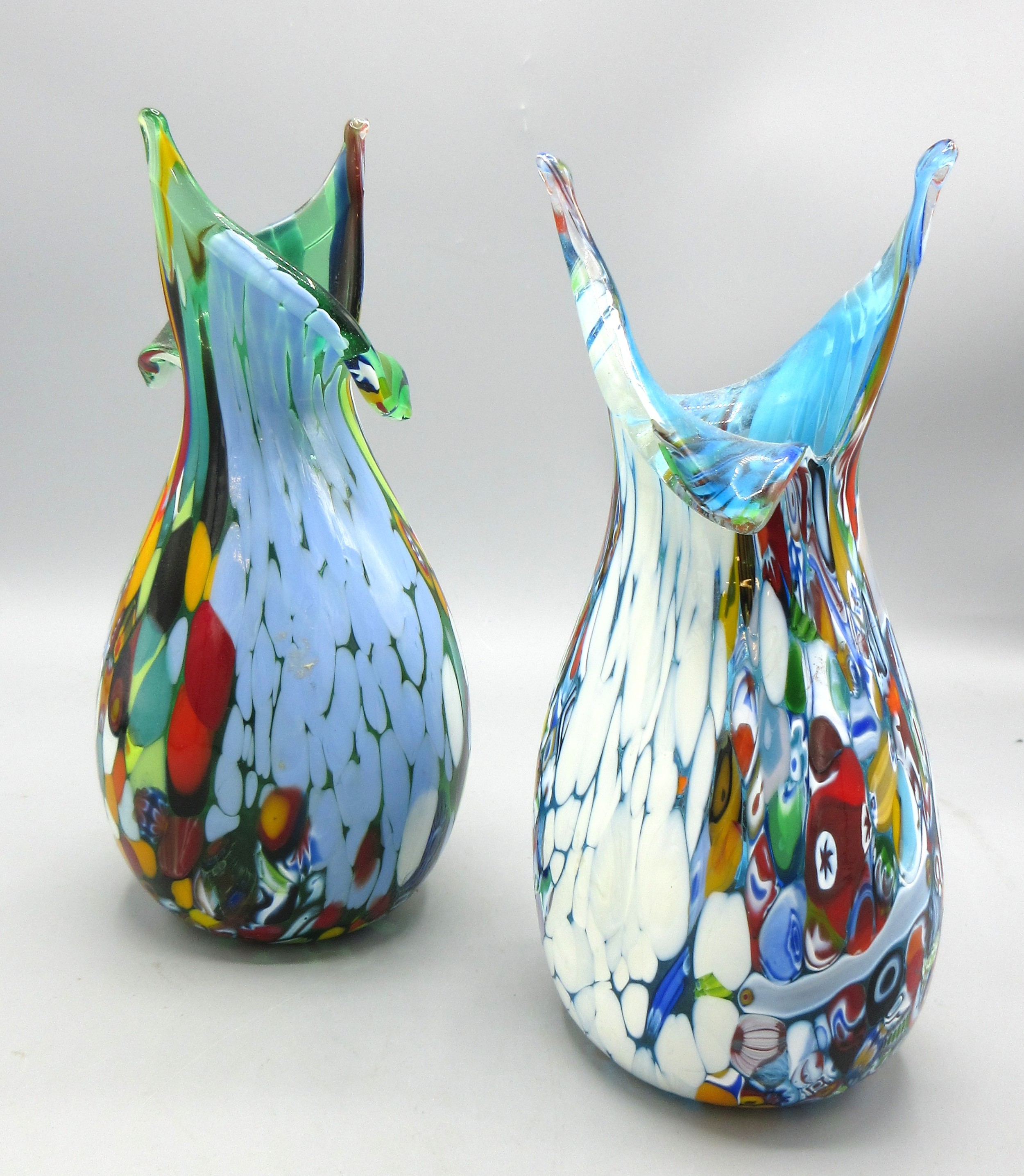 Pair of Murano style millefiori vases, folded neck, H20.5cm